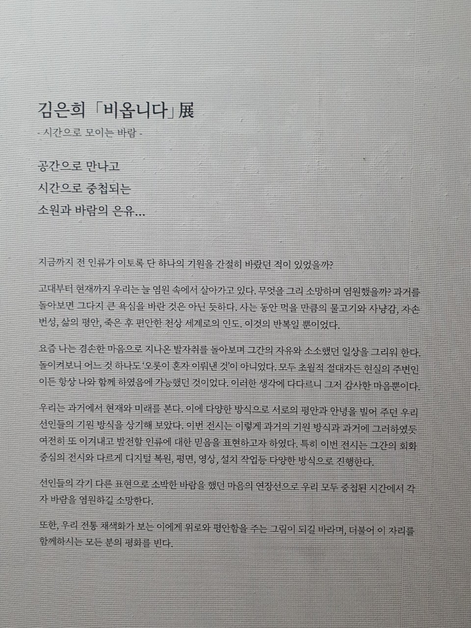 갤러리M 전시안내 시간으로 모이는 바람 비옵니다(2020. 10. 28 ~ 2020. 11. 03) 등록일 : 2020-11-02 10:02 조회수 : 102 수정 삭제 이전글 다음글 목록