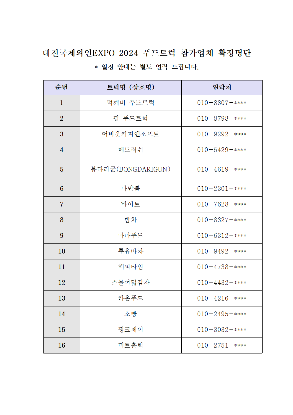 - 대전국제와인EXPO 2024 야외 시민 문화행사 푸드트럭 모집