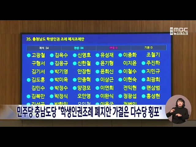 뉴스데스크 뉴스데스크뉴스투데이뉴스데스크 VOD(전체 다시보기)뉴스투데이 VOD(전체 다시보기)유튜브뉴스페이스북 뉴스카카오톡 뉴스인스타그램 뉴스 prev 2024.3.20 - 수요일 next 여론조사 분석해 보니/데스크 ◀ 앵 커 ▶대전 MBC는 4.10 총선을 앞두고 지역 격전지 7곳의 민심을 살펴보는 여론조사를 보도해 드렸는데요.그런데 여론조사 결과를 분석해 보니 눈여겨봐야 할 점이 적지 않았습니다.고병권 기자가 보... 고병권 국힘 대전선대위 출범 "윤석열 정권에 힘을 실어줘야" 국민의힘 대전시당이 오늘 시의회에서 4.10총선 선거대책위원회를 공식 출범하고"22대 국회에서 일할 기회를 달라"고 호소하며 유권자와 시민들에게 적극 다가서겠다는 각오를 밝혔습니다. 이은권 시당 위... 고병권 홍성·예산 자유통일당 김헌수, 강승규 예비후보로 단일화 총선 후보 등록을 하루 앞두고홍성·예산의 자유통일당 김헌수 예비후보가 기자회견을 열고 국민의힘 강승규 예비후보와 단일화하겠다며 출마를 포기했습니다.김 예비후보는 강승규 예비후보가 여러모로 경... 김태욱 '정치 1번지' 천안갑..일자리·교통문제 등 관심/데스크 ◀ 앵 커 ▶유권자들의 선택을 돕기 위해총선 후보들의 공약을 들여다보는 시간,오늘은 천안갑 선거구입니다.재선을 노리는 야당 후보와국방부 차관 출신 여당 후보가 4년 만에 재대결을 하게 됐는데,지난 ... 김광연 지역 의대 정원 2배 증원..엇갈린 반응/데스크 ◀ 앵 커 ▶정부가 비수도권을 중심으로 한내년도 의과대학 정원 배정안을 발표했습니다.대전과 충남에 있는 5개 의대의 정원은27년 만에 2배로 늘었습니다.대전시와 충남도는 환영의 뜻을 밝혔지만,의료계... 이승섭 토요타 온다고 일장기 내걸어.../데스크 ◀ 앵 커 ▶충남 보령시에 자동차 전문인력 양성대학이 있는데 해당 대학이 토요타사 브랜드 체험 행사와 취업 설명회를 진행하면서 교내 국기게양대에 일장기를 내걸어 논란이 일고 있습니다.학교 측은 협... 김태욱 민주당 충남도당 "학생인권조례 폐지안 가결은 다수당 횡포" 충남도의회가 국민의힘 소속 도의원을중심으로 학생인권조례 폐지안을 다시가결한 것과 관련해 더불어민주당 충남도당은 논평을 내고 다수당의 횡포라고 비판했습니다.이들은 폐지안이 부결된 지 한 달 만... 문은선 민주당 "대전시 산하기관 운영 총체적 참사" 민주당 대전시당은 성명을 내고 대전MBC가 단독 보도한 대전과학산업진흥원장의 업무차 사적 이용 등을 예로 들며 대전시 산하기관 간부들의 일탈이 총체적 참사 수준이라며, 공공기관의 신뢰를 회복해야 ... 조형찬 빈 상점 골라 상습 절도...마약까지/데스크 ◀ 앵 커 ▶대전과 세종 등에서 영업이 끝난 새벽 시간, 창문을 잠그지 않은 상점만을 골라 턴 30대 남성이 구속됐는데요.이 남성은 동종 전과로 징역을 살다출소한 지 1년 6개월 만에 다시 같은 범행을 저... 뉴스팀 대전 하소동 산불...0.5ha 타 오늘 오후 4시 20분쯤 대전시 하소동의 야산에서 불이 나임야 0.5ha를 태우고, 1시간 40분 만에 꺼졌습니다.산불이 난 곳 주변에는 민가가 있어대전 동구는 인근 주민과 등산객에게 대피하라는 재난 문자... 뉴스팀 여자 친구 흉기로 살해한 20대 긴급체포 대전 둔산경찰서가 여자 친구를 흉기로 살해한 혐의로 20대 남성을 붙잡아 조사하고 있습니다.이 남성은 오늘 오전 11시 10분쯤대전시 탄방동 자신의 원룸에서 20대 여자 친구에게 흉기를 휘둘러 숨지게 ... 뉴스팀 동급생 살해 여고생, 항소심에서 감형 주장 지난해 7월, 동급생을 집으로 찾아가 숨지게 한 혐의로 기소돼 1심에서 법정 최고형인 징역 15년, 단기 7년을 선고받은 10대 여고생 측이 항소심에서 감형을 주장했습니다.대전고법 제1형사부 심리로 열린... 이승섭 고3 자습 교실 생중계 영상 공개돼 논란 대전의 한 고3 교실에서 공부하는 학생들의 모습을 유튜브로 생중계한 영상이 공개돼 논란이 일고 있습니다.대전의 한 고등학교의 3학년 교사는지난해 여름 방학 기간 학생과 학부모들의 동의를 얻어 자습... 뉴스팀 대전 서남부스포츠타운 중투 통과..13년 만 본궤도 대전 서남부종합스포츠타운 조성사업이 행정안전부의 중앙투사심사를 통과해2011년 처음 계획된 이후 13년 만에 본궤도에 오르게 됐습니다.대전시는 사전 절차가 사실상 마무리됐다며다음 달 개발제한구역... 조형찬 전자통신연, 교통 혼잡 해결할 '도시교통 브레인' 개발 한국전자통신연구원이 인공지능을 활용해 교통량이 실시간으로 변화하는 상황에서 빠르게 교통신호를 바꿔 혼잡을 줄여주는'도시교통 브레인'을 개발했습니다.연구팀은 대전시와 세종시 도로 지도와 교차... 김윤미 충남도, 해외서 복귀하는 기업 취득세 전액 감면 충남도가 해외 진출 기업이 도내로 복귀할 경우 사업용 부동산 취득세를 100% 감면합니다.올해 개정된 지방세특례제한법에 따라해외에서 국내로 복귀하는 기업에 취득세를 감면 혜택이 주어지는데, 도는 ... 김태욱