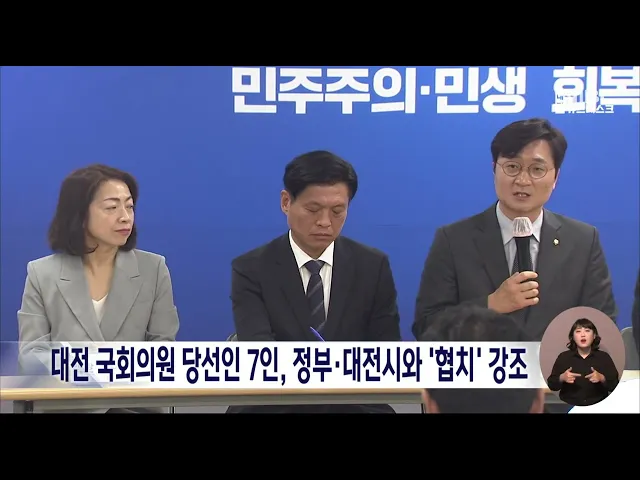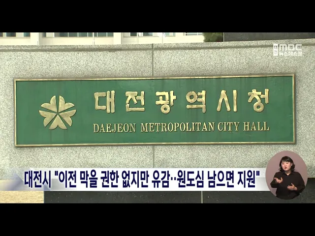 뉴스데스크 뉴스데스크뉴스투데이뉴스데스크 VOD(전체 다시보기)뉴스투데이 VOD(전체 다시보기)유튜브뉴스페이스북 뉴스카카오톡 뉴스인스타그램 뉴스 prev 2024.4.18 - 목요일 next 밥값 '고공행진'..깊어지는 시름/데스크 ◀ 앵 커 ▶치솟는 물가에 외식비 고공행진이 계속되면서요즘 밖에서 점심 한 끼 사 먹는 것도 부담된다는 분들이 많은데요. 식비 부담을 줄이기 위해 구내식당을 이용하거나 아예 집에서 밥을 해먹기 위한... 박선진 소상공인시장진흥공단 오는 6월까지 '유성 이전' 공식 발표 대전 중구에 있는 소상공인시장진흥공단이 오는 6월까지 유성구로 사옥을 옮기는 이전계획을 공식화했습니다.공단은 보도자료를 통해 현 사옥이 확대되는 조직에 비해 사무와 편의 공간이 좁고 세종시에 ... 고병권 공익형 노인 일자리, 산재 보험 보장 안돼/데스크 ◀ 앵 커 ▶정부가 노년층의 경제 활동을 돕기 위해 마련한 노인 일자리는 고령화 사회로 접어들면서 해마다 확대되고 있습니다. 그런데 일자리에 참여하는 노인 인구가 늘어나면서 일하다가 다치거나 숨지... 뉴스팀 세종시 최고 투표율..배경은?/데스크 ◀ 앵커 ▶지난주 치러진 4.10 총선에서 세종시는 투표율이 70%를 넘겨 전국 광역시·도 가운데 1위를 기록했습니다.정권 심판론의 열기가 뜨거웠던 데다,국회 완전 이전 공약과 민주당 후보 공천 취소 사태... 고병권 대전 국회의원 당선인 7인 정부·대전시와 '협치' 강조 대전 7개 선거구에서 모두 승리한 더불어민주당 국회의원 당선인들이정부와 여당은 물론, 대전시와의 협치를 강조했습니다. 당선인들은 대전교도소 이전, 제2 대덕연구단지 조성 등 여야간 이견이 없는 공... 고병권 '인구 100만 도시로' 세종갑 김종민/데스크 ◀ 앵 커 ▶이번 총선 화제의 당선인을 만나보는 기획보도 순서, 오늘은 세종갑 김종민 당선인입니다.민주당을 탈당한 뒤 옮긴 지역구에서민주당 후보가 낙마하면서 당선된 김종민 의원은 세종시에서 행정 ... 조형찬 종일 미세먼지 주의보..내일부터 황사 해소 황사 영향으로 대전과 세종, 충남에 미세먼지 주의보가 이틀째 이어졌습니다.현재 대전과 세종, 충남의 미세먼지 농도는모두 '나쁨' 수준을 나타내고 있지만,충남 서해안 지역부터 차츰 황사가 해소되고 ... 이승섭 대전시 4~10월 오존경보제 시행 대전시가 하절기 기온 상승으로 대기 중 오존 농도가 높아질 것으로 예상되는 4월에서 10월까지 오존경보제를 시행합니다.오존경보는 1시간 평균농도가 0.12ppm 이상이면 주의보, 0.3ppm 이상이면 경보, 0... 조형찬 과학기술노조 "구체적 R&D 예산 복원 즉각 시행해야" 공공과학기술연구노동조합이 오는 21일 과학의 날을 앞두고"연구개발 예산 삭감과 관련해 구체적인 RD 예산 복원 방안을 즉각 시행해야 한다"고 정부에 촉구했습니다.공공과학기술노조는 기자회견을 통해 ... 김윤미