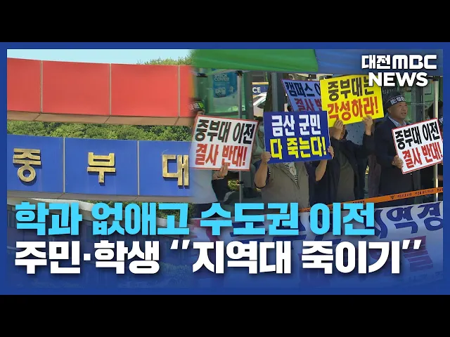 뉴스데스크 뉴스데스크뉴스투데이뉴스데스크 VOD(전체 다시보기)뉴스투데이 VOD(전체 다시보기)유튜브뉴스페이스북 뉴스카카오톡 뉴스인스타그램 뉴스 prev 2024.6.8 - 토요일 next 지역대 죽이기? 중부대 캠퍼스 이전/데스크 ◀ 앵 커 ▶금산 중부대학교가 8개 학과에 대한 수도권 이전과 폐과 등을 결정해, 교내는 물론 지역 사회 반발이 거셉니다.학교 측은 이전 절차에 문제가 없다는 입장인데지역대의 수도권 이전은 결국 지역 ... 박선진 5mm 안팎 비..내일부터 다시 더위 대전과 세종, 충남 지역에는어제부터 5mm 안팎의 비가 내렸다가오후에 모두 그쳤고, 더위도 다소 주춤했습니다.휴일인 내일은 맑은 날씨를 회복하겠고,아침 최저기온 16도에서 19도,낮 최고기온은 26도에... 이승섭 제9회 태안국제오픈태권도대회 발대식 개최 오는 8월에 개최될제9회 대전MBC배 태안국제오픈태권도대회를앞두고, 오늘 대회 조직위원회가태안종합실내체육관에서 발대식을 열고 본격적인 대회 준비에 들어갔습니다.이번 대회는 오는 8월 8일부터 닷... 이승섭 고속도로에서 6중 추돌 사고..3명 중경상 오늘 새벽 2시 40분쯤 공주시 정안면천안논산고속도로 천안 방향 정안휴게소부근에서 차량 6대가 연쇄 추돌했습니다.이 사고로 1톤 화물차 운전자인 70대 남성 등3명이 중경상을 입어 병원으로 옮겨졌고,... 이승섭 경찰, '카이스트 입틀막' 졸업생 무혐의 처분 윤석열 대통령이 참석한 카이스트 학위수여식에서정부의 연구개발 예산 삭감에 항의하다가강제로 퇴장당한 카이스트 졸업생 신민기 씨가 경찰로부터 무혐의 처분을 받았습니다.대전 유성경찰서는 수사심의... 이승섭 '태양광 비리 의혹' 전 태안군 공무원 구속 기소 검찰이 안면도 태양광 비리 사업 과정에서특정인에게 뇌물을 받고 각종 편의를 제공한 혐의로 전 태안군 공무원을 구속 상태로 재판에 넘겼습니다.피고인은 지난 2018년, 태안군 태양광 발전 사업을 맡아... 이승섭 법정 이자율 초과해 폭리 챙긴 대부업자 실형 선고 대전지법 형사5단독 장원지 판사가법정 최대 이자율인 연 20%를 초과해 폭리를 챙긴 혐의로 재판에 넘겨진 40대 대부업자 2명에게각각 징역 6개월의 실형을 선고했습니다.피고인들은 지난해 1월, 세종시에... 이승섭 지역 주유소 기름값 5주 연속 하락 지역 주유소의 기름값이 5주째 내림세를이어가고 있습니다.한국석유공사 유가 정보 사이트인 오피넷을 보면 대전의 주유소 휘발유 평균 가격은 ℓ당 1,642원, 세종과 충남은 각각 1,660원과1,670원으로 5주... 이승섭