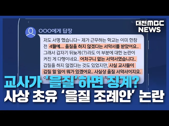 뉴스데스크 뉴스데스크뉴스투데이뉴스데스크 VOD(전체 다시보기)뉴스투데이 VOD(전체 다시보기)유튜브뉴스페이스북 뉴스카카오톡 뉴스인스타그램 뉴스 prev 2024.6.13 - 목요일 next 전국 최초, 교사 '을질' 근절 조례 만드나/데스크 ◀ 앵 커 ▶'을질'이라는 말, 들어보셨나요?상급자의 부당한 지시 즉 '갑질'의 반대말로, 하급자가 정당한 지시를따르지 않는 행위를 말하는데요.최근 충남교육청과 도의회가 일선 교사와 교직원의 '을질'을... 김태욱 천안 상가서 불법촬영한 10대 남성 검거 천안 서북경찰서가 도심에 있는 한 상가 여자화장실에 몰래 들어가 여성을 불법촬영한 혐의로 10대 남성을 검거했습니다.지난달 23일 오후 3시쯤 천안시 성정동의 한 상가에서 불법 촬영을 당한 것 같다는... 김성국 불법 촬영 범죄 근절하려면?/데스크 ◀ 앵 커 ▶때와 장소를 가리지 않고 벌어지는불법 촬영 범죄의 실태와 문제점을 연이어 전해드리고 있습니다.되풀이되는 불법 촬영 범죄를 막기 위해서는처벌을 강화하는 한편, 불법 촬영에 대한 인식도 바... 이승섭 사흘 연속 34도 웃돌아..이른 무더위 기승 사흘 연속 한낮 수은주가 34도를 웃도는 이른 무더위가 이어진 가운데, 오늘도 대전과 세종, 충남 대부분 지역에서 올 들어 가장 높은 기온을 경신했습니다.오늘 낮 최고기온은 논산 34.5도, 대전과 부여 ... 김성국 이차전지 전담심사 도입/데스크 ◀ 앵 커 ▶이차전지는 LG와 삼성 등 국내 기업이세계 시장에서 두각을 나타내는 국가 주력 기술 가운데 하나입니다.그만큼 기술 경쟁이 치열한데,특허청이 이차전지 특허 출원을 맡는 전담 조직을 출범시... 고병권 장철민 "특허청장 5개월째 공석..첨단기술 주도권 확보 뒷전" 오는 20일 국제특허협력기구인 IP5 청장회의에 의장국인 우리나라 특허청장이 불참하는 상황에 대해 우려의 목소리가 나오고 있습니다.민주당 장철민 의원은 이번 청장회의는 우리나라가 의장국으로 첨단... 문은선 대전 민생 직결.. 'R&D 예산 복원'/데스크 ◀ 앵 커 ▶정부가 올해 RD 예산을 대폭 삭감하면서 과학도시 대전은 그야말로 직격탄을 맞고 있는데요. 22대 국회가 해결해야 할 지역 현안을 살펴보는 기획보도, 오늘은 RD 예산 삭감 문제와 그 대안을 들... 박선진 고 채수근 상병 소속 대대장, 묘역 참배 외상 후 스트레스 장애 등으로 병원에 입원했던 고 채수근 상병 소속 부대 대대장인 이 모 중령이 퇴원 직후 국립대전현충원에 있는채 상병 묘역를 찾아 참배했습니다. 이 중령은 채 상병에게 '어두운 곳... 박선진 보령서 대낮 음주사고 낸 70대 남성 입건 오늘 낮 12시 40분쯤보령시 주교면의 한 식당 주차장에서술에 취한 70대 남성이 운전하던 화물차가주차돼 있던 화물차를 들이받았습니다.사고 직후 그대로 차를 타고 도주한 이 남성은 1km 떨어진 도로에... 김성국 음주 운전하다 고등학생 치어 숨지게 한 30대 징역 13년 대전지법 천안지원 형사3단독 허미숙 판사가음주 운전을 하다가 횡단보도를 건너던고등학생을 차로 치어 숨지게 한 혐의로 기소된36살 남성에게 징역 13년을 선고했습니다.피고인은 지난 3월, 천안시 서북... 이승섭 예산 덕산초 앞에서 음란행위 남성, CCTV 포착돼 검거 지난달 24일 예산군 덕산초등학교 앞어린이보호구역에서 음란행위를 하던 40대 남성이 예산군 CCTV통합관제센터 요원의 관제와 신속한 신고로 경찰에 검거됐습니다.군은 2019년 관제센터 개소 이후 1,953... 김태욱 '선거법 위반' 지난 총선 당시 예비 후보 등 4명 검찰 송치 대전 대덕경찰서가 공직선거법 위반 혐의로제22대 국회의원선거 당시 대덕구의 한 예비후보 등 4명을 기소의견으로 검찰에 송치했습니다.이들은 지난 22대 총선 당시 공식 후보로 등록되기 전, 대덕구청에... 김성국 민주노총 "세종보 재가동 중단" 촉구 민주노총대전본부와 세종충남본부가 세종보 재가동 반대 농성장이 있는금강 한두리교에서 기자회견을 열고, 세종보와 공주보의 재가동 중단을 촉구했습니다.이들은 세종보가 다시 가동되면 야생 생물들이 ... 이승섭 논산 군수 공장 준공, 일부 주민 '반대 시위' 경찰과 충돌 논산에서 확산탄 등을 생산하는 방산업체가 준공식을 연 가운데, 반대 집회에 나선 주민들과 이를 제지하는 경찰 간에 충돌이 빚어졌습니다.오늘 오전 논산시 양촌면에서 열린방산업체 준공식에 지역 주민... 고병권 충남도, 천수만 고수온 피해 최소화에 14억 원 투입 30도를 웃도는 더위가 이어지는 가운데충남도가 양식장이 밀집한 천수만을 중심으로고수온 피해 최소화 대책을 추진합니다.도는 14억 6천만 원을 투입해어업인들에게 고수온 대응 장비와 영양제,면역증강... 김태욱