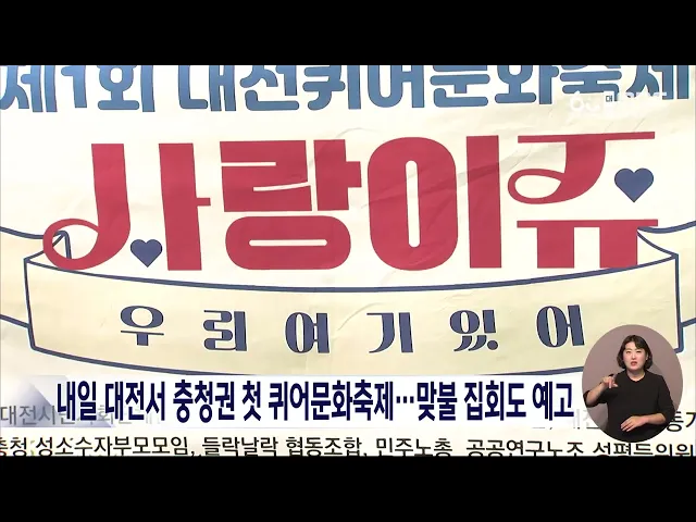 뉴스데스크 뉴스데스크뉴스투데이뉴스데스크 VOD(전체 다시보기)뉴스투데이 VOD(전체 다시보기)유튜브뉴스페이스북 뉴스카카오톡 뉴스인스타그램 뉴스 prev 2024.7.5 - 금요일 next '보 재가동 반대' 천막 농성 68일..정치권도 나서/데스크 ◀ 앵 커 ▶세종보 재가동 반대를 주장하며 시작한 지역 환경 운동가들의 천막 농성이 어느새 두 달을 넘긴 가운데, 야당 관련 상임위 의원들이 찾아 힘을 보태겠다고 약속했습니다. 세종보 문제가 충청을 ... 김광연 내일 대전에서 퀴어문화축제..맞불 집회도 예고 주말인 내일, 대전역 등지에서 충청권 첫 퀴어문화축제가 예정된 가운데반대 맞불 집회도 예고돼 충돌이 우려됩니다.대전 퀴어문화축제 조직위는내일 오전 11시부터 대전역 동광장 일대에서성소수자 등이 ... 이승섭 행정수도 완성을 향해!/데스크 ◀ 앵 커 ▶대통령 세종 집무실은 국회 세종의사당과 함께 세종시 행정수도 완성의 핵심 퍼즐이죠.이런 대통령실의 세종시 이전을 의무화하는 법안이 곧 발의될 예정입니다. 현 대통령 임기 내 집무실 이전... 박선진 이글스·시티즌, "후반기 반등 노린다"/데스크 ◀ 앵 커 ▶올 시즌 프로야구와 프로축구가 어느새 반환점을 돌았지만, 성적은 아쉽기만 합니다.한화 이글스와 대전하나시티즌은 시즌 내내나란히 하위권을 맴돌다가 감독 교체라는극약처방까지 내렸는데요.... 이승섭 검찰, '부하 여경 성추행' 전직 지구대장 징역 2년 구형 검찰이 부하 여경 2명을 성추행한 혐의로재판에 넘겨진 전직 경찰 지구대장에게징역 2년을 구형했습니다.검찰은 대전지법 천안지원에서 열린결심 공판에서 "성 비위 범죄로 엄벌할 필요가있다"고 주장했고... 이승섭 주말 내내 장맛비..최대 100mm 예상 오늘 천안과 아산 등 충남 내륙 5개 시군과세종에 폭염주의보가 내려지는 등 무더위가 이어진 가운데 주말인 내일부터 다시 장맛비가내리겠습니다.이번 비는 휴일인 모레 밤까지 30에서 80mm, 많게는 100m... 김성국 대전 고속도로 교각에서 콘크리트 떨어져 오늘 오전 9시 10분쯤 대전시 괴곡동 대전남부순환고속도로의 교각 하부에서콘크리트가 일부 떨어져 한국도로공사가 조치에 나섰습니다.도로공사는 철근을 감싸던 콘크리트 구조물의일부가 낡아 떨어진 것... 김성국 세종교사노조 '교육청, 방학 중 학교별 중식 제공 계획" 재검토 요구 세종교사노조가 교육청이 방학 중에도학교별로 신청한 학생들에게 점심을 제공하는사업을 진행하는 것과 관련해, 충분한 협의가 없었다며 재검토를 촉구했습니다.이들은 일선에서 요구하지도 않은 예산을... 고병권