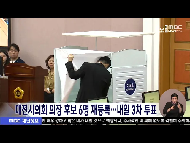 뉴스데스크 뉴스데스크뉴스투데이뉴스데스크 VOD(전체 다시보기)뉴스투데이 VOD(전체 다시보기)유튜브뉴스페이스북 뉴스카카오톡 뉴스인스타그램 뉴스 prev 2024.7.9 - 화요일 next 또 국지성 호우..시간당 최대 50mm/데스크 ◀ 앵 커 ▶지난 주말부터 충청권에 장맛비가 이어지고 있습니다.이미 많게는 250mm에 육박하는 비가 쏟아졌고세종에는 시간당 60mm가 넘는 집중호우로크고 작은 피해가 속출하고 있는데요.오늘 밤에도 또다... 김성국 장맛비에 대청댐 수문 개방⋯하류 수위 2.8m 높아져 장맛비가 이어지면서 한국수자원공사가 대청댐 홍수 조절을 위해 수문을 개방하고초당 1,300톤의 물을 하류로 흘려보내고 있습니다.이는 최근 대전과 충남 일대에 많은 비가 내리면서 대청댐으로 유입되는... 고병권 오송참사 1년..의무 차단시설 '태반이 미설치'/데스크 ◀ 앵 커 ▶집중호우로 하천물이 범람해 14명이 숨진 충북의 지하차도 참사가 발생한 지어느덧 1년이 다 돼갑니다.사고 이후 정부와 지자체는 지하공간에 대한 안전 대책을 앞다퉈 내놨는데요.앞서 보셨듯이... 윤소영 박경귀 아산시장 '시장직 상실 위기'/데스크 ◀ 앵 커 ▶2년 전, 지방선거에서 상대 후보에 대한허위 사실을 공표한 혐의로 재판에 넘겨진박경귀 아산시장이 파기환송심에서도 당선무효형을 선고받았습니다.박 시장은 즉각 대법원에 다시 상고하겠다고... 이승섭 더불어민주당, 비위 의혹 김기웅 서천군수 사퇴 촉구 더불어민주당 보령·서천 지역위원회가 충남도청에서 기자회견을 열고 김기웅 서천군수의 사퇴를 촉구했습니다. 이들은 통나무집 밀실행정과 불법 산지 전용, 부인의 명품백 수수 의혹 등 김 군수 관련 비... 김태욱 민주당 김두관 당 대표 후보 세종에서 출마 기자회견 더불어민주당 전당대회에 출마한김두관 당 대표 후보가 세종시에서 출마 선언을 했습니다.김 후보는 세종시의회에서 기자회견을 열고, "유례가 없는 제왕적 당 대표, 1인 정당화로 민주당에 대한 국민 우... 고병권 장티푸스 백신..사실상 접종 중단/데스크 ◀ 앵 커 ▶장마가 끝나면 곧 본격적인 여름 휴가철이 시작되죠.여행이나 업무 차 동남아시아나 인도 등의 나라로 떠날 때는 일종의 전염병인 장티푸스를 예방하기 위한 백신 접종이 중요한데요.일선 보건소... 윤소영 당진에서 유치원생 등 12명 식중독 의심 증세 오늘 오후 2시 20분쯤 당진의 한 물놀이장에서 유치원생 10명과교사 2명이 구토와 설사 등의 식중독 의심 증세를 보였습니다.보건당국은 이들이 물놀이장에 입장하기 전에외부에서 사 온 도시락을 먹은 것... 이승섭 천안 공장서 끼임 사고...60대 직원 숨져 어제 오후 천안시 직산읍의 한 공장에서일하던 60대 직원이 기계에 몸이 끼어 숨졌습니다.경찰과 고용노동부는 상자 인쇄기를 청소하다 끼임 사고가 난 것으로 보고 업체 관계자 등을 상대로 안전 수칙을 ... 윤소영 한 살 배기 아이 숨지게 한 친모 항소심서 감형 대전고법 제3형사부가 한 살배기 아이를지속적으로 폭행해 숨지게 한 혐의로 기소된 29살 친모의 항소심에서 징역 20년을 선고한 원심을 깨고, 징역 15년을 선고했습니다.재판부는 피고인이 범행 전 아이... 이승섭 대전YMCA 청소년회관 개관 대전YMCA 청소년회관이 유성구 구암동에 문을 열고 본격적인 업무에 들어갔습니다. 올해로 창립 77주년을 맞아 새로운 100년을 개척하는 힘찬 걸음을 선포한 대전YMCA는 청소년회관 건축이라는 새로운 역... 조형찬 대전시의회 의장 후보 6명 재등록 내일 치러지는 대전시의회 제9대 후반기 의장 선거에 시의원 6명이 재등록을 마쳤습니다. 대전시의회 접수 결과, 박종선, 박주화, 송인석, 이병철, 이재경, 조원휘 의원 등 국민의힘 소속 시의원 6명이후... 박선진 황정아 "우주항공청 연구개발본부 대전 신설 건의" 경남 사천에 지난 5월 문을 연 우주항공청의 연구개발본부를 대전에 신설해야 한다는 건의가 나왔습니다.더불어민주당 황정아 의원은윤영빈 우주항공청장을 국회에서 만나"항우연과 카이스트 등 최고 수준... 김윤미