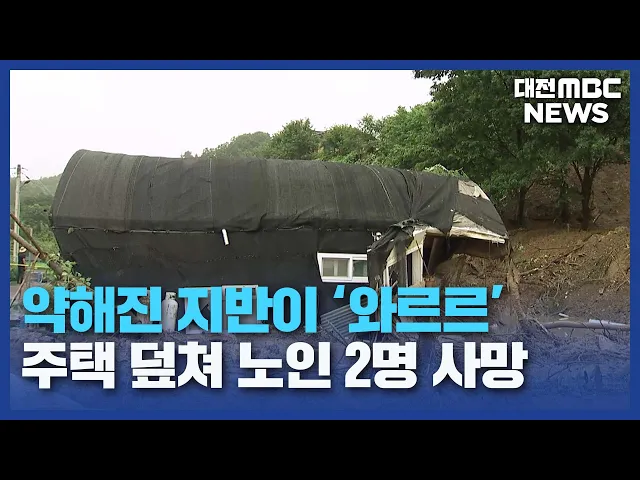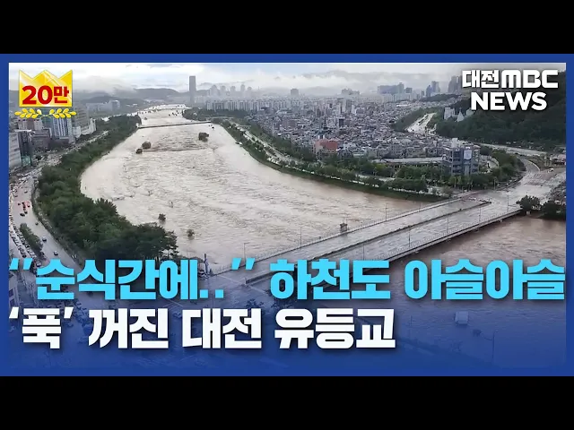 뉴스데스크 뉴스데스크뉴스투데이뉴스데스크 VOD(전체 다시보기)뉴스투데이 VOD(전체 다시보기)유튜브뉴스페이스북 뉴스카카오톡 뉴스인스타그램 뉴스 prev 2024.7.10 - 수요일 next 지하주차장 침수로 승강기 갇힌 남성 사망‥"침수에 단전 추정"/데스크 ◀ 앵 커 ▶밤사이 충청권에는 3백mm 가까운물폭탄이 떨어졌습니다.특히 새벽에 내린 기습 폭우가인명 피해를 더욱 키웠습니다.충남 논산에선 한 오피스텔 지하가 침수돼승강기 안에 갇힌 입주민이 숨졌습니... 고병권 극한 호우 흙더미 충청권 덮쳤다/데스크 ◀ 앵 커 ▶특히, 이번 극한 호우로 인한 인명피해는 산사태, 토사 유출 사고로 주로 발생했습니다. 계속된 장맛비에 약해진 지반이 무너져 내린건데 서천과 금산에서 60,70대 노인 2명이 숨졌습니다. 김태... 김태욱 마을 고립 '공포의 4시간'..이재민 170여 명/데스크 ◀ 앵 커 ▶이번 집중호우로 대전의 한 마을은 송두리째 물에 잠겨 섬처럼 고립됐습니다.결국, 구조대가 보트를 타고 들어가 4시간 동안 공포에 떨던 주민들을 모두 구조했습니다.박선진 기자입니다. ◀ 리포... 박선진 2백 년만의 폭우/데스크 ◀ 앵 커 ▶충청권에는 시간당 100mm 안팎의 극한 호우가 쏟아졌습니다.2백 년 만에 한 번 발생할 만한기록적인 폭우였는데요.지난 주말부터 이어진 장맛비에피해가 속출하면서 충남도는 정부에 전폭적인 지... 이승섭 하천 위험에 '유등교 침하·출근 대란'/데스크 ◀ 앵 커 ▶극한호우는 도심 하천도 위험 수위로 끌어올렸습니다. 행인이 불어난 하천에 빠졌다 극적으로 구조되는가 하면, 일부 교량은 지반이 무너지며 아예 주저 앉기도 했습니다. 출근길 시민들은 극심... 김광연 제보 영상으로 본 호우/데스크 ◀ 앵 커 ▶우리 지역에 쏟아진 기록적인 폭우에현장에 계신 시청자들도 대전MBC에소중한 제보 영상을 보내주셨습니다.시청자 제보 영상으로 본 이번 집중호우 현장을이승섭 기자가 정리했습니다.◀ 리포트 ▶... 이승섭 대전서 열차 운행 중단·지연에 이용객 큰 불편 오늘 새벽 내린 폭우로 열차 운행이일부 중단되거나 지연되면서 대전역과 서대전역 이용객들이 큰 불편을 겪었습니다.코레일에 따르면, 여수발 첫 열차인 KTX 502열차가 4시간 반 동안 지연된 것을비롯해 ... 김지훈 장마로 채소류 가격 상승?시금치 30% 올라 장마철이 이어지면서 채소 가격이 계속해서 오르고 있습니다. 한국농수산식품유통공사에 따르면시금치 소매가격은 100g에 1,276원으로 일주일 만에 30.1% 올랐고 쌈배추와 적상추도 일주일 전보다 26%, 17... 김지훈 박용갑 “LH, 침수 우려 반지하 주택 매입 실적 0건” 2년 전 집중호우에 따른 인명 사고를 계기로 도입한 '반지하 퇴출' 사업 실적이 전무한 것으로 나타났습니다.민주당 대전 중구 박용갑 국회의원이LH로부터 제출받은 자료 분석 결과, 지하층 주택, 이른바 ... 김지훈 대전시의회 후반기 의장단 늑장 선출..지방의회 난맥상 드러내 국민의힘 소속 시의원 간 내분 등으로 파행을 거듭하던 대전시의회가 후반기 원 구성을 마무리했습니다.대전시의회는 오늘 3차례에 걸친 의장 투표를통해 국민의힘 조원휘 의원을 후반기 의장에, 제1부의... 김지훈 '근로자 사망' 한국타이어에 항소심도 벌금 1천만 원 구형 지난 2020년 한국타이어 대전공장에서 근로자가 기계 설비에 옷이 끼여 숨진 사고로 기소된 한국타이어 대전공장장과 법인에 대해검찰이 항소심에서도 각각 벌금 1천만원을 구형했습니다.대전지법 제2-3 ... 김지훈 '수사 도중 또 불법 촬영' 고교생에 실형 선고 대전MBC가 단독 보도한, 수사 도중 또다시 불법 촬영 범죄를 저질러재판에 넘겨진 고교생이 실형을 받았습니다.대전지법 형사6단독 김지영 판사는"범행이 발각된 이후에도 재범을 저질렀고피해자들의 정신... 이승섭 대전 전세 시장 회복세⋯전세 거래 활발해져 전세대출 금리 안정 등으로 대전의 전세 시장이 완만한 회복세를 보이고 있습니다.KB부동산에 따르면지난해 1월 대전의 주간 전세수급지수는 57.8에 불과했지만 1년 반이 지난 이달 초에는 123까지, 2배가... 김지훈 정읍∼계룡 송전선로 금산 경유 '문제없음' 처분에 주민 반발 금산 지역 주민들이 한국전력공사의 '신정읍∼신계룡 송전선로'의 입지 선정 과정에 문제가 있다며 국민권익위원회에 민원을 제기했으나 받아들여지지 않았습니다.금산군 진산면 주민들에 따르면 권익위는 ... 김지훈