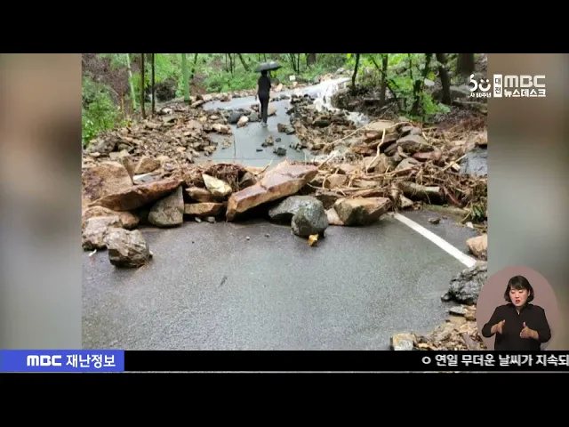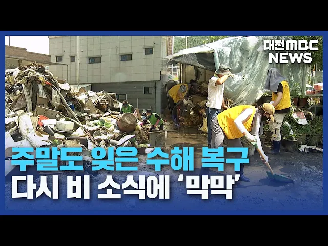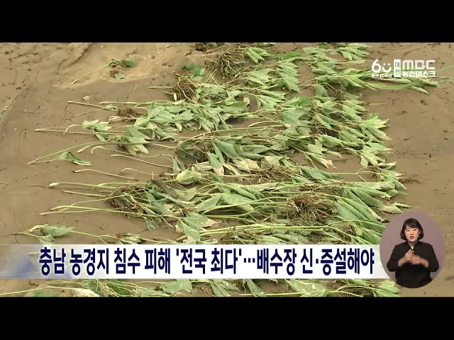 뉴스데스크 뉴스데스크뉴스투데이뉴스데스크 VOD(전체 다시보기)뉴스투데이 VOD(전체 다시보기)유튜브뉴스페이스북 뉴스카카오톡 뉴스인스타그램 뉴스 prev 2024.7.13 - 토요일 next 주말 잊은 피해복구...비 소식엔 '막막'/데스크 ◀ 앵 커 ▶30도가 넘는 무더위 속에서도 수해 복구 작업이 이어졌습니다.피해 주민들의 고통을 조금이라도 덜기 위해 곳곳에서 자원봉사자들이 구슬땀을 쏟았습니다.윤소영 기자입니다.◀ 리포트 ▶마을 입구... 윤소영 충남 농경지 침수 피해 '전국 최다'⋯배수장 신·증설 촉구 이번 집중호우로 충남의 농경지 7천5백여 ha가 물에 잠겨 전국에서 가장 많은 피해를 본 가운데, 논산과 부여, 서천과 금산군이 정부의 근본적인 대책을 촉구하고 나섰습니다.특별재난지역 선포를 요청한 ... 김지훈 대전시, '침하' 유등교 하부 산책로 통행금지⋯붕괴 우려 대전시가 지난 집중호우 때 일부 기둥이 주저앉아 전면 통제 중인 유등교 아래 산책로 통행을 절대 하지 말아 달라고 재난문자를 통해 긴급 공지했습니다.대전시는 유등교 기둥이 추가로 침하될 가능성이 ... 김지훈 충남산림자원연, 대둔산도립공원 입산 통제 충남도 산림자원연구소가 최근 집중호우로 파손된 탐방로 복구 등을 위해논산, 금산 지역에 맞닿은대둔산도립공원 입산을 통제합니다.연구소는 최근 많은 비로 선녀폭포와군지폭포로 가는 데크가 암석에 ... 김태욱 대청호에 수해 쓰레기 대량 유입⋯집중호우 여파 집중호우로 충청권 식수원인 대청호에 많은 양의 쓰레기가 유입돼 수자원공사가 쓰레기 처리 대책 마련에 나설 계획입니다.한국수자원공사에 따르면 최근 충청권을 강타한극한 호우로 대청호에는 상류에서... 김지훈