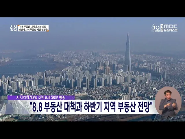 뉴스데스크 뉴스데스크뉴스투데이뉴스데스크 VOD(전체 다시보기)뉴스투데이 VOD(전체 다시보기)유튜브뉴스페이스북 뉴스카카오톡 뉴스인스타그램 뉴스 prev 2024.8.24 - 토요일 next 보건의료노조 총파업 가결⋯지역 7개 병원 참여 예정 전공의 진료 거부가 장기화하는 가운데보건의료노조의 오는 29일 총파업이 가결돼지역 의료 공백이 심화할 우려가 커지고있습니다.지역에서는 충남의 4개 의료원과 대전을지대병원, 대전선병원, 대전공공... 김지훈 지천댐 반대위, 26일 충남지사 찾는 청양에서 대규모 집회 김태흠 충남지사가 오는 26일 '지천댐 논란'이커지고 있는 청양군을 찾을 예정인 가운데,지천댐 반대 측이 대규모 집회를 예고해 물리적 충돌이 우려됩니다.지천댐 건설 추진 반대위원회는 26일 '도민과의... 김지훈 로열젤리의 화려한 진화..양봉 농가에 희소식/데스크 ◀ 앵 커 ▶건강식품으로 잘 알려진 로열젤리가 이제 기능성 화장품으로 재탄생합니다.기후 변화로 어려움을 겪고 있는 양봉 농가의 소득 다각화에 도움이 될 전망입니다.김광연 기자입니다.◀ 리포트 ▶여왕... 김광연 시시각각 "8.8 부동산 대책과 하반기 지역 부동산 전망" 내일 오전 8시 35분 방송되는 대전MBC 시사토론 프로그램 '시시각각 2024'는 정부가 주거 안정화를 위해 내놓은 '8.8 부동산 대책' 효과와 파장을 다룹니다. 또 정부가 서울과 수도권의 치솟는 집값을 잡... 최기웅 대전시 관평동서 승용차 인도 돌진⋯인명 피해 없어 어젯밤 11시쯤 대전시 관평동 현대아웃렛인근 도로에서 승용차가 횡단보도와 인도로 돌진해 난간을 들이받고 멈춰 섰습니다.인적이 드문 시간대여서 다행히 인명 피해는 없었지만,차량 운전자 등이 사고 ... 김지훈 '2연승' 대전 "김천 잡고 강등권 탈출 노린다" 2연승을 달린 대전하나시티즌이 기세를 몰아 시즌 첫 3연승에 도전합니다.승점 27점으로 10위에 위치한 대전하나시티즌은 내일(25) 저녁 경북 김천에서 열리는 '하나은행 K리그1 2024' 28라운드에서 김천 ... 김지훈 황운하, 성심당 대전역점 임대료 해결 위해 개정안 발의 조국혁신당 황운하 원내대표가 성심당 대전역점의 임대료 문제 해결을 위해한국철도공사법 일부 개정안을 발의했습니다.개정안은 역사 내 입점업체의 임대료 상한을 주변 시세를 고려해 정하도록 함으로써... 김지훈 올해 추석 선물 구매 의향 1위 '사과 세트' 올해 추석에 사고 싶은 선물세트로 사과를 선호하는 것으로 나타났습니다.한국농수산식품유통공사가 최근 3천여 명을 대상으로 추석 선물센트 구매의향을 조사한 결과,사과가 25.2%로 가장 많았고, 소고기... 김지훈