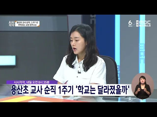 뉴스데스크 뉴스데스크뉴스투데이뉴스데스크 VOD(전체 다시보기)뉴스투데이 VOD(전체 다시보기)유튜브뉴스페이스북 뉴스카카오톡 뉴스인스타그램 뉴스 prev 2024.8.31 - 토요일 next 공주·부여 제외 '폭염주의보 해제'...비 내리며 더위 주춤 8월의 마지막 날이자 주말인 오늘대전, 세종, 충남은 여전히 더웠지만, 폭염의 극심한 기세는 한풀 꺾이면서 공주, 부여를 제외한 모든 지역의 폭염주의보도 해제됐습니다.오늘 낮 최고기온은 대전 서구와... 조형찬 서로를 지키는 '생존 수영'...바다에서 실제처럼/데스크 ◀ 앵 커 ▶10년 전 발생한 세월호 참사 이후각 교육청들마다 생존 수영 교육을 진행하는데대부분 실내 또는 이동형 수영장에서 형식적으로 해왔습니다.충남교육청이 전국 최초로 실제 바다에서 말그대로 ... 김태욱 세종시 연고 조정두, 패럴림픽 10m 권총 '첫 금' 세종시를 연고로 하는 남자 10m 공기권총 조정두 선수가 2024 파리 패럴림픽 선수단에 첫 금메달을 안겼습니다.조정두 선수는 현지시간으로 어제프랑스 샤토루 슈팅센터에서 열린 남자 10m 공기권총 결선... 조형찬 계룡 다세대주택 정화조 가스 폭발 추정...1명 부상 어제 오후 4시 9분쯤 계룡시 엄사면의 한 다세대주택에서 정화조 가스 폭발로 추정되는 사고로 통로가 일부 무너져 인근에 있던 50대 여성이 다쳤습니다.경찰과 소방당국은 상,하수도를 통합 관리하면서 ... 조형찬 대전시, 한밭야구장서 '다회용 컵 2만 개' 지원 대전시가 한밭야구장 내 1회용품 사용을 줄이기 위해 식,음료 이용 관람객에게 2만 개 이상의 다회용 컵을 지원합니다. 시는 오늘 한화이글스 정기시즌 경기를 시작으로 다음 달 야구 경기 동안 야구장 7... 조형찬 시시각각 예고 <용산초 교사 순직 1주기 학교는 달라졌을까> 내일 오전 8시35분 방송되는 대전MBC 시사토론프로그램 '시시각각 2024'에서는 대전 용산초 교사 순직 1주기를 앞두고 교권 회복과 공교육 정상화를 위한 해법을 모색합니다. 이번 토론에서는 교육전문가... 최기웅 대전 학령인구 감소율 전국 2위, 세종 유일 증가 대전의 학령인구가 두드러지게 감소한 반면,세종은 유일하게 증가해, 맞춤형 대책이 필요한 것으로 조사됐습니다.2024년 교육기본통계에 따르면, 올해 대전의 유·초·중등 학생 수는 지난해보다 2.6% 감소... 조형찬 제24회 안견미술대전 대상 최연우 작 '커넥션' 제24회 대한민국 안견미술대전 시상식이 오늘 서산문화회관에서 열려, 최연우의 평면부문 서양화 '커넥션'이안견대상을 수상하는 등 47명이 특선 이상의영예를 안았습니다.올해 안견미술대전은 5개 공모부... 조형찬 지역 기업, 9월 경기전망지수 71.6...5개월 연속 하락 중소기업중앙회 지역본부가 대전,세종,충남 중소기업 252곳을 조사한 결과 다음 달 업황전망 건강도지수는 71.6으로 5개월 연속 하락흐름을 보였습니다.업종 별로는 비제조업 보다 제조업의 하락폭이 컸으... 조형찬 '학생선수 최저학력제' 다음 달 시행...지역 체육계 '걱정' 다음 달 전면 시행되는 학생선수들의 '최저학력제'를 놓고 부작용을 우려하는목소리가 나오고 있습니다.대전시교육청과 지역 체육계에 따르면, 당장 2학기 대회 출전이 불투명한 학교운동부 학생은 대전에... 조형찬