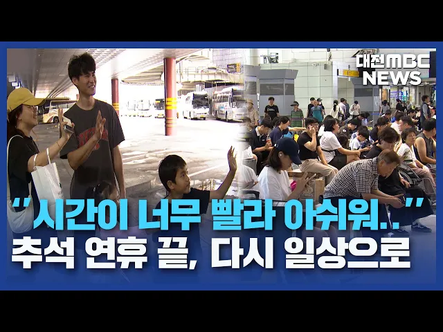 뉴스데스크 뉴스데스크뉴스투데이뉴스데스크 VOD(전체 다시보기)뉴스투데이 VOD(전체 다시보기)유튜브뉴스페이스북 뉴스카카오톡 뉴스인스타그램 뉴스 prev 2024.9.18 - 수요일 next 대전 오월드 낮 기온 37도⋯모레부터 폭염 꺾여 추석 연휴 마지막 날인 오늘도대전과 세종, 충남 전역에 폭염특보가 내려진 가운데 늦더위가 이어졌습니다. 오늘 낮 최고 기온은 대전 오월드가 37도, 보령이 34.8까지 치솟는 등 한낮 찜통더위가 이어졌... 윤소영 귀경길 고속도로 상황/데스크 ◀ 앵 커 ▶닷새간의 긴 추석 연휴의 마지막 날입니다.귀경 차량과 함께 이른 차례와 성묘를 마친 시민들이 나들이에 나서면서 충청권 고속도로는 구간 별로 차량들이 더딘 흐름을 보였는데요.지금은 정체가... 조형찬 '다시 일상으로' 아쉬운 귀경길/데스크 ◀ 앵 커 ▶명절 연휴 끝자락, 잘 마무리하고 계십니까?추석 연휴 고향을 찾은 사람들은 오랜만에 만난 가족들과 오붓하고 애틋한 시간을 보냈는데요. 일상으로 돌아가는 발걸음에는저마다 아쉬움이 가득했... 윤소영 아산 농로에서 차량 수백 대 정체⋯"내비게이션 앱 믿다가..." 지난 추석 귀성길 차량들이 국내 내비게이션 앱 안내로 이동하다 아산의 한 농로에서 다섯 시간 동안 정체에 시달렸다는 사연이 온라인상에서 알려졌습니다.해당 운전자들은 추석 당일, 내비게이션 앱을 ... 윤소영 추석 연휴 대전 112신고 5천 9백여 건…작년보다 줄어 이번 추석 연휴 동안, 대전에서 접수된 112 신고는 5천 9백여 건으로, 지난해와 비교해 20% 가까이 줄었습니다. 대전경찰청은 올해 연휴 기간 접수된 살인과 강도 등 5대 범죄 신고는 257건으로지난해보다... 윤소영 지역 고액 체납자 2백여 명..체납액 6백억 원 넘어 지난해 대전과 세종, 충남에서1억 원 넘는 세금을 내지 않은 고액 체납자가 2백 명이 넘는 것으로 나타났습니다.더불어민주당 한병도 의원이행정안전부로부터 받은 자료를 보면대전은 고액 체납자 69명이 ... 이승섭