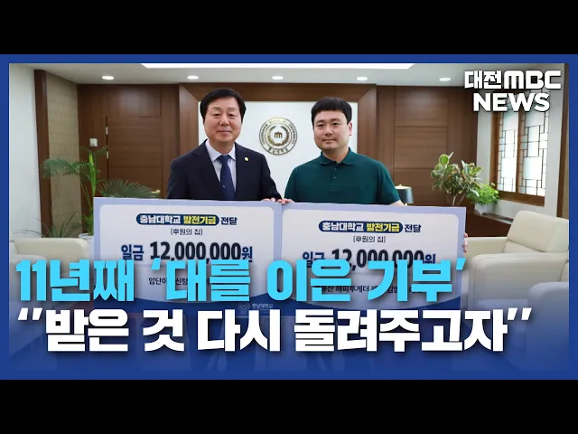 뉴스데스크 뉴스데스크뉴스투데이뉴스데스크 VOD(전체 다시보기)뉴스투데이 VOD(전체 다시보기)유튜브뉴스페이스북 뉴스카카오톡 뉴스인스타그램 뉴스 prev 2024.9.20 - 금요일 next 차등 전기요금 지역, 충남도 준비됐나?/데스크 ◀ 앵 커 ▶충남도는 전국에서 가장 많은 전력을 생산하고 있는 지역이지만전기료 감면 혜택은 없죠.이런 모순을 해결하기 위해 전력 생산 지역에 전기를 더 싸게 공급하는 법안이 마련돼전국 지자체가 치열... 김태욱 최대 150mm 이상 비..호우특보 발령 태안과 당진, 서산 등 충남 일부 지역에호우특보가 내려진 가운데 대전과 세종, 충남 지역은빗줄기가 차츰 굵어지고 있습니다.지금까지 많게는 60mm가량의 비가 내렸는데,주말인 내일 낮까지 시간당 30~50... 이승섭 대전·세종·충남에 산사태 위기경보 '주의' 발령 산림청이 많은 비가 예보된대전과 세종, 충남 지역에 산사태 위기경보 '주의' 단계를 발령했습니다.산림청은 전국 17개 시도와 관계 기관을 대상으로 산사태 재난에 대비한 태세를 점검할 계획이며, 비상 ... 이승섭 "모두 학생들 덕"⋯대를 이은 기부/데스크 ◀ 앵 커 ▶지역의 선한 영향력을 이어가기 위한따뜻한 시선의 대전MBC 창사 60주년 기획보도이음 순서입니다.식당을 운영하며 10년 넘게 충남대학교에 기부하고 있는 어머니의 뜻을 이어아들까지 기부에 동... 박선진 격렬비열도 해상에서 어선 화재..선원 8명 구조 오늘 낮 12시 30분쯤 태안군 근흥면격렬비열도 북서쪽 37km 해상을 항해하던29톤급 어선에서 불이 났습니다.화재 당시 어선에 타고 있던 선원 8명은해경의 구조 협조 요청을 받은 인근 어선에모두 구조됐... 이승섭 대전 치과 의원서 불⋯9명 대피 오늘 새벽 6시 40분쯤, 대전시 산성동의 상가 건물 4층에 있는 치과 의원에서 불이 나 40여 분 만에 꺼졌습니다.병원 진료 시간이 아니어서 인명피해는 없었지만, 건물 안에 있던 9명이 대피했습니다.경찰... 윤소영 대면적 세계 최고 효율 태양전지, 상용화 눈앞/데스크 ◀ 앵 커 ▶국내 연구진이 기업과 공동으로 개발한 세계 최고 효율의 태양전지 기술이 상용화를 눈앞에 두고 있습니다. 실내 창호나 자동차 선루프 등 다양한 분야 제품으로 선보일 전망입니다. 최기웅 기... 최기웅 "국감서 노조 가입여부까지 제출 요구" 과기연구노조 반발 다음 달 국정감사를 앞두고 국회 과학기술정보방송통신위원회 소속여당 의원들이 노조 관련 자료까지 요구해 연구기관을 중심으로 반발이 일고 있습니다.공공과학기술연구노동조합은"일부 의원들이 노조 ... 김윤미 세종소방서 "아파트 에어컨 화재 모두 스탠드형" 최근 3년 동안 세종 지역 아파트에서 발생한에어컨 화재는 천장 매립형이 아닌 스탠드나 벽걸이형에서 발생한 것으로 나타났습니다.세종소방서 분석 결과, 최근 3년 동안 세종 지역 아파트에서 발생한 에... 김성국