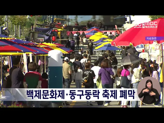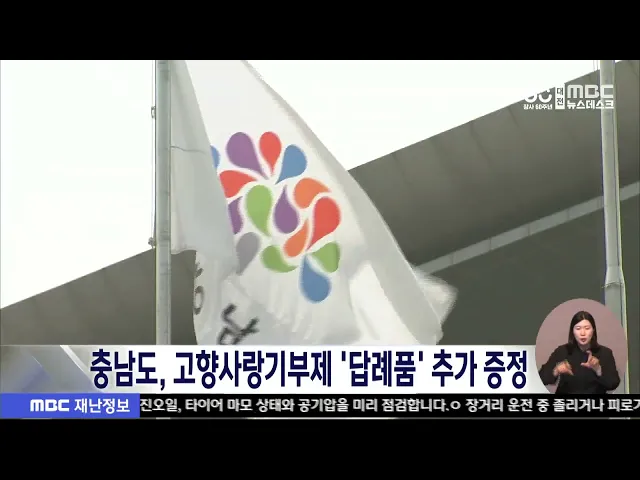 뉴스데스크 뉴스데스크뉴스투데이뉴스데스크 VOD(전체 다시보기)뉴스투데이 VOD(전체 다시보기)유튜브뉴스페이스북 뉴스카카오톡 뉴스인스타그램 뉴스 prev 2024.10.6 - 일요일 next 최민호 세종시장 단식 돌입⋯"예산 부활 필요"/데스크 ◀ 앵 커 ▶최민호 세종시장이 오늘부터 국제정원박람회 예산 부활을 촉구하며 엿새 간의 단식 농성에 돌입했습니다.이미 세종시의회가 두 차례나 관련 예산 전액을 삭감한 전례가 있어, 효과가 미지수인데,... 윤소영 백제문화제·동구동락 축제 폐막, 10월도 축제 풍성 제70회 벡제문화제가 공주시에서 폐막식을 끝으로, 9일 간의 일정을 마무리했습니다. 폐막식에 참석한 김태흠 충남지사는 공주와 부여를 중심으로 해상왕국, 문화강국 백제를 잇고, 역사문화 관광도시로 ... 조형찬 '제95회 국제 댐대회' 2027년 대전서 개최⋯경제효과 43억 원 2027년에 열리는 '제95회 국제 댐대회' 개최지가, 대전으로 최종 확정됐습니다.국제 댐 대회는 세계 최대 규모의 댐 기술과 운영 정보 등을 공유하는 행사로, 한국 수자원 공사는 최근 인도 뉴델리에서 ... 윤소영 땅굴 파 송유관 석유 훔치려던 일당 징역형 대전지법 제11형사부는 지하에 있는 송유관에서 기름을 훔치려고 한 혐의로 재판에 넘겨진 일당 2명에게 각각 징역 5년과 4년을 선고했습니다.이들은 지난 2월부터 넉 달 동안 천안 도심에 있는 창고를 임... 윤소영 세종시, 한글날 앞두고 3m 대형 세종대왕 피규어 설치 한글날을 앞두고 세종시 국립 박물관단지에 3m 규모의 대형 세종대왕 모형이 들어섰습니다. 세종시는 10월 한 달간 열리는 '한글문화특별기획전'을 기념해 독일 완구회사와 협업으로, 국립박물관단지 통... 윤소영 충남도, 고향사랑기부제 답례품 추가 증정 이벤트 충남도가 고향사랑기부제 답례품을 추가로 증정하는 이벤트를 진행합니다.충남도는 내일부터 오는 27일까지충남과 9개 시군에 고향사랑기부를 하고, 감태와 알밤 등 20개 답례품 가운데 하나를선택한 신청... 윤소영 황운하 "스프링클러 미설치 아파트 65%..정책지원 절실" 아파트의 3분의 2가량이 스프링클러가 설치되지 않아 화재 시 인명피해 우려가 큰 것으로 나타났습니다. 국회 국토교통위원회 조국혁신당 황운하 의원이 소방청으로부터 받은 자료에 따르면, 전국 아파트 ... 조형찬 최근 5년간 0세 신생아 증여 재산 '2천 7백억 원' 최근 5년 동안 0세 신생아에게 증여된 재산이 2천7백억 원에 달하는 것으로 나타났습니다.국세청이 박성훈 국민의힘 의원실에 제출한 자료를 보면, 증여세를 신고한 0세 신생아는 2천8백여 명으로, 1인당... 윤소영