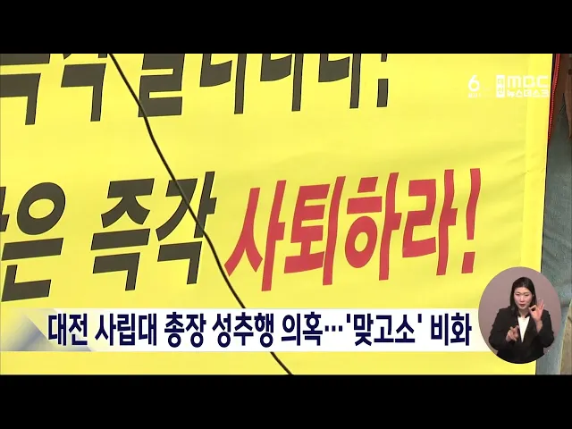 뉴스데스크 뉴스데스크뉴스투데이뉴스데스크 VOD(전체 다시보기)뉴스투데이 VOD(전체 다시보기)유튜브뉴스페이스북 뉴스카카오톡 뉴스인스타그램 뉴스 prev 2024.10.24 - 목요일 next 야산에서 '4,600명 분 대마' 몰래 재배/데스크 ◀ 앵 커 ▶세종 일대 야산 깊은 곳에서 대마를 불법 재배한 일당 2명이 구속됐습니다.경찰이 압수한 대마만 무려 4,600명이 동시에 사용할 수 있는 양이었는데,약초를 캐던 등산객의 신고로 덜미가 잡혔습... 김태욱 예산경찰서, 딸기 절도 용의자 50대 여성 검거 대전MBC가 보도한 예산군 일대 딸기 농가에서 발생한 절도 사건과 관련해 예산경찰서가 50대 여성 용의자를 검거했다고 밝혔습니다.경찰은 어제 오후 7시 40분쯤 CCTV 차량 추적 등을 통해 홍성군 주거지 ... 김태욱 대전 사립대 총장 성추행 의혹, 법적 다툼 비화 대전의 한 사립대 총장이 지난 4월부터계약직 여교수를 성추행했다는의혹이 제기된 가운데, 총장과 여교수 측의주장이 엇갈리면서 법적 다툼으로 번지고 있습니다.성추행 피해를 주장하는 여교수 측은지난... 김태욱 "뭉쳐야 산다" 중부내륙 협력 첫 발/데스크 ◀ 앵 커 ▶수도권 집중과 지방소멸에 대한 위기의식이 초광역 협력 형태로 확산하고 있습니다.충청권 메가시티가 추진 중인 상황에서충청권에 경기와 강원, 전북, 경북까지중부내륙을 아우르는 협의체가 출... 문은선 '혼자 입고 걷는' 웨어러블 로봇 등장/데스크 ◀ 앵 커 ▶장애인이 착용하면 비장애인처럼 스스로 걸을 수 있는 웨어러블 로봇, 그러나, 장비를 착용하려면 타인의 도움이 꼭 필요했는데요.국내 연구진이 하반신 마비 장애인이 스스로 입고 걸을 수 있... 박선진 대전 동구·당진시, 감염목 무단 이동해 소나무재선충병 확산 최근 3년 동안 대전 동구와 당진시에서소나무재선충병에 걸린 나무를 무단으로 옮기다가 감염이 확산한 것으로 드러났습니다.국민의힘 김선교 의원이 공개한 국정감사 자료를 보면 올해 대전 동구와 지난 ... 이승섭 세종시 지역화폐 '여민전' 11월 초 올해 판매 마감 매달 40만 원까지 7% 캐시백이 지급되는세종시 지역화폐인 '여민전'의 판매가 다음(11) 달 초 일시 중단될 전망입니다.세종시는 올해 확보된 여민전 발행액 2천480억 원이 다음 달 초쯤 소진돼 내년 초까... 김윤미 한빛대상 20주년.."우리 이웃이 주인공"/데스크 ◀ 앵 커 ▶한화그룹과 대전문화방송이 지역사회에 공헌한 숨은 일꾼을 찾아 수상하는한빛대상이 20주년을 맞이했습니다.올해도 우리 사회를 위해 묵묵히 땀 흘린평범하지만, 특별한 이웃들이 수상의 영광을... 이승섭 대전 MBC 창사 60주년 다큐 '철도 르네상스' 제 1부 방송 잠시 뒤 대전 MBC 창사 60주년 특집 2부작 다큐멘터리 '철도 르네상스, 레일 이즈 백' 제1부 '철도 도시의 운명을 바꾸다'가방송됩니다.이 다큐멘터리는 철도의 탄생지 영국과철도 강국 일본을 배경으로 ... 고병권 충청 소방역량 업그레이드 '광역 거점' 완성 충청권 5백만 주민의 구조·구급체계를 담당할 119복합타운이 청양군 비봉면에문을 열어 충청소방학교와 119항공대, 장비센터가 입주했습니다. 충남북과 대전,세종 등 충청권 소방공무원 양성을 맡고 있는 ... 최기웅 크레인 타고 간판 달던 노동자 추락..머리 크게 다쳐 오늘 오전 11시 20분쯤대전시 신일동의 한 용접기 제조업체에서크레인을 타고 간판 교체 작업을 하던 50대 노동자가 5~6m 높이에서 추락했습니다.이 사고로 해당 노동자는 머리를 크게 다쳐 병원으로 옮겨... 김성국 '뇌물 수수' 재개발 조합장·시공사 임원 등 6명 기소 대전지검이 수억 원의 금품을 주고받은 혐의로 대전 지역 재개발 사업 조합장과 시공사 임원을 구속 기소하고, 뇌물을 지급하고 조합비를 횡령한 혐의 등으로 무자격 정비사업 관리업자 등 4명도 불구속 ... 김성국 대전 장애인 취창업 박람회 개최..50여 명 채용 지역 장애인들의 취업 기회를 넓히기 위한'2024 대전 장애인 취창업 박람회'가오늘(24), 대전시청에서 열렸습니다.이번 박람회에서는 수어 통역사와 자원봉사자가배치돼 장애인들의 이력서 작성과 면접 등... 이승섭 천안시유기동물보호센터 유기견 절반 가량 입양 올해부터 위탁에서 직영으로 전환한천안시동물보호센터 유기견의 절반 가량이 주인을 찾은 것으로 나타났습니다.센터 측은 지난달 말까지 유기견940여 마리가 입소해 158마리는 주인에게 반환했고 310마리... 문은선 김대식 천안의료원장 후보 인사청문회 다음 달 4일 열려 천안의료원장으로 김대식 현 순천향대 천안병원 사무처장이 내정된 가운데 다음 달 4일 인사청문회가 열립니다.후보자 인사청문특별위원회는 오늘 제1차 회의를 열고 위원장에 정병인, 부위원장에 이현숙 ... 최기웅