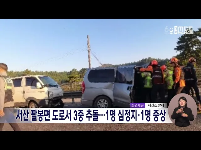 뉴스데스크 뉴스데스크뉴스투데이뉴스데스크 VOD(전체 다시보기)뉴스투데이 VOD(전체 다시보기)유튜브뉴스페이스북 뉴스카카오톡 뉴스인스타그램 뉴스 prev 2024.10.26 - 토요일 next 충청 소방 '광역 거점'..청양 '119 복합타운'/데스크 ◀ 앵 커 ▶충청권 5백만 지역민의 구조·구급을 담당할 광역 거점이 충남 청양에 마련됐습니다. 도내 전역에 분산돼 있던 소방 관련 기관들이 한자리에 모인 건데요, 생명과 안전을 지킬 구조 구급 체계가 ... 최기웅 서울 독립기념관 별도 추진..지역 사회 반발 확산 국가보훈부가 내년 광복 80주년을 맞아 서울에 245억 원을 들여 독립기념관을 추가로추진 중인 것과 관련해 지역 사회 반발이 확산하고 있습니다.천안시의회는 최근 열린 임시회 본회의에서 '독립기념관 ... 김지훈 서산 팔봉면 도로서 3중 추돌..1명 심정지·1명 중상 오늘 오전 7시 10분쯤 서산시 팔봉면 도로에서승합차와 화물차 2대 등 차량 3대가 추돌해승합차를 몰던 60대 운전자가 심정지 상태로 병원으로 옮겨졌으며, 함께 타고 있던 70대도 크게 다쳐 닥터헬기로 ... 김지훈 서산 마늘 영농조합 창고 화재..1억9천만 원 피해 오늘 오전 10시 20분쯤 서산시 팔봉면 마늘영농조합법인 창고에서 불이 나 창고 내부 5백㎡와 물품 등을 모두 태워1억 9천8백만 원의 재산피해를 낸 뒤 1시간 50분 만에 꺼졌습니다.이 불로 다행히 인명 ... 김지훈 태안 을미도 인근 해상서 선박 화재..선원 2명 구조 오늘 오전 8시쯤 태안군 남면 을미도 인근 해상에서 3톤짜리 어선에서 불이 나, 선원 2명이 인근에 있던 또 다른 어선에게무사히 구조했습니다.신고를 받고 긴급 출동한 태안해경은 화재를 진합하고 인근 ... 김지훈 시시각각 예고 '기후변화..우리의 대응은?' 내일 아침 8시 35분 방송되는대전MBC 시사 토론프로그램 시시각각에서는올해 여름 폭염과 생태계의 피해 등현실이 돼버린 기후 변화의 현주소를 진단하고대안을 모색합니다.특히 환경은 미래 세대로부터 ... 고병권 대전시, 자운대에서 민관군 화합 페스티벌 대전시가 자운대 일원에서 국방 가족들과 지역주민들이 함께하는'제2회 민관군 화합 페스티벌'를 개최했습니다.지난 2019년 1회 행사가 열린 뒤 코로나19로중단됐다가 올해 재개된 이번 축제는 다양한 시... 김지훈 11월 2일 서해선 복선전철 개통..당진 철도시대 개막 당진시는 다음 달 2일 서해선 복선전철이 개통해 당진에도 철도시대가 열리면서 수도권 접근성이 크게 개선돼 지역 경제 발전에 큰 도움이 될 것으로 기대한다고 밝혔습니다.서해선은 홍성과 경기도 화성... 조형찬 금산 하천변에서 치매 앓던 80대 숨진 채 발견 오늘 오전 11시 40분쯤 금산군 추부면 장대리하천변에서 80대 노인이 숨져 있는 것을주민이 발견해 경찰에 신고했습니다.경찰은 숨진 노인이 치매를 앓아 왔다는 가족들의 말을 토대로 주변 CCTV를 분석하... 김지훈 한밤중 도로 누워있는 주취자 밟고 지나간 차량 운전자 무죄 대전지법 5-3 형사부 이효선 부장판사가 지난 2022년 보령에서 한밤중에 술에 취한 채 도로에 누워있던 사람을 차로 치어 숨지게 한 혐의로 기소된 20대 운전자에 대한 항소심에서 무죄인 원심을 유지했습... 조형찬