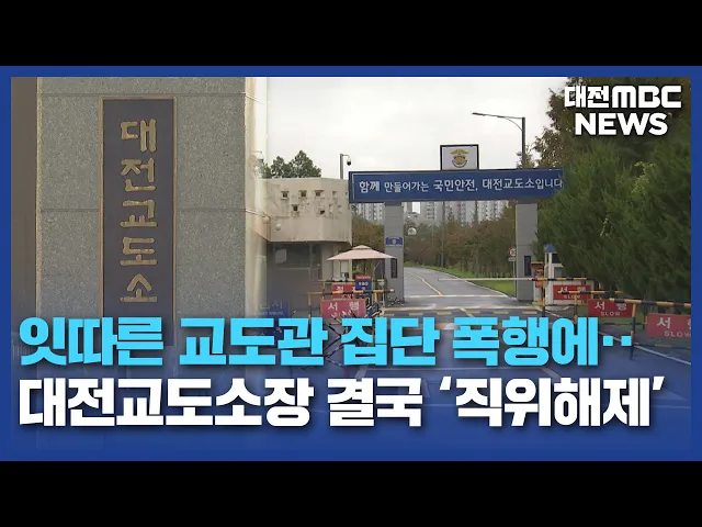 뉴스데스크 뉴스데스크뉴스투데이뉴스데스크 VOD(전체 다시보기)뉴스투데이 VOD(전체 다시보기)유튜브뉴스페이스북 뉴스카카오톡 뉴스인스타그램 뉴스 prev 2024.11.4 - 월요일 next 대전교도소장 '직위해제'/데스크 ◀ 앵 커 ▶대전교도소 교도관들이 재소자를 집단 폭행한 뒤 범행을 은폐하려 한 사건 연속 보도해 드리고 있는데요. 결국 법무부가 칼을 빼들어 교도소장 등 2명을 직위 해제하고, 폭행 혐의를 받는 교도... 김성국 당진서 불법 콜택시 운영자 등 일당 39명 송치 충남경찰청이 당진에서 불법 콜택시 영업으로1억여 원의 부당 이득을 챙긴 30대 운영자를 구속하고, 기사 38명을 불구속 송치했습니다.피의자는 최근 2년간 기사 38명을 모집해 기존 콜택시보다 30% 저렴... 윤소영 고의로 교통사고 낸 뒤 보험금 챙긴 일당 송치 서산경찰서는 고의로 교통사고를 내고 보험금을 챙긴 혐의로 일당 6명을 검찰에 불구속 상태로 넘겼습니다.이들은 지난 2021년 3월부터 2년 동안 25차례에 걸쳐 교차로에서 신호를 기다리거나 차로를 변경... 윤소영 쌀값을 지켜라 '산지 쌀값 흔들'/데스크 ◀ 앵 커 ▶요즘 물가 오름세가 심상치 않은데요.오히려 이 와중에 떨어지는 게 있습니다.바로 쌀값인데요.들녘은 황금빛이 가득하지만 그럴수록 더 잿빛으로 변하고 있는 농심, 농민들의 목소리를 들어봤... 최기웅 교장은 골프장, 교무부장은 가족여행/데스크 ◀ 앵 커 ▶얼마 전, 공주의 한 초등학교 교장이 수학여행 사전답사를 빌미로 제주에서 골프를 친 의혹에 보도해드렸죠.끈질긴 취재 끝에 교장이 사실을 실토했는데,그런데 이게 다가 아니었습니다.함께 답... 윤소영 충청세계U대회 D-1000..흥이·나유 공개/데스크 ◀ 앵 커 ▶충청권 4개 시도가 함께 치르는2027 충청 하계세계대학경기대회가꼭 1000일 앞으로 다가왔습니다.대회 조직위원회는 호랑이와 까치를형상화한 대회 마스코트를 공개하며분위기 끌어올리기에 나섰... 문은선 최민호 시장, 정원도시 박람회 재추진..시의회 예산 제출 최민호 세종시장이 시의회의 예산 삭감으로무산 위기에 놓인 정원도시 박람회 재추진의사를 거듭 밝혔습니다.최 시장은 오늘 직원 소통의 날 행사에서 전국적으로 재정이 어려운 상황이지만도시의 미래를 ... 문은선 내일부터 기온 뚝..모레 아침 영하권 오늘 대전과 세종, 충남 지역은한낮 수은주가 20도를 넘는 포근한 날씨를보인 가운데, 내일부터 기온이 뚝 떨어지겠습니다.내일 아침 최저 기온은 영상 2~8도, 낮 기온이 14~15도로 오늘보다 기온이 5~6도... 김성국 홍성서 전신주 철거하다 50대 작업자 숨져 오늘 오전 7시 50분쯤 홍성군 금마면의 한 축사 인근에서전신주를 철거하던 50대 노동자가 고압전선에 감전돼 병원으로 옮겨졌으나 결국 숨졌습니다.숨진 노동자는 한국전력 하청업체 소속 직원으로 사고 ... 김성국 논산·천안고속도로서 차량 10대 연쇄 추돌...1명 부상 오늘 오후 2시 30분쯤, 논산천안고속도로 천안방향 북공주분기점 인근에서 차량 10대가 연쇄 추돌하는 사고가 났습니다.사고는 1km 간격을 두고 각각 차량 6대와 4대가 잇따라 추돌했으며, 50대 승용차 운... 윤소영 마약 밀수 하루 평균 2건 적발..작년보다 24%↑ 관세청이 올 들어 지난 9월까지하루 평균 2건의 마약 밀수를 차단한 것으로나타났습니다.이 기간 적발된 마약 밀수는 623건, 약 천900만 명이 동시 투약 가능한 양인574kg으로, 지난해 같은 기간과 비교하... 문은선 세종~공주 광역 BRT 구축 사업 이달 초 첫 삽 세종시와 공주시를 오가는 광역 간선급행버스체계, BRT 구축 사업이 오는 2026년 하반기 개통 목표로 이달 초 첫 삽을 뜹니다.이번에 구축되는 광역 BRT는 공주버스터미널을 출발해 정부세종청사 등을 경... 김윤미