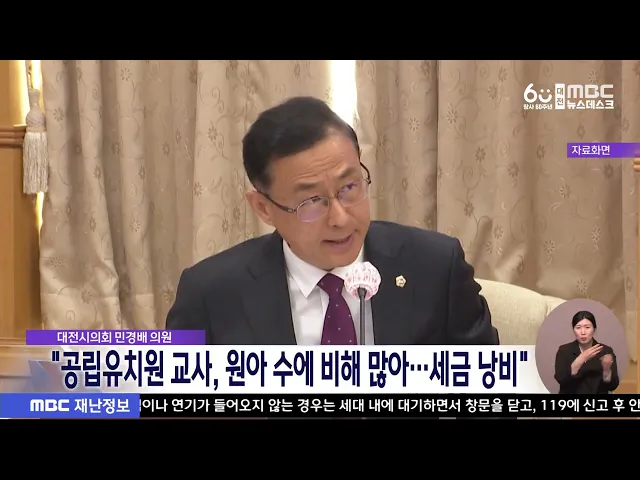 뉴스데스크 뉴스데스크뉴스투데이뉴스데스크 VOD(전체 다시보기)뉴스투데이 VOD(전체 다시보기)유튜브뉴스페이스북 뉴스카카오톡 뉴스인스타그램 뉴스 prev 2024.11.16 - 토요일 next 소나무재선충 확산..수종전환 추진/데스크 ◀ 앵 커 ▶경상도에 이어 충남에도 소나무 재선충병이확산하고 있습니다.산림청과 자치단체는 집단 발생지를 중심으로 수종전환을 본격 추진합니다.문은선 기자입니다.◀ 리포트 ▶충남의 알프스로 불리는 청... 문은선 충남도 수능 이후 청소년 보호 활동 전개 충남도와 천안시 공무원 등이 참여하는충남도청소년유해환경감시단이 오늘천안신부문화공원 일대에서 '청소년 유해환경정화와 보호 캠페인'을 열고, 수능 이후 청소년들의 보호 활동에 나섰습니다.감시단... 조형찬 서산 가정집 난로에서 LP가스 폭발⋯80대 중상 오늘 오전 10시 56분쯤 서산시 대산읍 화곡리의 한 단독주택에서 LP 가스 폭발로 추정되는 화재로 집안에 있던 88살 집주인이 얼굴 등에 2도 화상을 입어 닥터헬기로 병원으로 이송됐습니다.경찰과 소방당... 조형찬 민경배 대전시의원 "공립유치원 교사, 원아 수 비해 많아 세금낭비" 공립유치원 교사가 원아 수에 비해 많아세금낭비라는 지적이 제기됐습니다.민경배 대전시의원은 어제 대전교육청을 상대로 한 대전시의회 교육위원회 행정사무 감사에서 "정원의 20%도 채우지 못하는 병설... 조형찬 시시각각 예고 "지지율 바닥 대통령...충청 영향은?" 내일 오전 8시 35분 방송되는대전MBC 시사 토론프로그램 시시각각에서는윤석열 대통령의 낮은 지지율과 충청의 정치 지형 변화에 관해 짚어봅니다. 특히, 제 2차 공공기관 이전과 충청권 지역은행 설립 등... 고병권 밤부터 비 조금 내린 뒤 기온 하락⋯모레 영하권 '뚝' 주말인 오늘 대전과 세종, 충남은 밤부터 내일 새벽사이 5mm 내외의 비가 조금 내린 뒤 기온이 내려가겠습니다.일요일인 내일은 차츰 맑아지겠고 아침 기온은 6~9도, 낮 기온은 10~13도까지떨어져 쌀쌀하... 조형찬 집행유예 기간 또 살해 40대 여성 2심도 징역 25년 대전고법 제1형사부 박진환 부장판사는살인죄 집행유예 기간 교제 중이던 남성을 길거리에서 흉기로 살해한 혐의로 기소된 40대 여성에 대한 항소심에서도 원심과 같은 징역 25년을 선고했습니다.피고인은... 김성국 대전보건환경연구원, 김장철 농산물 안전성 검사 본격적인 김장철을 앞두고 대전시 보건환경연구원이 김장재료 농산물의 잔류농약을 검사합니다.연구원은 모레부터 다음달 중숨까지 오정, 노은 도매시장, 전통시장, 대형마트에서 유통되는 김장재료인 배... 조형찬 '보령군·대천시 통합 30주년' 기념 슬로건 공모 보령시가 내년도 보령군과 대천시 통합 30주년을 맞아 기념 슬로건을 오는 20일까지 공모합니다.민선자치 30주년을 맞아 보령시의 성장을 돌아보고 향후 도약을 상징적으로 표현하는슬로건을 공모하는데, ... 조형찬 천안시 남부스포츠센터 건립 추진..2027년 착공 천안시가 오는 2029년 상반기 준공을 목표로남부스포츠센터 건립을 추진합니다.시는 오늘 남부스포츠센터 건립을 위한기본계획과 타당성 조사 용역 중간보고회를 갖고 지방재정 투자심사, 건축기획 용역 ... 문은선