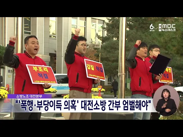 뉴스데스크 뉴스데스크뉴스투데이뉴스데스크 VOD(전체 다시보기)뉴스투데이 VOD(전체 다시보기)유튜브뉴스페이스북 뉴스카카오톡 뉴스인스타그램 뉴스 prev 2024.11.25 - 월요일 next "차민수 중사인데요"⋯군부대 공문서까지 위조해 '노쇼'/데스크 ◀ 앵 커 ▶음식점에 대량의 주문을 넣은 손님이 나타나지 않아 피해를 끼치는 일.속칭 '노쇼'라고 하죠.막대한 피해로 사회문제로까지 대두되고 있는데요.최근 자신을 '차민수 중사'라는 군 간부라고밝힌 ... 김태욱 "'폭행·부당이득 의혹' 대전소방 간부 엄벌해야" 대전소방본부가 간부 2명이 후배 대원을 폭행하고 소방장비 부품을 무단으로 반출한 의혹에 대해감찰 조사 중인 가운데, 이들에 대한 강력한 징계를 요구하는 주장이 나왔습니다.소방을사랑하는공무원노동... 이승섭 전청조 아버지, 또 다른 사기로 징역 8개월 대전지법 형사5단독은 투자 사기로 10억여 원을 가로챈 혐의로 징역 5년 6개월을 선고받은 전청조 씨의 아버지,60대 전 모 씨에게 또 다른 사기 범행과 관련해 징역 8개월을 선고했습니다.전 씨는 지난 20... 윤소영 갑질은 인정돼도 '경고'로 끝?⋯"제 식구 감싸기"/데스크 ◀ 앵 커 ▶지난 7월, 과도한 업무와 상사의 갑질을 호소해 오던 예산경찰서 소속 20대 경찰이 숨진 채 발견되는 사건이 있었죠.사건 직후 충남경찰은 철저한 수사와 함께 순직 인정을 적극 돕겠다고 했는데... 김성국 천변고속화도로 '700억 넘는 빚'은 대전시민 몫?/데스크 ◀ 앵 커 ▶20년 전, 민자 사업으로 건설된 대전천변고속화도로가 막대한 채무에 시달리고 있습니다.대전시가 이 채무의 지급보증을 섰는데요.출자 기업의 운영 기간이 끝나는 7년 뒤면대전시가 700억 원이 ... 이승섭 방산업체 유치 두고 백성현 논산시장-황명선 의원 신경전 논산에 확산탄 생산업체가 들어서는 것을 두고,지역구 민주당 황명선 의원과 국민의힘 소속 백성현 논산시장이 신경전을 벌이고 있습니다.황 의원은 지난 14일 국회에서 기자회견을 열어 위험한 화약이 농... 이승섭 대전교육청, 학원·교습소 불법 심야 교습 점검 대전시교육청이 2학기 기말고사를 앞두고 오늘부터 3주 동안 서구 둔산동 등 학원 밀집 지역을 중심으로 학원과 교습소의 불법 심야 교습 행위를 점검합니다.대전시 조례에 따르면, 학생을 대상으로 한 학... 김윤미 "단과대학처럼 운영" 전국 첫 캠퍼스형 고교/데스크 ◀ 앵 커 ▶일반고이면서도 특목고처럼 특화된 교육과정을 배울 수 있는 전국 첫 캠퍼스형 고등학교가 내년 3월 세종에 문을 엽니다.외국어나 과학, 예술 등 적성에 따라마치 대학처럼 맞춤형 교육이 이뤄져... 김윤미 검찰, 비방 현수막 게시한 김도훈 충남도의원 벌금 2백만 원 구형 검찰이 국회의원 사전투표일에 상대 정당 후보를 비방하는 현수막을 게시한 혐의로 재판에 넘겨진 국민의힘 소속 김도훈 충남도의원과당원에게 벌금 2백만 원을 각각 구형했습니다.이들은 지난 4월 5일 충... 김태욱 서천여고 운동장에서 조선시대 건물지와 소형화포 발견 모듈러 교실과 체육관 건립을 위해 발굴조사를 진행한 서천여고 운동장에서 조선시대 건물지와 임진왜란 직전 제조된 소형화포 등이 발견됐습니다.서천군은 출토된 소형화포 3점은 모병부에 명문이 각인돼... 김광연 정부대전청사 민원동 조성 완료..출입 구역 단일화 정부대전청사 민원 전용 공간인 민원동이 지하 1층, 지상 4층 규모로 신축돼전용 주차 공간과 접견 공간 등을 갖추고 본격적인 운영에 들어갔습니다.민원동 신축에 따라 민원인들은 기존 별도의 출입증 발... 김윤미 대전시, 친환경 소재 현수막 전용 게시대 도입 대전시가 환경 오염과 자원 낭비를 막기 위해친환경 소재로 만든 현수막 전용 게시대를도입했습니다.대전시는 상업용으로 쓰이는 시내 현수막 게시대 천7백여 면 가운데14.3%인 246면에 생분해성 플라스틱... 이승섭