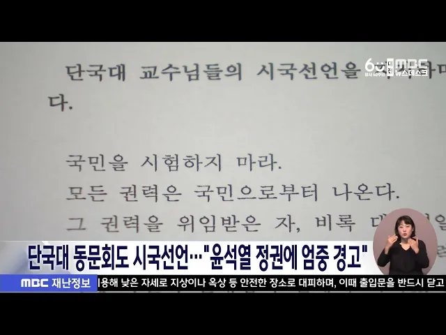뉴스데스크 뉴스데스크뉴스투데이뉴스데스크 VOD(전체 다시보기)뉴스투데이 VOD(전체 다시보기)유튜브뉴스페이스북 뉴스카카오톡 뉴스인스타그램 뉴스 prev 2024.12.2 - 월요일 next 충남대-공주대 통합! 한밭대는?/데스크 ◀ 앵 커 ▶내년 정부의 글로컬대학30 추가 지정을 앞두고충남대와 공주대가 통합을 추진합니다.과거 두 차례 무산됐던 두 대학 통합이이번엔 진짜 이뤄질 수 있을지, 또 최근 통합 논의가 중단된 한밭대와... 문은선 단국대 동문회도 시국선언 "윤석열 정권에 엄중히 경고" 충청권 대학교수들의 시국선언이 최근 잇따르는 가운데 단국대 동문회도윤석열 대통령의 퇴진을 촉구하는 시국 선언문을 발표했습니다.단국대 천안교정 민주동문회 2백여 명은지난달 29일 단국대 교수 135... 김윤미 2차 공공기관 이전 내년으로 또 연기..시민사회 반발 정부가 수도권에 본사를 둔 공공기관의2차 지방 이전을 내년으로 또다시 연기하겠다는뜻을 밝히자, 시민사회단체가 강력하게반발하고 있습니다.충청권을 포함한 비수도권 시민사회단체는 오늘 성명을 내고... 이승섭 '아들 채용 의혹' 대전 서구문화원장 제명 의결..관장직 사퇴 대전MBC가 단독 보도한 대전 서구문화원장의아들 채용 비리 의혹과 관련해 서구문화원이 원장의 제명을 의결했습니다.서구문화원은 인사위원회를 열어아들 채용 비리 의혹이 불거진 원장을 제명하기로 하... 이승섭 "담합 깨면 교복 없다"...대전 7개 권역 '나눠 먹기'/데스크 ◀ 앵 커 ▶교복 카르텔 기획보도 순서입니다.대전의 교복 값이 다른 지역보다 10만 원 정도 높다는 사실, 전해드렸죠.다 이유가 있었습니다.취재진 분석 결과, 대형 교복 브랜드들이 대전을 7개 권역으로 ... 윤소영 "동물도 함께해요" 사랑의 온도탑/데스크 ◀ 앵 커 ▶지난여름 폭염과 폭우부터최근 폭설까지 취약 계층에게는 올해가 특히 더 힘든 한 해인데요.올해도 이런 어려운 이웃에게 온정을 나누는 '희망 2025 나눔 캠페인'이 시작됐는데,충남에서는 반려... 김성국 세종소방본부장, 호주 해외연수 돌연 취소.. 외유성 논란 이달 말 퇴임을 앞둔 장거래 세종소방본부장이 관광 일정을 추가해 해외연수를 떠나려다 돌연 취소해 논란이 확산하고 있습니다.앞서 세종소방본부는 직원 9명이 오는 8일까지 호주에서 소방 관련 선진지 ... 김태욱 교육공무직 6일 총파업..교육청 '급식·돌봄 대책' 마련 교육공무직 차별 해소 등을 요구하며오는 6일로 예정된 교육공무직 총파업에 대비해 지역 교육청이 급식과 돌봄 대책을 마련합니다.지역 교육청은 조리원 파업으로 학교 급식이 어려울 경우, 빵과 우유 등... 김윤미 에너지 전환 시대 핵심 자원 '풍력'/데스크 ◀ 앵 커 ▶2050년 탄소 중립 달성을 목표로 하는 우리나라의 경우 현재 온실가스 배출량의 85% 이상을 에너지가 차지하고 있는데요. 기후위기에 따른 산업 전환을 위해 2036년까지 전국 석탄화력발전소 28... 최기웅 김태흠 지사 "민주당 감액 예산안 단독 처리 유감" 김태흠 충남지사는 더불어민주당이 국회 예산결산특별위원회에서 감액 예산안을 단독 처리한 데 대해 자신의 페이스북에 "민주당이 민생과 직결한 내년 예산안마저 힘으로 밀어붙이는 폭거를 하고 있다"며... 최기웅 개혁신당 지도부 대전 방문 "재·보궐선거에 후보 낼 것" 개혁신당 허은아 대표를 비롯한 지도부가오늘 대전에서 기자 간담회를 열고내년 재·보궐선거와 2년 뒤 지방선거에 충청권에서 많은 후보를 내겠다고 밝혔습니다.허은아 대표와 권중순 대전시당위원장은대... 이승섭 논산 방산업체 "무기 생산 시설 확충 안 할 것" 논산시 양촌면에 들어선 확산탄 생산업체를두고 지역 사회에서 갈등이 불거진 가운데업체 측이 무기 생산 시설을 더 늘리지 않겠다고 발표했습니다.업체 측은 오늘, 대표이사 명의의입장문을 내고, 주민들... 이승섭 홍성 돈사서 불..4억 3천만 원 피해 오늘 새벽 0시 40분쯤홍성군 결성면의 한 돈사에서 불이 나1시간 20분 만에 꺼졌습니다.이 불로 돼지 2천백여 마리가 폐사하고축사 8개 동 가운데 4개 동이 모두 타소방서 추산 4억 3천만 원의 재산피해가... 김성국 대전교도소내 40대 재소자 폭행한 20대 재소자에 징역 4개월 대전지법 형사7단독 박숙희 판사는 지난 6월 대전교도소에서 같은 방 재소자인44살 남성을 폭행한 20살 남성 재소자에게 징역 4개월을 선고했습니다.재판부는 지난해 해당 남성이 특수강도죄로 징역 2년을... 김태욱 충남도, 공주 마곡사 대광보전 굴피자리 등 2건 문화유산 지정 충남도가 공주 마곡사 대광보전 굴피자리와 부여 무량사 묘법연화경 등 2건을 도 문화유산으로 새로 지정했습니다. 마곡사 굴피자리는 참나무의 두꺼운 껍질인 굴피를, 가는 올로 쪼개 엮은 자리로 역사성... 최기웅