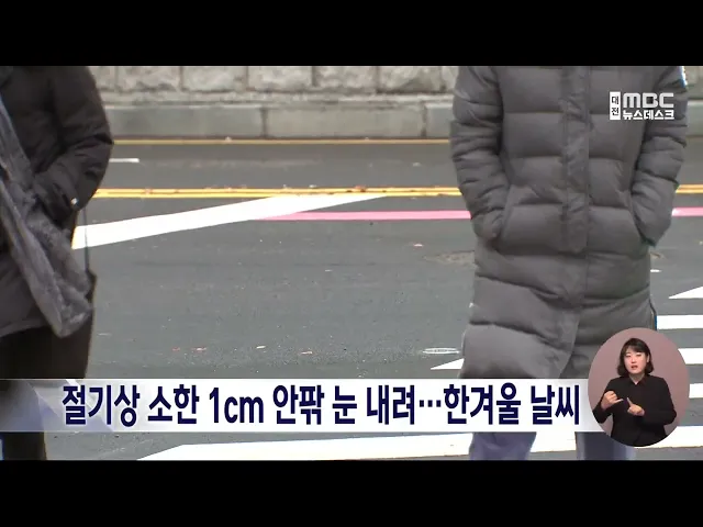 뉴스데스크 뉴스데스크뉴스투데이뉴스데스크 VOD(전체 다시보기)뉴스투데이 VOD(전체 다시보기)유튜브뉴스페이스북 뉴스카카오톡 뉴스인스타그램 뉴스 prev 2025.1.5 - 일요일 next 대전상의, 2025년 1분기 기업경기전망지수 '85' 대전상공회의소가 관내 제조기업을 대상으로올해 1분기 기업경기전망조사를 실시한 결과, 기업경기전망지수 BSI가 85로 기준치 100을 밑돌며, 지난해 4분기보다도 15포인트 떨어졌습니다.이는 트럼프 2기 ... 김지훈 절기상 가장 추운 '소한'..모레부터 더 추워 1년 가운데 가장 춥다는 절기상 소한인오늘 대전과 세종, 충남 지역은 낮에도 1cm 안팎의 눈이 내리고 체감온도가 영하권으로 내려가는 등 한겨울 날씨가 이어졌습니다.내일 아침 최저기온은 영하 1도에서... 김성국 대전하나시티즌, 국가대표 공격수 '주민규' 영입 프로축구 대전 하나시티즌이K리그1에서 두 차례 득점왕을 차지했던국가대표 공격수 주민규를 영입했습니다.올해 34살인 주민규는지난 2021년과 2023년, 각각 제주와 울산소속으로 22골과 17골을 넣어 득점... 김성국 서해호 전복 일주일째.."덤프트럭에 실종자 없어 서산 앞바다에서 전복된 서해호의 실종자를 수색하는 작업이 일주일째 이어지는 가운데, 해경이 배에 실려있던 24t 덤프트럭을 인양했습니다.태안해경은 오늘 오후 1시 40분쯤마지막 실종자가 타고 있을 ... 김성국 당진 저수지 어선 전복 실종자 2명 중 1명 발견 지난 달 당진의 한 저수지에서 0.7t 어선이 뒤집혀 태국 국적의 40대 선원 2명이 실종된 사실이 뒤늦게 알려진 가운데, 오늘 이들 가운데 1명이 숨진 채 발견됐습니다.당진소방서는 오늘 오후 1시 50분쯤 ... 김성국 한숨 돌린 '고교 무상교육'..지원 3년 연장/데스크 ◀ 앵 커 ▶고등학교 무상교육에 필요한 비용 절반가량을정부가 3년 더 지원하도록 하는 법안이 야당 주도로 국회 본회의를 통과했습니다.많게는 수백억 원에 달하는 정부 지원이 당장 올해부터 끊길까 걱정... 김윤미