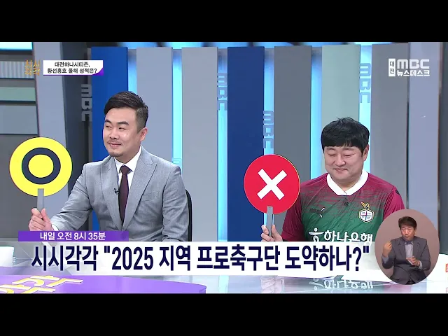 뉴스데스크 뉴스데스크뉴스투데이뉴스데스크 VOD(전체 다시보기)뉴스투데이 VOD(전체 다시보기)유튜브뉴스페이스북 뉴스카카오톡 뉴스인스타그램 뉴스 prev 2025.1.18 - 토요일 next 무단횡단 행인 친 버스기사에 무죄.."서행버스에 달려와" 무단횡단을 하던 행인을 치어 다치게 한 혐의로 기소된 60대 버스기사에게 무죄가 선고됐습니다. 대전지법 형사3단독 김선용 판사는 교통사고 처리 특례법 위한 협의로 기소된 세종시 BRT 버스기사에게 무... 조형찬 내일부터 따뜻한 날씨 이어져 주말인 오늘 계룡의 아침 기온이 영하 10.4도까지 떨어지며 추웠지만, 내일부터는 서쪽에서 따뜻한 바람이 불어와당분간 평년보다 높은 기온을 유지하겠습니다.오늘 낮 최고기온은 금산이 9도, 대전 8도까... 조형찬 시시각각 '2025 지역 프로축구단 도약하나?" 내일 아침 8시 35분 방송되는대전MBC 시사 토론 프로그램 시시각각에서는개막을 한달 앞둔 프로축구에서지역 구단인 대전 하나시티즌과 충남아산 FC의 성적을 전망합니다.특히, 대전하나시티즌은 지난해 ... 고병권 논산 단독주택서 불…혼자 살던 80대 여성 숨져 오늘 새벽 2시 59분쯤 논산시 연무읍 마전리의 한 단독주택에서 불이 나 50분 만에 꺼졌습니다.이 불로 집에서 홀로 생활하던 80대 할머니가 숨졌고, 60여 ㎡를 모두 태우고, 소방서 추산 9백여 만 원이 ... 조형찬 '고령층 증가' 대전 암환자 증가..위암 가장 많아 대전의 암환자가 늘고 가장 많이 발생하는 암은 위암으로 나타났습니다.충남대병원 대전·충남지역암등록본부가 발표한대전지역암등록통계에 따르면, 2022년 대전의 암 환자는 7,497명이 새로 발병해, 10년... 조형찬 "전투식량 대신 사달라" 군 간부 사칭 사기 '주의보' 충남에서 군 간부를 사칭한 사기 시도가 또 발생해 주의가 요구됩니다. 당진시에 따르면, 어제 지역 군부대 간부라는 남성이 철물점 두 곳에 가짜 공문서 사진을 보내며 물품 구매를 약속한 뒤"전투식량 ... 조형찬 윤 대통령 구속 기로, "기각해야".."구속 기대" 12.3 비상계엄 선포로 내란 우두머리 혐의가 적용돼 구속영장이 청구된 윤석열 대통령에 대해 지역정가가 엇갈린 주장을 내놓고 있습니다. 이상민 국민의힘 대전시당위원장은 자신의 SNS를 통해 "윤 대통... 조형찬 "구속은 당연, 탄핵까지 쭉" 충청권도 한 목소리/데스크 ◀ 앵 커 ▶내란 우두머리 혐의로 체포된윤석열 대통령이 구속 갈림길에 놓였습니다.12.3 내란 이후 숱한 고비를 넘어온 시민들은 주말인 오늘도 광장에 모여 대통령 구속을 강력히 촉구했습니다.윤소영 기... 윤소영