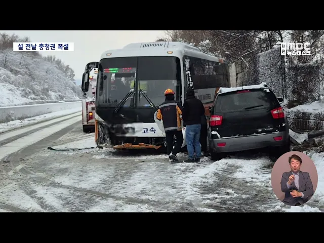 뉴스데스크 뉴스데스크뉴스투데이뉴스데스크 VOD(전체 다시보기)뉴스투데이 VOD(전체 다시보기)유튜브뉴스페이스북 뉴스카카오톡 뉴스인스타그램 뉴스 prev 2025.1.28 - 화요일 next 산림청, 설 연휴 산림복지시설 안전대책 강화 산림청이 설 연휴에 많은 눈이 내리면서모레까지 휴양림 등 전국 산림복지시설 방문객의 안전 대책을 강화합니다.산림청은 폭설 피해를 줄이기 위해지지대 보강과 제설제 살포 등에 나서고,많은 눈으로 산... 김지훈 경부고속도로 북천안나들목 연쇄 추돌..정체 극심 오늘 오후 5시 30분쯤 천안시 성거읍경부고속도로 북천안나들목 양방향에서각각 연쇄 추돌 사고가 발생해 귀성과 귀경길에 나선 차들이 극심한 정체를빚었습니다.먼저 부산 방향으로는 시외버스와 승용차 ... 이승섭 이 시각 귀성 고속도로/데스크 폭설이 내린데다 설을 하루 앞두고 막바지 귀성길에 오른 차량들로 충청권 주요 고속도로는 종일 심한 정체가 빚어졌습니다.아직도 답답한 흐름을 보이는 곳이 많은데요.이 시각 고속도로 상황을 한국도로... 조형찬 설 전날 폭설 피해 속출...내일까지 최대 15cm 더/데스크 ◀ 앵 커 ▶연휴 넷째 날이자 설 전날인 오늘,대전과 세종, 충남에는 최대 30cm에 가까운 눈폭탄이 떨어졌습니다.축사 지붕이 무너지고, 민가가 고립되는가 하면눈길 교통사고도 잇따랐습니다.눈은 내일까지... 박선진