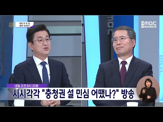 뉴스데스크 뉴스데스크뉴스투데이뉴스데스크 VOD(전체 다시보기)뉴스투데이 VOD(전체 다시보기)유튜브뉴스페이스북 뉴스카카오톡 뉴스인스타그램 뉴스 prev 2025.2.1 - 토요일 next 시시각각 "충청권 설 민심 어땠나?" 방송 내일 오전 8시 35분 방송되는대전MBC 시사 토론 프로그램 '시시각각'에서는설 연휴 동안 윤석열 대통령 구속기소와조기 대선 가능성 등 최근 정국에 관한 민심 향방을 주제로 토론합니다.특히, 탄핵 이전... 고병권 세종경찰, 명절 특별치안대책으로 112신고 신속 대응 세종 경찰이 설 명절 특별치안대책으로 범죄신고와 112신고를 크게 줄이는 등시민 안전을 위한 가시적인 성과를 거뒀다고 밝혔습니다. 세종경찰청에 따르면, 지난 달 20일부터 30일까지 11일간 다중운집장... 조형찬 '여교수 성추행 혐의' 대전 사립대 총장 검찰 송치 대전유성경찰서가 여교수 성추행 혐의를 받는대전 모 사립대 총장을 검찰에 불구속 송치했습니다.해당 교수는 지난해 총장실 등에서 여교수를 성추행한 혐의로 경찰에 고발됐으며, 경찰은 수차례 소환 조... 조형찬 산폐장 사고 지연 연락에 서산시 "유감" 설 당일 산업폐기물매집장 에어돔 붕괴 사고를 해당 업체가 늑장 통보한 것에 대해서산시가 유감을 표명했습니다. 서산시는 사고 시간으로부터 15시간 30분이 지나서야 시에 통보했고, 소방서 등에도 일체... 조형찬 "신속 파면"⋯맞불 집회도..연휴 끝 계속되는 집회/데스크 ◀ 앵 커 ▶엿새간의 설 연휴가 끝나고 맞은 첫 주말, 시민들은 또다시 거리로 나왔습니다.정부와 여당이 합심해 법치주의를 흔들고 있는 지금, '윤석열 파면'만이 민주주의를 지키는 길이라며 신속한 탄핵... 김성국