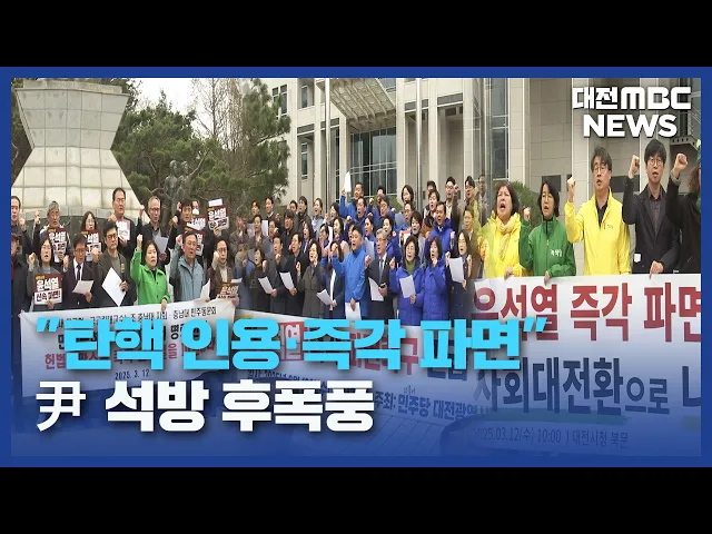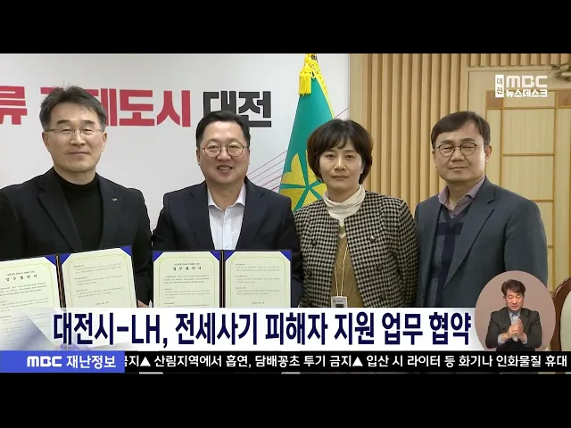 뉴스데스크 뉴스데스크뉴스투데이뉴스데스크 VOD(전체 다시보기)뉴스투데이 VOD(전체 다시보기)유튜브뉴스페이스북 뉴스카카오톡 뉴스인스타그램 뉴스 prev 2025.3.12 - 수요일 next 김태흠 지사 “내포 난방비 인하 조속 추진” 김태흠 충남지사가 어제 내포신도시아파트연합회 회원들을 만난 자리에서 최대한 빠른 시일 내에 난방요금이 인하될 수 있도록 하겠다며 관련 부서에 조속한 조치를 지시했습니다. 또, 향후 난방요금 인상... 조형찬 대전 아파트 화재 잇따라...주민 30여 명 긴급 대피 오늘 새벽 3시쯤,대전시 어은동의 한 18층짜리 아파트에서 불이 나 30분 만에 꺼졌습니다.다친 사람은 없었지만, 주민 30여 명이 긴급 대피했고, 6층 가구 내부와 아파트 일부 외벽이 불에 탔습니다.앞서 ... 윤소영 보령 대천항 인근 선박 충돌..선원 전원 구조 오늘 오전 6시 반쯤 보령시대천항 인근 해상에서3톤 급 선박과 2.7톤 급 선박이 충돌했습니다.3톤 급 배에 타고 있던 선원 2명이10여 분 만에 도착한 해경에 구조됐고2.7톤 급 배에 탄 선장 한 명은 경상... 조형찬 대전환경운동연합 "환경부, 9개 댐 후보지도 백지화해야" 오늘 열린 국가수자원관리위원회에서 기후대응댐 14곳 중 5곳의 댐 후보지가 백지화된 것과 관련해 나머지 9개 댐 후보지도백지화해야 한다는 주장이 제기됐습니다.대전환경운동연합은 논평을 통해 "환경... 조형찬 (주)신화, 대전시에 장애인의 날 기념 쌀 50톤 기탁 주식회사 신화가 다음 달 장애인의 날을 앞두고, 대전시와 대전사회복지공동모금회에1억 2천여만 원 상당의 쌀 50톤을 기탁했습니다.시와 모금회 측은 이번에 받은 물품을5개 자치구에 있는 장애인 가정에... 이승섭 밤부터 황사 유입...충청권 황사 위기경보 '관심' 단계 발령 오늘 밤부터 중국에서 발원한 황사가 본격적으로 한반도에 유입되는 가운데, 세종과 충남에는 황사 위기경보 ‘관심’ 단계가 내려져 있습니다.이에 따라 내일 황사로 인한 미세먼지 수치는 세종과 충남이'... 윤소영 대전시-LH, 전세사기 피해자 지원 MOU 대전시가 한국토지주택공사 대전충남지역본부와업무 협약을 맺고, 전세사기 피해자를 적극 지원하기로 했습니다.이번 협약으로 대전시는 전세사기 피해자를 위한 전세피해지원센터를 운영하고,LH는 피해 ... 이승섭 '150억 원대' 전세 사기 임대업자 징역 13년 6개월 대전지법 형사8단독은 대덕연구개발특구 인근에서 연구원 등을 상대로 150억 원대 전세 사기를 벌인 혐의로 기소된 50대 임대업자에게 징역 13년 6개월을 선고했습니다.피고인은 지난 2020년부터 3년 동안... 윤소영 대전-충남 통합 논의 간담회 개최..통합 법률안·절차 논의 대전충남행정통합민관협의체가 세종에서 대전-충남 통합 논의를 위한 간담회를 열고, 통합자치단체 명칭과 권한 이양, 특례 등이 담긴 통합 법률안을 공유하고, 향후 추진 방향을 논의했습니다.참석자들은... 조형찬 4.2 재보궐 내일부터 후보자 등록..충청 3곳서 선거 4.2 재보궐선거 후보자 등록이 내일부터 이틀 동안 진행됩니다.지역에서는 아산시장과 충남도의원 당진시 제2선거구, 대전시의원 유성구 제2선거구 등 3곳에서 치러집니다.특히 이번 재보궐선거는 내년 지... 문은선 "드론 테러 막는다!" 방위통합훈련 진행/데스크 ◀ 앵 커 ▶러시아-우크라이나 전쟁 등에서 드론이 살상 무기로 활용되면서 드론 테러 위험도 커지고 있는데요.우리 군이 국가중요시설에 드론 테러가 발생한 상황을 가정해 경찰과 소방 등과 함께 대응에 ... 김성국 '대권 행보' 김동연..."탄핵으로 내란 종식해야"/데스크 ◀앵 커 ▶ 대권 잠룡으로 꼽히는 김동연 경기지사가 대전을 찾아 대학생들과 만나윤석열 대통령의 즉각 탄핵과 개헌의 필요성을 강조했습니다.헌법재판소의 탄핵 심판 선고를 앞두고 조기 대선에 대비한 보... 김윤미 "탄핵 인용·즉각 파면"..尹 석방 후폭풍/데스크 ◀ 앵 커 ▶헌법재판소의 윤석열 대통령 탄핵 심판 선고가 예상보다 늦어질 가능성이 제기되면서윤 대통령 즉각 파면을 촉구하는 광장의 목소리는 점점 커지고 있습니다.어제 카이스트에 이어 오늘은 충남대... 문은선 고 김하늘 양 살해 교사 신상공개...48살 명재완/데스크 ◀ 앵 커 ▶지난달 대전의 한 초등학교에서 고 김하늘 양을 살해한 가해 교사의 신상정보가 공개됐습니다.피의자는 48살 여성, 이름은 명재완입니다.경찰은 수사를 통해 명 씨가 계획적으로범행을 저질렀다... 김광연