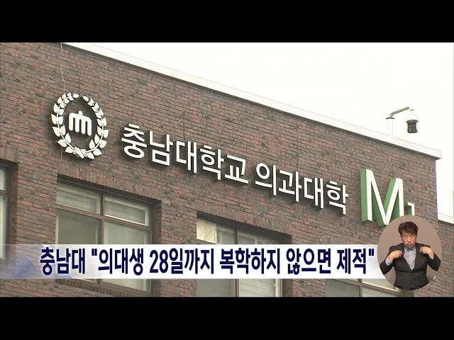 뉴스데스크 뉴스데스크뉴스투데이뉴스데스크 VOD(전체 다시보기)뉴스투데이 VOD(전체 다시보기)유튜브뉴스페이스북 뉴스카카오톡 뉴스인스타그램 뉴스 prev 2025.3.18 - 화요일 next 국내 첫 사립수목원 '천리포수목원 기록' 문화유산 예고 우리나라 최초의 사립수목원인 태안 천리포수목원의 역사를 담은 기록이 국가등록문화유산이 될 전망입니다. 국가유산청은 1962년 수목원을 만들기 위해 설립자가 9천 제곱미터 규모의 땅을 사들인 토지 ... 김윤미 '폭설'에 한화 마지막 시범경기 취소..2위로 마감 오늘 대전한화생명볼파크에서 열릴 예정이던 한화이글스와 삼성라이온즈의 시범경기 마지막 경기가 폭설로 취소됐습니다. 이에 따라 한화는 시범경기를 승률 0.714(7할 1푼 4리), 2위로 마감했고 특히, 투... 이승섭 조경수 옮기다 고압선 끊어져..작업자 2명 감전 오늘 오전 11시 40분쯤 천안시 성환읍에서 조경용 잣나무를 화물차에 싣는 작업을 하다 고압선이 끊어져 20대와 50대 작업자 2명이 감전됐습니다. 이 사고로 2명이 3도 화상을 입어 병원으로 옮겨졌으며 ... 김성국 평택·당진항서 급유 중 기름 유출..해경 긴급 방제 오늘 오전 6시 40분쯤 당진의 평택·당진항 서부두에서 4만t 급 화물선에 수급 중이던 기름이 유출됐습니다. 평택해경은 해양환경공단과 방제선 등 3척을 동원해 오일펜스를 설치하고, 긴급 방제 작업에 나... 김광연 천안논산고속도로서 연쇄 추돌⋯2명 사상 어젯밤 11시 반쯤 논산시 성동면 천안논산고속도로 천안 방향 서논산 나들목 인근 도로에서 화물차 2대와 승용차 1대가 잇따라 부딪혀 3톤 화물차를 몰던 30대가 숨지고, 50대 승용차 운전자가 다쳤습니다... 김광연 "유니콘 기업 키운다" 대전스타트업파크 시동/데스크 ◀ 앵 커 ▶ 빠른 속도로 변화하는 산업 환경 속에서 번뜩이는 아이디어를 활용한 창업의 중요성이 날로 높아지고 있습니다. 대전에 창업 기업을 지원하기 위한 대전스타트업파크 본부가 문을 열고 기업 가... 김광연 '민감국가' 지정 배경 논란에 원자력연구원 "관계없어" 미국 에너지부가 우리나라를 민감국가로 지정한 배경에 원자력연구원이 참여한 양국의 공동 연구 과정에서 생긴 보안 사고 문제가 원인일 수 있다는 일부 언론 보도와 관련해 원자력연구원이 즉각 전면 부... 고병권 충남대 "의대생 오는 28일까지 복학하지 않으면 제적" 충남대학교가 오는 28일까지 휴학 중인 의대생들이 복학하지 않을 경우 제적 처리하겠다는 방침을 밝혔습니다. 김정겸 총장은 서한문을 통해 "정부가 복학을 전제로 한 의대 정원 조정 방안을 발표했고, ... 윤소영 세종시 제2보건소 건립 언제쯤?/데스크 ◀ 앵 커 ▶ 코로나19 대유행을 겪으면서 공공의료의 필요성을 여실히 확인했죠. 하지만 인구 40만 명을 눈앞에 두고 있는 세종시에는 보건소가 하나밖에 없습니다. 의정 갈등 장기화로 의료 서비스까지 한... 문은선 청양군수 "지천댐 주민협의체 참여"/데스크 ◀ 앵 커 ▶ 청양 지천댐 건설을 둘러싼 찬반 갈등 속에 청양군은 그동안 '일방적인 피해를 주는 댐 건설은 반대한다'는 입장을 고수해 왔는데요. 김돈곤 청양군수가 일단 충남도가 주관하는 주... 최기웅 금강 세종보 6개월만에 수문 가동⋯환경단체 반발 정부가 지난해 9월 이후 다시 금강 세종보 수문 가동에 나선 가운데, 환경단체가 세종보 재가동을 위한 준비라며 반발하고 있습니다. 한국수자원공사 측은 "세종보 정기점검 차원에서 수문을 여닫는 동작 ... 고병권 예산 덕산지구 지방상수도 부적합 시공 일부 확인 예산 덕산지구 농어촌 지방상수도 확충 사업과 관련해 일부 구간에서 부적합 시공이 드러나면서 예산군이 대책 마련에 나섰습니다. 예산군은 배수관과 급수관을 설치하는 해당 공사의 관로 매설 상태를 실... 최기웅 '국민저항권' 외치느라...'입법' 뒷전인 의원님들/데스크 ◀ 앵 커 ▶ 국회의원의 본분은 유권자를 대표해 입법 활동을 하고, 지역구는 물론, 국민의 삶을 개선할 정책을 논의하는 것이겠죠. 그러나 12·3 내란 이후 충청권 일부 의원들은 '국민저항권'과 '탄핵 각하... 윤소영