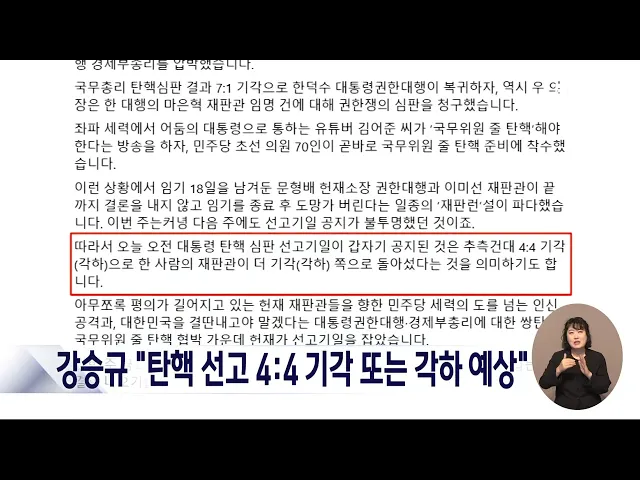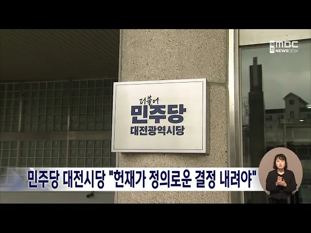 뉴스데스크 뉴스데스크뉴스투데이뉴스데스크 VOD(전체 다시보기)뉴스투데이 VOD(전체 다시보기)유튜브뉴스페이스북 뉴스카카오톡 뉴스인스타그램 뉴스 prev 2025.4.1 - 화요일 next 대전 오월드서 작업 중 50대 노동자 추락해 숨져 오늘 오전 9시쯤 대전 오월드에 있는 3층짜리 건물 옥상에서 에어컨 실외기를 설치하던 50대 노동자가 추락해 숨졌습니다. 숨진 노동자는 에어컨 설치 업체 소속으로, 동료와 2인 1조로 대전도시공사가 맡... 김광연 대전문화재단, 산불 피해 복구 성금 510만 원 기부 대전문화재단 임직원들이 경북 의성과 경남 산청 등에서 발생한 대형산불 피해 복구를 위한 성금 510만 원을 사회복지공동모금회에 전달했습니다. 이번 기부는 산불 피해지역 주민들의 생계지원과 주거 환... 김윤미 "산불 피해지역 산사태 위험, 일반 산림의 200배" 최근 영남권에서 발생한 대형산불로 2차 피해 우려가 커지는 가운데 산불 피해 지역의 산사태 발생 위험이 최대 200배 높다는 연구 결과가 나왔습니다. 국립산림과학원이 2005년 산불이 난 전북 남원지역... 문은선 반복되는 산불 재난⋯농촌 고령화의 그늘/데스크 ◀ 앵 커 ▶ 전국을 휩쓴 대형 산불의 희생자 대부분은 고령층이었습니다. 거동이 불편한 상황을 고려하지 않은 일방적인 대피 안내가 피해를 키웠다는 지적이 나오는데요. 문제는, 이런 고령층의 신체적 제... 윤소영 4·2 재보선 D-1..막판 지지 호소/데스크 ◀ 앵 커 ▶ 4·2 재보궐선거가 하루 앞으로 다가왔습니다. 윤석열 대통령의 탄핵 심판 선고를 이틀 앞두고 열리는 선거라 민심이 어디로 향할지 관심이 쏠리는데요. 후보들은 선거 운동 마지막 날까지 유권... 이승섭 '내란의 밤'부터 '선고 지정'까지⋯격동의 120일/데스크 ◀ 앵 커 ▶ 윤석열 대통령에 대한 탄핵심판 선고일, 지난 2월 25일 마지막 변론 이후 35일이 지나서야 오는 4일로 잡혔는데요. 비상계엄이 선포된 지난해 12월 3일 이후 시민들은 한겨울을 지나 봄까지 쉬... 김광연 강승규 "탄핵 선고 4:4 기각 또는 각하 예상" 오는 4일로 공지된 윤석열 대통령에 대한 탄핵 심판 선고 기일과 관련해 국민의힘 강승규 의원이 선고 결과를 기각 또는 각하로 예상했습니다. 강 의원은 SNS에 올린 글에서 "불투명했던 선고기일이 갑자... 김윤미 민주당 대전시당 "헌재, 지체 없이 정의 선고해야" 윤석열 대통령의 탄핵 심판 선고일이 오는 4일로 지정된 가운데 더불어민주당 대전시당이 논평을 내고 "헌법재판소가 오직 헌법과 법률, 그리고 국민의 명령에 따라 지체없이 정의로운 결정을 내려야 한다... 박선진 오는 4일 '심판의 날'⋯"만장일치로 파면하라"/데스크 ◀ 앵 커 ▶ 장고를 이어오던 헌법재판소가 드디어 윤석열 대통령에 대한 탄핵 심판 선고 기일을 사흘 뒤인 오는 4일로 정했습니다. 넉 달째 거리로 나와 윤 대통령 탄핵을 촉구해 온 시민들은 '만장일치 파... 김성국 대전 자동차 정비공장서 불⋯직원 8명 대피 오늘 오전 10시 20분쯤 대전시 계산동의 한 자동차 정비공장에서 불이 나 3층짜리 건물 일부를 태운 뒤 45분 만에 꺼졌습니다. 이 불로 근무 중이던 직원 8명이 대피했으며 경찰과 소방 당국은 공장 건물 ... 이혜현