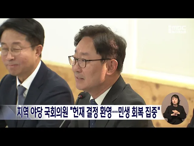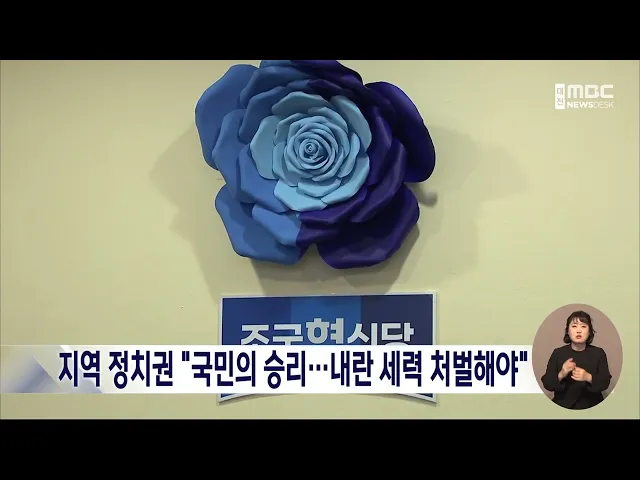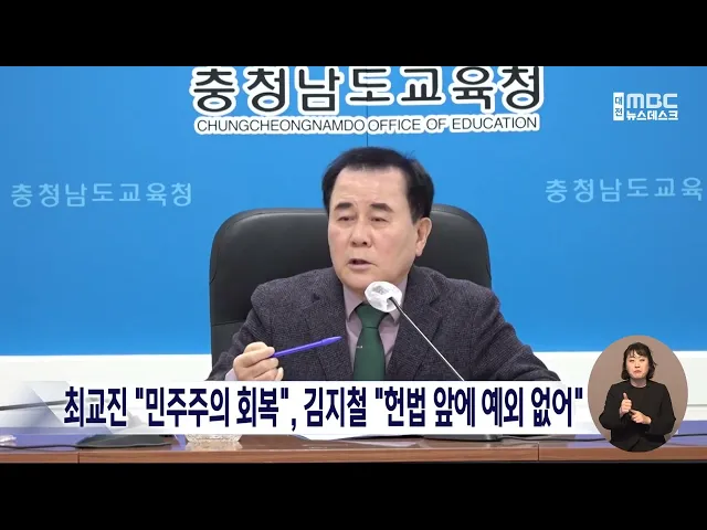 뉴스데스크 뉴스데스크뉴스투데이뉴스데스크 VOD(전체 다시보기)뉴스투데이 VOD(전체 다시보기)유튜브뉴스페이스북 뉴스카카오톡 뉴스인스타그램 뉴스 prev 2025.4.4 - 금요일 next 국립산림과학원 "이상기후로 산불 대형화..예방 중요" 전 세계적인 이상 기후로 산불 발생 시기가 불규칙하고 대형화하고 있어 선제적 예방의 중요성이 강조되고 있습니다. 국립산림과학원은 최근 영남권 산불이 강풍과 고온, 건조한 기상 조건이 맞물려 피해... 문은선 세종시, 산림 전역에 '입산 금지' 긴급 행정명령 세종시가 산불재난 국가위기경보 심각 단계에 따라 '입산 금지' 긴급 행정명령을 발령했습니다. 이에 따라 산림 전역 2만 4천800여 헥타르에서 별도 해제 시까지 입산이 금지되며 산림과 인접한 지역에서... 박선진 천안 산란계 농장서 H5형 AI 확인..긴급 방역 조치 천안시 성남면의 산란계 농장에서 H5형 조류인플루엔자 항원이 검출돼 충남도가 긴급 방역 조치에 나섰습니다. 고병원성 여부는 오늘 저녁쯤 나올 예정으로, 충남도는 해당 농장에서 사육 중인 닭 18만 마... 김윤미 시시각각 "윤석열 대통령 파면 이후 대한민국은?" 방송 윤석열 전 대통령 파면에 따라 대전MBC 시사 토론 프로그램 '시시각각'이 관련 주제를 다룬 특별 편성 토론을 내일 오전 방송합니다. "윤석열 전 대통령 파면 이후 대한민국은?"을 주제로 진행된 이번 방... 고병권 최교진 "민주주의 회복" 김지철 "헌법 앞에 예외는 없어" 윤석열 전 대통령 파면에 대해 최교진 세종시교육감이 "상식과 정의가 바로 선 날이자 민주주의 회복을 선고한 날"이라고 밝혔습니다. 김지철 충남교육감도 SNS를 통해 "최고 권력자인 대통령이라도 헌법... 김윤미 학생들도 생중계 시청 "민주주의 교육의 장"/데스크 ◀ 앵 커 ▶ 세종과 충남 등 지역 학생들도 교실에서 윤석열 전 대통령이 파면되는 장면을 생중계로 지켜봤습니다. 학생들은 교과서로 배운 헌법과 민주주의가 현실에서 어떻게 작동하는지 확인했습니다. 이... 이승섭 지역 정치권 "국민의 승리⋯내란 세력 처벌해야" 야당을 중심으로 한 지역 정치권이 윤석열 전 대통령의 파면 소식에 일제히 환영의 뜻을 밝혔습니다. 더불어민주당과 조국혁신당, 진보당과 정의당 등 지역 정당들은 "윤 전 대통령의 파면은 국민의 승리"... 이승섭 민주당 소속 기초단체장들도 "대통령 파면 환영" 더불어민주당 소속 지역 기초자치단체장들이 윤석열 전 대통령의 파면 결정을 일제히 환영했습니다. 정용래 대전 유성구청장과 박정현 부여군수는 자신의 SNS에 대한민국의 헌법과 법치주의, 민주주의를 ... 이승섭 지역 야당 국회의원 "헌재 결정 환영⋯민생 회복에 집중" 헌법재판소의 윤석열 전 대통령 파면 결정과 관련해 지역 야권 정치인들도 잇따라 입장을 내놨습니다. 대전 유성갑 조승래 의원은 "이제는 회복과 성장의 길로 나아가야 한다"며 “민생 회복에 전력을 다하... 윤소영 이장우 "국민 이길 수 없어"⋯최민호 "헌재 결정 존중" 윤석열 전 대통령에 대한 헌재의 만장일치 파면 결정과 관련해, 탄핵 반대 집회에 참석해 단상에 올랐던 이장우 대전시장이 sns를 통해 "어떤 권력도 국민을 이길수는 없다"는 짧은 글귀를 남겼습니다. 탄... 문은선 "드디어 탄핵"⋯환호 속 엇갈린 반응도/데스크 ◀ 앵 커 ▶ "대통령 윤석열을 파면한다" 시민들은 헌법재판관의 주문에 서로 부둥켜안고 눈물을 흘리며 환호했습니다. 민주주의의 역사가 새롭게 쓰인 순간이라며 헌재의 만장일치 파면 결정을 환영했는데,... 이혜현 "드디어 끝난 내란의 밤"...이 시각 대전/데스크 ◀ 앵 커 ▶ 윤석열 전 대통령 파면 결정에 충청권 시민들도 환호하고 있습니다. 12·3 내란 이후 주말마다 집회가 열렸던 대전 도심에서는 오늘 저녁, 헌재의 파면 결정을 이끈 시민의 승리를 축하하는 집회... 윤소영