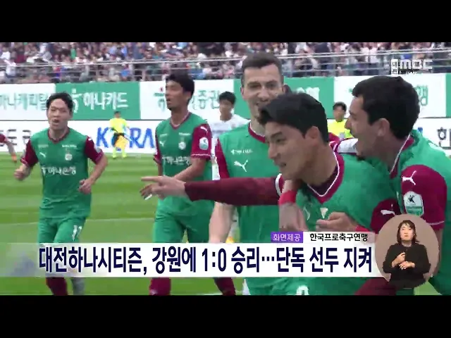 뉴스데스크 뉴스데스크뉴스투데이뉴스데스크 VOD(전체 다시보기)뉴스투데이 VOD(전체 다시보기)유튜브뉴스페이스북 뉴스카카오톡 뉴스인스타그램 뉴스 prev 2025.4.27 - 일요일 next 고온에 강풍까지..당분간 건조한 날씨 지속 휴일인 오늘 대전과 세종, 충남 지역은한낮 수은주가 25도까지 오르며 포근한날씨를 보였고, 건조한 날씨가 이어졌습니다.현재 대전과 세종, 금산과 예산에 건조주의보가 발효 중인 가운데, 내일과 모레도... 김성국 대전하나시티즌, 강원에 1:0 승리⋯단독 선두 굳건 K리그1 대전하나시티즌이 강원FC를 꺾고 리그 1위를 굳건히 지켰습니다.대전은 오늘 대전월드컵경기장에서 열린 강원과의 경기에서 후반 28분코너킥을 받은 주민규가 헤딩골을 넣으면서 1:0으로 승리했습... 김성국 한화, KT 상대로 4:3 승리..리그 3위로 올라 프로야구 한화이글스가 KT위즈와의홈 3연전에서 위닝시리즈를 달성하며 리그 3위로 도약했습니다.한화는 선발 투수로 나선 코디 폰세가 지난 두 경기에 이어 또다시 7이닝 무실점 호투를 펼치는 맹활약 속... 김성국 사회초년생 대상 상습 임금 체불 편의점 점주 구속 대전지방고용노동청은 근로자 15명에게 임금 천 4백만 원을 지급하지 않은 혐의로 편의점 점주를 구속했습니다.이 점주는 대전과 계룡, 경북 울진 등에서편의점 4곳과 식당 1곳을 운영하며, 사회초년생을 ... 김성국 세종 아파트 매맷값 2주 연속 올라 세종시 아파트 매맷값이전국 최대 상승폭을 기록하는 등 2주 연속 올랐습니다.한국부동산원에 따르면,4월 셋째 주 기준 세종 아파트 매매 가격은전주 대비 0.23% 올라, 전국에서 상승폭이 가장 컸습니다.... 고병권 이준석 "세종 발전 위해 KTX 세종역 건립 필요" 연일 세종과 대전을 방문해 충청 표심을집중 공략 중인 이준석 개혁신당 대선 후보가 오늘 대전을 찾아 "세종의 발전을 위해 KTX 세종역 건립이 필요하다"고 밝혔습니다.이 후보는 대전컨벤션센터에서 열... 김성국 국힘 대선주자들, 충청권 잇단 방문 공약 발표 국민의힘 대선주자들이 내일 충청권을잇따라 방문해 중원 표심 잡기에 나섭니다.한동훈 후보는 내일 오전 9시 아산 현충사 참배를 시작으로 국방정책 비전을 발표하고국민의힘 대전시당에서 당원 간담회를... 조형찬 민주당 대선 후보 이재명 선출..'세종시 행정수도 의지' 관심 더불어민주당 6.3 조기대선 후보로 이재명 후보가 최종 선출된 가운데이 후보의 세종시의 행정수도 추진 의지에관심이 쏠리고 있습니다. 이 후보는 권리당원과 대의원 50%, 국민 여론조사 50%를 합산한 최... 조형찬 '관세 충격' 기술 경쟁력으로 돌파/데스크 ◀ 앵 커 ▶미국발 관세 충격에 중국의 기술 개발로 인해 우리 핵심 수출 산업의 활로가 필요한 상황인데요. 충남의 주력 수출 산업인 디스플레이의 기술 초격차 확대를 위한 핵심기지가 문을 열고 중소·중... 최기웅