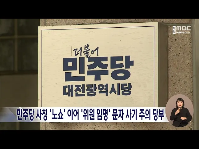 뉴스데스크 뉴스데스크뉴스투데이뉴스데스크 VOD(전체 다시보기)뉴스투데이 VOD(전체 다시보기)유튜브뉴스페이스북 뉴스카카오톡 뉴스인스타그램 뉴스 prev 2025.5.21 - 수요일 next 대전 아파트·공장 잇따라 화재...40여 명 대피 어제 저녁 8시 50분쯤,대전 유천동의 15층 아파트 9층에서 불이 나주민 40여 명이 긴급 대피했습니다.불은 가정집 내부 일부를 태우고 10분 만에 꺼졌으며, 경찰과 소방당국은 충전 중이던 전동킥보드 배... 윤소영 대전 모 여고 담임 성희롱성 발언 신고..경찰·교육청 조사 중 대전의 한 여고 교사가 담임반 학생들에게성희롱성 발언을 했다는 신고가 접수돼경찰과 교육당국이 조사 중입니다.대전시교육청은 지난 14일 3학년 학생 7명이 담임교사에게서 언어적, 신체적 수치심과 불... 문은선 육군 소장, 부하 성추행 혐의로 피소..대전경찰청 조사 중 현직 육군 소장이 부하를 성추행한 혐의로경찰 조사를 받는 것으로 드러났습니다.대전경찰청은 지난달 초 육군 소장의 성 비위를조사해달라는 고소장을 접수하고, 업무상 위력 등에 의한 추행 혐의로 육군... 김지훈 대전시, 우주기술 활용·바이오 혁신 특구 잇단 지정 대전시는 중소벤처기업부가 주관하는우주기술 연구·활용 특구와 합성 생물학 기반 첨단 바이오 제조 글로벌 혁신특구로 각각 지정됐습니다.우주기술 연구·활용 특구는 오는 2029년까지유성구과 대덕구 일... 이승섭 세종시, 대통령실·국회의사당 건립 사업 국비 반영 건의 세종시가 내년 예산 편성 방향을 공유하기 위해 열린 지방재정협의회에서 대통령실과 국회의사당 건립 사업의 차질 없는 추진과 함께 완전 이전을 고려한 예산 편성을 적극 건의했습니다.또, 건립될 국회 ... 김윤미 대전충남녹색연합 "3대 하천 준설로 생태계 파괴..이장우 시장 사퇴해야" 대전충남녹색연합 등 환경단체는 오늘 성명을 내고, 대전시의 3대 하천 준설로 벌레떼가 출몰하고 있다는 대전MBC 보도와 관련해, 생태계 파괴에 대한 책임을 지라고대전시에 촉구했습니다.이들은 대규모 ... 윤소영 국민의힘, 선대위 특보 임명장 발송 오류에 사과 국민의힘이 전국의 전현직 교사 다수에게대통령 선거 선거대책위원회의 특보 임명장을잘못 발송해 논란이 일었습니다.해당 문자는 국민의힘 중앙선거대책위원회명의로 발송돼 임명장을 내려받을 수 있도록... 이승섭 민주당 사칭 '노쇼' 이어 '위원 임명' 문자 사기 확인 최근 더불어민주당을 사칭한 신종 사기 수법이 확산하고 있어 주의가 요구됩니다.민주당 대전시당은 음식점 등에 거짓으로 식사 예약을 하는 이른바 '노쇼' 사기에 이어 대전에서 이재명 대선 후보 선거대... 문은선 선거 벽보 훼손 고등학생 3명 입건...경찰 "신고 당부" 세종남부경찰서가 지난 17일과 18일 세종시 보람동에 게시된 대통령 선거 벽보를 훼손한 혐의로 10대 고등학생 3명을 입건했습니다.지나던 시민의 신고로 붙잡힌 이들은 후보자 2명의 벽보를 담뱃불 등으... 윤소영 김부겸 대전 방문..시민사회·상공인 간담회 더불어민주당 김부겸 총괄선거대책위원장이어제 충남에 이어 오늘, 대전을 찾아지역 민심을 청취했습니다.김부겸 선대위원장은 대전 YMCA에서시민사회 인사들과 간담회를 연 데 이어대전상공회의소에서 지... 이승섭 홍성 성삼문 오동나무 '싹둑' 왜?/데스크 ◀ 앵 커 ▶조선 세조 때 단종 복위를 꾀했던 사육신 중 한 사람인 성삼문 선생의 이야기가 깃든오동나무가 홍성에 있습니다. 보호수로 지정해야 될 중요한 나무인데, 이 나무가 어찌된 일인지 싹둑 잘려관... 최기웅 1심서 법정구속 면한 김정규 회장..2심서도 징역 7년 구형/데스크 ◀ 앵 커 ▶수십억 원을 탈세한 혐의로 1심에서 징역 4년을 선고받은 김정규 타이어뱅크 회장에게검찰이 1심과 마찬가지로 징역 7년을 구형했습니다.피고인 측은 포탈 혐의 금액이 절반 이상 줄었는데 원심 ... 김광연 13개월째 임시방편..고스란히 드러난 '난맥상'/데스크 ◀ 앵 커 ▶과학기술분야 정부출연연구기관의 수장은연구 정책과 방향을 결정하는 중요한자리인데요.한국한의학연구원이 13개월째 후임 원장을 선임하지 못해 전 원장이 1년 넘게 재임하는비정상적인 상황이... 박선진 과학계 표심 공략.."공약 실천이 중요"/데스크 ◀ 앵 커 ▶이번 대통령 선거에 나선 후보들의 대전 지역 공약은 '과학'에 방점이 찍혀 있습니다.너도나도 '과학수도 대전'을 완성하겠다며,앞다퉈 공약을 내놓고 있는데요.과학계는 말뿐인 공약보다 실천 ... 이승섭