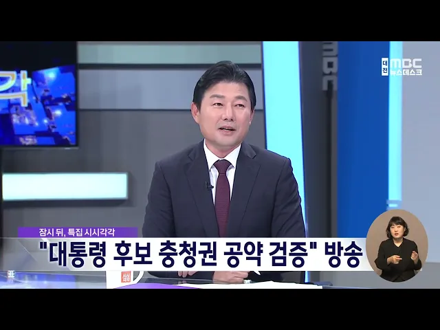 뉴스데스크 뉴스데스크뉴스투데이뉴스데스크 VOD(전체 다시보기)뉴스투데이 VOD(전체 다시보기)유튜브뉴스페이스북 뉴스카카오톡 뉴스인스타그램 뉴스 prev 2025.5.22 - 목요일 next "장난으로도 안 돼" 선거벽보 훼손 잇따라 제21대 대통령 선거가 10여 일 앞으로다가온 가운데 후보자의 선거벽보와현수막 훼손 사례가 계속 발생하고 있습니다.대전선거관리위원회는 대전에서만 14건의 선거벽보 훼손 등이 발생해 경찰에 수사를의... 문은선 시시각각 "대통령 후보 충청권 공약 검증" 방송 잠시 뒤 방송되는 대전MBC 시사 토론프로그램특집 '시시각각'에서는 조기 대선을 앞두고대통령 후보들의 충청권 공약을 집중 검증합니다. 이번 토론에서는 더불어민주당과 국민의힘, 개혁신당, 민주노동당... 박선진 대선 D-12..지역 유권자 향한 정당 행보 이어져 제21대 대통령 선거가 12일 남은 가운데 여야 선대위의 표심 잡기도 활발해지고 있습니다.충청권 과학기술인 천여 명의 이재명 후보지지 선언을 받아낸 민주당은 전국대학생위원회가 대전시당에서 연구개... 이승섭 공주서 비탈길 달리던 화물차 7m 아래로 추락해 숨져 오늘 오전 8시 40분쯤 공주시 이인면의한 산길을 달리던 1t 화물차가 7m 아래로떨어져 70대 운전자가 숨졌습니다.경찰은 화물차가 좁은 비탈길에서 핸들을꺾다가 전봇대 등을 들이받고 추락한 것으로보고 ... 이혜현 경찰에 폭력 행사하다 테이저건 맞은 20대..불구속 송치 지난달 경찰에게 폭력을 행사해공무집행방해 혐의를 받는 20대 남성이불구속 상태로 검찰에 넘겨졌습니다.이 남성은 지난달 6일 '시비 거는 사람이있다'는 신고를 받고 출동한 경찰에게욕설을 내뱉고 발을... 이혜현 대전교육청-학비노조, 직종교섭 재개..급식 갈등 해결 주목 대전시교육청이 학교비정규직연대회의와당직실무원을 시작으로 직종교섭을 재개해 급식 파행이 해결될지 주목됩니다.최근 두 달 가까이 진행된 조리원의쟁의행위는 노조와의 직종교섭이 결렬돼발생한 것으... 문은선 김태흠 지사, 환경부에 지천댐 건설 조속 추진 요청 충남도가 청양 지천댐 건설과 관련해 이달 안에 찬반 여론조사에 나서기로 하면서 반대 주민들의 반발이 확산하는 가운데 김태흠 충남지사가 환경부에 조속한 추진을 요청했습니다.김태흠 충남지사는 김완... 최기웅 협치로 풀어낸 숙원 사업.."주민 위해 맞손"/데스크 ◀ 앵 커 ▶대전 신탄진과 세종 조치원 주민들은인천공항을 오가는 시외버스를 타기 위해멀리 돌아가야 하는 불편을 겪어왔습니다.비슷한 고민을 한 두 지자체가 머리를 맞대길게는 10년 가까이 해묵은 숙제... 이승섭 안전사고 부담 때문에.."현장학습 안 가요"/데스크 ◀ 앵 커 ▶요즘 학교마다 현장체험학습 많이 갈시기인데 올해는 체험학습을 가지 않거나축소한 학교가 많습니다.체험학습을 갔던 초등학생이 버스에 치여 숨진 사건의 책임이 교사에게 있다는 판결이 영향... 문은선 '비트코인' 채굴로 평생 수익?..고령층 피해 우려/데스크 ◀ 앵 커 ▶오늘은 저희 기자가 잠입 취재한 단독보도로 시작합니다."비트코인 채굴 사업에 투자하면매일 1% 수익을 지급하겠다."지난해 투자 사기로 경찰에 붙잡힌 일당이피해자들을 현혹하기 위해 내세운 ... 윤소영 황새 복원 사업 10년..‘희망의 날갯짓’/데스크 ◀ 앵 커 ▶예산군이 멸종위기에 처한 천연기념물 황새 야생 복원 사업을 시작한 지 올해로 10년을 맞았는데요.자연으로 돌아간 황새들이 전국을 넘어 동북아시아까지 서식지를 넓히는 등 멸종 위기의 불씨... 최기웅
