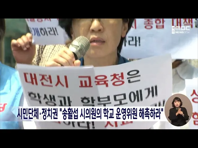 뉴스데스크 뉴스데스크뉴스투데이뉴스데스크 VOD(전체 다시보기)뉴스투데이 VOD(전체 다시보기)유튜브뉴스페이스북 뉴스카카오톡 뉴스인스타그램 뉴스 prev 2025.5.29 - 목요일 next 천안 양계장, 아산 자동차 부품공장 화재 오늘 오후 4시 40분쯤 천안시 성남면의 한 비어있는 양계장에서 불이 나 양계장 7동을 모두 태우고 약 1시간 20분 만에 꺼졌습니다.앞서 오늘 새벽 4시 10분쯤 아산시 둔포면의 한 자동차 부품 공장에서는... 조형찬 검찰, '출소 9달 만에 지인 살해' 박찬성에 무기징역 구형 교도소에서 출소한 지 아홉 달 만에 지인을 흉기로 살해한 혐의로 기소된 박찬성에게 검찰이 무기징역을 구형했습니다. 검찰은 피고인이 지난 2004년 지인을 살해해 징역 15년형을 살고 2022년에도 지인에... 김광연 '공무원 입찰 비리' 논산시 공무원도 연루 입찰 계약 과정에서 뇌물을 주고받은 혐의로 검찰에 송치된 지역의 공무원들 가운데 논산시 공무원도 연루된 것으로 드러났습니다. 경찰은 지난 22일, 뇌물 수수와 공여 혐의로 공무원 10명을 불구속 상태... 이승섭 시시각각 "충청 민심은 어디로?" 방송 잠시 뒤 방송되는 대전MBC 시사 토론프로그램 특집 '시시각각'에서는 막바지에 접어든 조기 대선을 앞두고 충청 지역 표심과 차기 정부의 당면 과제를 집중 검증합니다. 이번 토론에서는 더불어민주당과 ... 박선진 "실효성이 관건" 교사 자살, 이대로 괜찮은가/데스크 ◀ 앵 커 ▶ 최근 제주의 한 중학교에서 숨진 교사도 생전에 과도한 민원에 시달렸던 것으로 알려졌죠, 2년 전 서울 서이초, 대전 용산초 교사 사망사건 이후 교권보호 대책이 쏟아졌지만 정작 학교 현장에... 문은선 모텔 화재로 21명 사상⋯"스프링클러 없었다"/데스크 ◀ 앵 커 ▶ 서산의 한 모텔에서 불이 나 1명이 숨지고, 20명이 다쳤는데요. 초기 진화에 필요한 스프링클러 같은 기본적인 안전시설이 갖춰지지 않아, 피해가 더 커졌다는 지적이 나오고 있습니다. 윤소영 ... 윤소영 대전 시민단체·정치권 "송활섭 시의원 학교 운영위원 위촉 취소하라" 대전 지역 시민단체와 각 정당이 오늘, 대전시교육청 앞에서 기자회견을 열고 성폭력 혐의를 받는 송활섭 대전시의원을 초등학교 운영위원으로 위촉한 대전시교육청을 규탄했습니다. 이들은 성폭력 혐의로... 이승섭 '성폭력성 발언' 세종서 이준석 후보 사퇴 촉구 잇따라 지난 27일 대선 후보 TV토론회에서 여성에 대한 성폭력성 발언을 한 개혁신당 이준석 후보에 대해 세종 여성단체와 민주당 여성 세종시의원들, 권영국 대선 후보 대전시 선거대책위원회 등에서 사퇴 촉구... 조형찬 사전투표 첫날, 각계각층에 호소/데스크 ◀ 앵 커 ▶ 제21대 대통령선거 사전투표 첫날, 각 정당들은 지지세 결집과 함께 지도부가 총출동해 선거 판세를 좌우했던 충청 표심 잡기 행보에 집중하고 있습니다. 민주당은 강금실 총괄선대위원장이, 국... 이교선 이재명 "금강 보 다시 해체" 공약에 국민의힘 "실정 반복" 민주당 이재명 대선 후보가 금강 등 4대강 '재 자연화'를 약속하자 국민의힘이 강하게 비판하고 나섰습니다. 이재명 후보는 최근 발표한 공약집에서 윤석열 정부에서 취소한 세종보 등 금강과 영산강 보 ... 김윤미 대전, 충남선관위, '무효투표' 유도·불법 선거운동 당원 등 고발 대전시선거관리위원회가 제21대 대선의 사전투표를 앞두고, 잘못된 기표 방법을 유포해 투표가 무효 처리되도록 유도한 시민을 적발해 경찰에 수사를 의뢰했습니다. 해당 시민은 자신의 SNS에 사전투표에... 조형찬 사전투표율 역대 최고..투표 열기 후끈/데스크 ◀ 앵 커 ▶ 오늘 사전투표 하셨는지요? 제21대 대통령 선거의 사전투표가 내일까지 이틀 동안 치러지는데요.비상계엄부터 윤석열 전 대통령의 파면으로 치러지는 6.3 조기대선. 유권자의 뜨거운 관심을 반... 이승섭