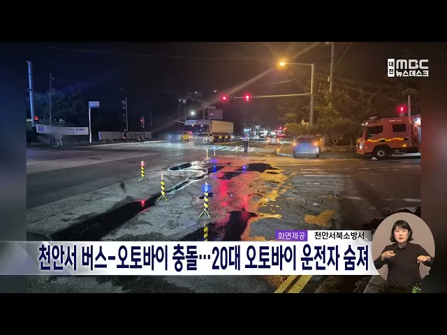 뉴스데스크 뉴스데스크뉴스투데이뉴스데스크 VOD(전체 다시보기)뉴스투데이 VOD(전체 다시보기)유튜브뉴스페이스북 뉴스카카오톡 뉴스인스타그램 뉴스 prev 2025.6.5 - 목요일 next 천안서 버스-오토바이 충돌...20대 오토바이 운전자 숨져 어제 저녁 8시 40분쯤,천안시 성거읍의 한 교차로에서오토바이와 준중형 버스가 충돌했습니다.이 사고로 20대 오토바이 운전자가심정지 상태로 병원에 옮겨졌지만 숨졌습니다.경찰은 50대 버스 운전기사가... 윤소영 온라인에 고 김하늘 양 관련 명예훼손 글 남긴 5명 검거 대전 서구의 한 초등학교에서 교사에게 살해당한 고 김하늘 양과 가족을 향한명예훼손성 글을 작성한 누리꾼 5명이검거됐습니다.대전경찰청 사이버수사대는 지난 2월 21일부터 석 달여 동안 수사를 벌여 ... 김광연 세종교육연대 "극우세력 교육개입 대책 마련하라" 극우단체인 리박스쿨이 일부 초등학교에늘봄 강사를 공급해 논란이 된 가운데지역 교육 단체들이 극우세력의 교육 개입에대한 대책 마련을 촉구하고 나섰습니다.세종교육연대는 시의회 앞에서 기자회견을 ... 문은선 카이스트 실험실서 불..20대 여성 화상·30여 명 대피 어젯밤 9시 50분쯤 대전시 구성동카이스트 생명화학공학동 5층 실험실에서폭발에 이은 화재가 발생해 20대 여성이 얼굴과 손 등에 화상을 입고병원으로 옮겨졌습니다.또 실험실에 함께 있던 4명이 연기를 ... 김광연 대전 환경단체, '무리한 개발로 환경 훼손' 이장우 대전시장 규탄 대전 지역 환경단체와 시민단체가오늘 환경의 날을 맞아 집회를 열고이장우 대전시장이 무리한 개발로 환경을 훼손하고 있다고 규탄했습니다.이들은 이장우 시장이 주민 의견을 수렴하지 않은 채3대 하천... 이승섭 대전·충남 행정통합 특별법 8월 제출..민주당 "회의적" 대선이 끝나면서 대전과 충남의 행정통합을위한 절차가 본격적으로 시작됩니다.대전충남 행정통합 민관협의체는 다음 주부터 대전 5개 자치구와 충남 15개 시군을 돌며 주민 설명회를 열고, 다음 달 특별 ... 이승섭 이재명 "해수부 부산 이전 속도"..최민호 "신중히 결정해야" 이재명 대통령이 오늘 국무회의에서세종시에 있는 해양수산부 부산 이전에 대해 속도전을 주문한 것과 관련해최민호 세종시장은 신중한 결정을 다시 한번강조했습니다.최 시장은 정부 부처 이전은 대통령... 문은선 센서 없고 덮개 열려..안전장치 태부족/데스크 ◀ 앵 커 ▶태안화력발전소에서 홀로 작업을 하다 숨진 고 김충현 씨 사건과 관련해 2인 1조 근무 원칙이 지켜지지 않았고,보호 장치가 미흡했다는 지적이 나옵니다.또, 작업 전 안전 수칙을 확인하는 회의 ... 김성국 "또다시 기억할 이름"..故 김충현 씨 추모제 열려/데스크 ◀ 앵 커 ▶태안화력발전소에서 숨진 노동자고 김충현 씨를 기리는 추모문화제가태안에서 열렸습니다.노동자들과 시민들은 고인의 죽음을 애도하며위험을 외주화하지 않는 사회를 만들자고한목소리를 냈습니... 이혜현 충청의 선택 이재명, 새 정부에 거는 기대와 과제/데스크 ◀ 앵 커 ▶제21대 대선에서 충청의 선택은 이재명 대통령이었습니다.충청 민심이 이재명에게 향한 이유는 무엇이고,또 이러한 충청의 지지에 화답하기 위해 이 대통령이 시급히 해결해야 할 지역 현안은 무... 박선진 대선 끝! 이제는 6.3 지방선거/데스크 ◀ 앵 커 ▶21대 대통령선거가 끝나자마자정치권은 꼭 1년 앞으로 다가온내년 지방선거 모드로 전환합니다.이번 대선에서 확인한 민심 파악과당 쇄신, 선거전략 수립 등을 하려면시간이 많지 않습니다.특히 ... 문은선