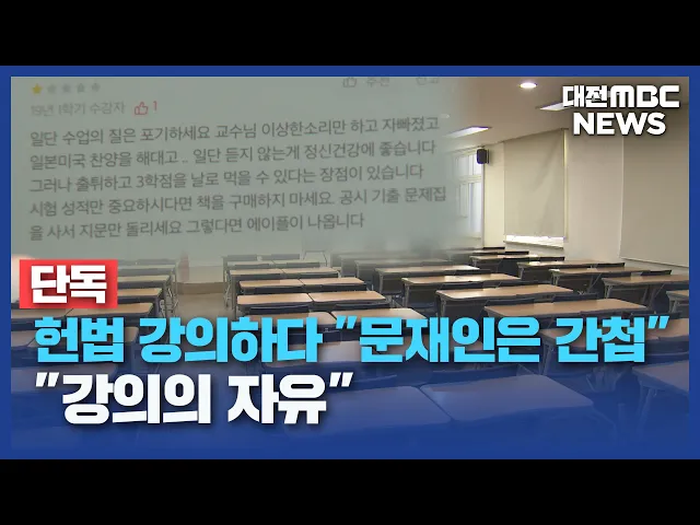 뉴스데스크 뉴스데스크뉴스투데이뉴스데스크 VOD(전체 다시보기)뉴스투데이 VOD(전체 다시보기)유튜브뉴스페이스북 뉴스카카오톡 뉴스인스타그램 뉴스 prev 2025.6.23 - 월요일 next 부여 농가서 등유 50ℓ 저수지로 유출..방재 작업 진행 어제 오후 1시 40분쯤 부여군 옥산면의 한 화훼농가 비닐하우스에서 난방용 등유 50ℓ가 유출돼 인근 옥산저수지로 흘러들었습니다. 부여군과 한국농어촌공사 등은 흡착포와 오일펜스를 설치해 방재작업에 ... 김성국 서산 강도살인 '김명현' 동료 돈 천만 원 가로채 실형 추가 서산에서 처음 본 남성을 살해한 뒤 현금 12만 원을 훔쳐 달아나 징역 30년이 확정된 김명현 씨가 범행 당일 직장 동료 휴대전화를 사용해 천여만 원을 가로챈 혐의로 실형이 추가됐습니다. 대전지법 형사... 김성국 국립한밭대, 개교 100주년 기념사업추진위 출범 국립한밭대가 오는 2027년 개교 100주년을 앞두고 교내에서 기념사업추진위원회를 출범하고 기념사업의 성공적인 추진을 다짐했습니다. 위원회는 기념 조형물 건립, 100주년 기념행사 개최, 100년 사 편찬... 문은선 대전 서구의회, '공무원 비리 의혹' 진상 규명 특별위원회 구성 대전 서구의회가 최근 서구 직원과 민간업자 등이 연루된 입찰 계약 비리 사건과 관련해 진상 규명 특별위원회를 꾸렸습니다. 특별위원회는 더불어민주당 소속인 구의원 5명으로 구성돼 다음 달 25일까지 ... 이승섭 대전지검, '전세사기 재판 관련' 새마을금고 압수수색 검찰이 LH와 전세 계약을 맺는 과정에서 선순위 보증금을 속여 100억 원대 전세금을 가로챈 사기 사건과 관련해 새마을금고 등을 압수수색했습니다. 대전지검은 지난 19일, 피고인들에 대한 재판 과정에서... 김성국 한화 김서현 최다 득표로 올스타 선정⋯한화 4명 포함 프로야구 한화이글스의 마무리 투수 김서현이 올 시즌 올스타 투표에서 최다 득표로 베스트12에 선정됐습니다. 김서현은 역대 팬 투표에서 가장 많은 178만여 표를 얻었고, 선수단 투표를 포함한 총점에서... 이승섭 코디 폰세 '10승 선점'⋯한화 1위 지켜/데스크 ◀ 앵 커 ▶ 프로야구 한화이글스의 든든한 에이스 코디 폰세가, 한화의 새 역사를 썼습니다. 한화 역대 최초로 개막 후 선발 10연승을 달성하며, 팀의 1위 수성에 역할을 톡톡히 했는데요. 새롭게 대체 외... 검찰, '정치자금법 위반 혐의' 이동한 원장에 벌금 3백만 원 구형 검찰이 지난해 4월에 치러진 대전 중구청장 재선거에서 정치자금법을 위반한 혐의로 재판에 넘겨진 이동한 대전과학산업진흥원장에게 벌금 3백만 원을 구형했습니다. 이동한 원장은 캠프 관계자로부터 정... 이승섭 한국연구재단서 개인정보 '12만 건' 유출⋯경찰 수사 한국연구재단이 운영하는 '온라인 논문 투고 시스템'에서 해킹 공격으로 개인정보가 유출돼 경찰이 수사에 나섰습니다. 대전경찰청 사이버범죄수사대는 지난 16일 한국연구재단으로부터 '12만 건의 개인정... 김성국 "곳곳 갈라지고 또 흔들" 그래도 수업 괜찮다?/데스크 ◀ 앵 커 ▶ 지난주 대전의 한 특수학교에서 갑자기 교실이 흔들리는 현상이 발생해 학생 등 400여 명이 긴급 대피했었는데요. 학교 내부 영상을 저희가 단독으로 입수해 확인해보니, 벽과 바닥 곳곳이 갈라... 김윤미 헌법 강의 중 "문재인 자체가 간첩"/데스크 ◀ 앵 커 ▶ 지역 국립대 수업 도중 교수가 문재인 전 대통령을 간첩이라고 하는 등 편향된 발언을 일삼았다는 주장이 학생들로부터 제기돼 논란입니다. 해당 교수는 "여야 정치권 비판이지 특정 정파 지지 ... 문은선 국민의힘 충청권 국회의원 "해수부 이전 철회해야" 국민의힘이 이재명 대통령의 대선 공약으로 추진되는 해양수산부 부산 이전에 대해 거센 공세를 이어갔습니다. 국민의힘 소속 성일종, 강승규, 장동혁 등 충청권 국회의원과 당협위원장은 국회에서 기자회... 김윤미 세종시의회 "해수부 이전 우려⋯행정수도 완성해야" 해양수산부 부산 이전 반대 결의안 채택을 보류하며 비판을 받았던 세종시의회가 뒤늦게 우려의 목소리를 냈습니다. 세종시의회는 행정수도 완성을 위한 실행계획 발표촉구 결의안을 만장일치로 채택하면... 문은선 농원 난동 신도들, 기자·친부모 폭행까지/데스크 ◀ 앵 커 ▶ 최근 아산의 한 농원에 무단으로 침입해 폭행과 폭언을 일삼은 종교단체 신도들의 난동을 대전MBC가 연속으로 전해드렸는데요.그런데 이 신도들 가운데 일부는 수년 전, 자신들이 속한 종교단체... 김성국