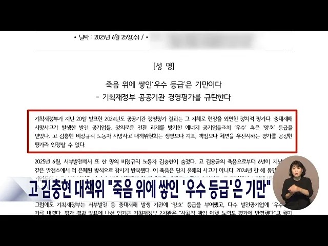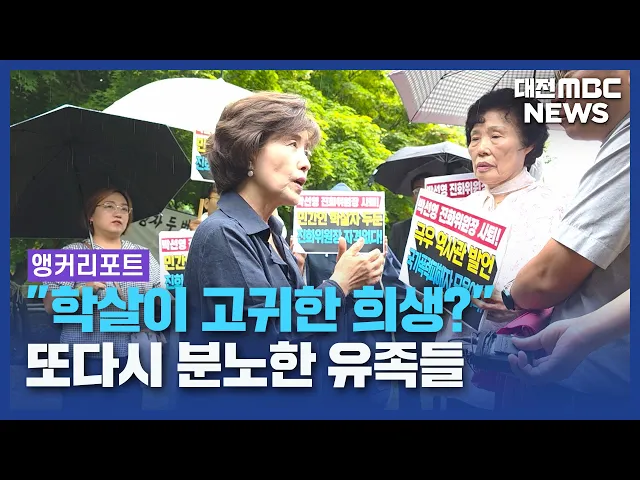뉴스데스크 뉴스데스크뉴스투데이뉴스데스크 VOD(전체 다시보기)뉴스투데이 VOD(전체 다시보기)유튜브뉴스페이스북 뉴스카카오톡 뉴스인스타그램 뉴스 prev 2025.6.25 - 수요일 next 세종 빛축제 시민추진단 "예산 삭감은 횡포..올해도 자체 개최" 세종시의회가 지난해에 이어 올해도 빛축제 예산 전액을 삭감하자, 시민추진단이 다수당인 민주당의 정치적 횡포라고 강하게 반발하며 자체 추진을 예고했습니다. 이들은 올해도 시민 모금 등 민간 주도로... 김윤미 대전 도로서 화물차-경찰버스 등 4대 잇따라 추돌 오늘 낮 12시 40분쯤 대전시 대성동 대별삼거리 인근 도로에서 25t 화물차가 경찰 기동대 버스를 들이받는 등 차량 넉 대가 잇따라 추돌했습니다. 이 사고로 화물차 운전자와 경찰 등 6명이 경상을 입어 ... 김성국 '4명 사상' 세종 아파트 주차장 사고⋯"음주 아냐" 지난 19일 세종의 아파트 지하주차장에서 승용차가 벽에 돌진해 4명의 사상자가 발생한 사고와 관련해, 운전자인 70대 남성이 음주 운전이 아니었던 것으로 조사됐습니다. 세종남부경찰서는 국과수에 운전... 김성국 대전 신축 아파트 '콘크리트 강도 미달'⋯시설 철거 중 대전 서구청이 "관저동에서 신축 중인 아파트의 지하 주차장 기둥 등 너댓 곳에서 콘크리트 압축강도가 기준 미달로 나타나 철거가 진행 중"이라고 밝혔습니다. 안전성에 문제가 있는 것으로 판단한 대전 ... 김지훈 김용태 "해수부 졸속 이전 문제 제기하겠다" 충청권을 찾아 시도지사와 면담을 가진 국민의힘 김용태 비상대책위원장도 "해수부 졸속 이전 우려가 있어 강하게 문제를 제기하겠다"고 밝힌 가운데 국민의힘 대전시당이 대통령이 이전 지시를 철회해야 ... 김윤미 김민석 "행정수도, 개헌 또는 특별법 처리 공감대 있어야" 김민석 국무총리 후보자가 "행정수도 완성을 위해서는 최소한 개헌에 준하거나 특별법으로 처리해도 좋다는 사회적 공감대가 필요하다"고 밝혔습니다. 김 후보자는 국회 인사청문회에서 대통령 공약에 언... 김윤미 미묘한 신경전 속 "대전 발전에 여야 없다"/데스크 ◀ 앵 커 ▶ 이장우 대전시장과 지역 국회의원들이 새 정부 출범 이후 처음으로 지역 현안을 논의하기 위해 모였습니다. 대전시의 발전에는 여야가 없다며, 한 목소리를 냈지만, 일부 현안에는 이견을 드러... 이승섭 대전교육청 "흔들림 발생 특수학교 긴급 안전대책 추진" 지난 17일부터 대전의 특수학교에 수차례 교실 흔들림이 발생하고 내부 벽면 등에서 균열과 누수가 이어지고 있다는 대전MBC 보도와 관련해 대전교육청이 긴급 안전대책을 추진합니다. 대전교육청은 긴급 ... 김윤미 김병기 "채상병 문제 꼭 밝혀야…은폐 세력 있어" 더불어민주당 김병기 당 대표 직무대행 겸 원내대표가 "해병대 고 채수근 상병 순직 사건 외압 의혹을 수사하는 '채상병 특검'과 관련해 문제를 정확히 밝혀야 한다"고 강조했습니다. 김 직무대행은 대전... 김윤미 "학살이 고귀한 희생?"⋯또다시 분노한 유족들/데스크 ◀ 앵 커 ▶ 6.25전쟁 75주년인 오늘 박선영 진실화해를 위한 과거사정리위원회 위원장이 6.25 당시 군경에 의한 대규모 학살이 있었던 대전 골령골을 방문했다, 유족들의 거센 항의를 받았습니다. 박 위원... 박선진 정부 주관 6·25 전쟁 75주년 기념식 대전에서 첫 개최 정부가 주관하는 6·25 전쟁 75주년 기념식이 오늘 오전, 대전컨벤션센터에서 열렸습니다. 이번 행사에는 우원식 국회의장과 강정애 국가보훈부 장관, 6·25 전쟁 참전 유공자 등 천 3백여 명이 참석해 비정... 이승섭 반JMS 김도형 교수 "죗값 치르도록 용기 내달라"/데스크 ◀ 앵 커 ▶ 최근 아산의 한 종교단체가 폭행과 불법 행위, 이혼 강요까지 저지른 사실을 연속으로 전해드리고 있는데요. 이처럼 종교를 빙자한 범죄는 끊이지 않는 가운데, 관련 피해를 막기 위해서는 어떤... 김성국 김충현 대책위, "죽음 위에 쌓인 ‘우수 등급’은 기만" 실제 산업재해에 비해 태안화력 하청업체 한전KPS의 경영평가가 부풀려졌다는 대전MBC 보도와 관련해 고 김충현 대책위원회가 성명을 내고 "죽음 위에 쌓인 '우수 등급'은 기만"이라고 비판했습니다. 대책... 조형찬 '문재인 간첩' 발언 교수 "학생 지적에 반성..비상계엄 옹호한 적 없어" 학부생을 대상으로 한 헌법 강의에서 문재인 전 대통령을 간첩이라고 하는 등 부적절한 발언으로 논란이 된 지역 국립대 교수가 학생들의 강의 평가 지적에 대해 "미리 알았더라면 조심했을 수도 있는데 ... 문은선 "나 경찰이야, 구속되고 싶어?"⋯시민 협박한 현직 경찰/데스크 ◀ 앵 커 ▶ 한 40대 남성이 대전의 한 숙박업소에서 난동을 부린다는 신고에 경찰이 출동했는데, 난동을 부린 남성, 알고보니 서울에서 근무 중인 현직 경찰이었습니다.오래 전부터 우울증 등이 있는 것으... 이혜현