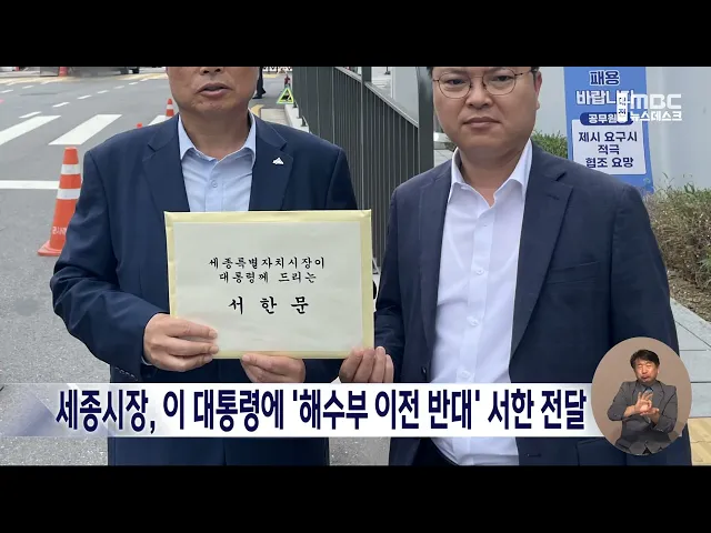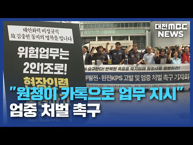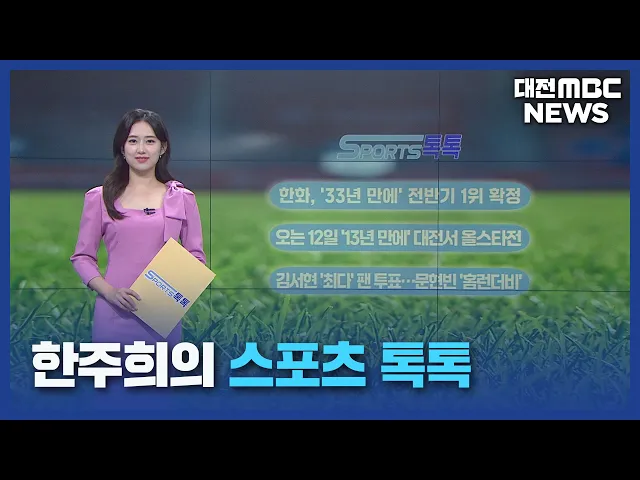 뉴스데스크 뉴스데스크뉴스투데이뉴스데스크 VOD(전체 다시보기)뉴스투데이 VOD(전체 다시보기)유튜브뉴스페이스북 뉴스카카오톡 뉴스인스타그램 뉴스 prev 2025.7.7 - 월요일 next 대전시, 전국 최초 소상공인 카드 통신비 지원 대전시가 전국 최초로 소상공인을 위한 카드 결제 통신비 지원에 나서기로 하고 다음 달 8일까지 온라인으로 선착순 접수합니다. 이 사업은 카드 결제 단말기 운용을 위한 소상공인의 유‧무선 통신비용을 ... 이교선 금산 낮 최고기온 35.6도...충청권 전역에 폭염특보 발효 대전과 세종, 충남 11개 시군에 폭염 경보가, 그 밖의 지역에 폭염 주의보가 각각 내려진 가운데, 찜통더위가 이어졌습니다. 오늘 낮 최고기온은 금산 35.6도, 대전 35.1도, 아산 34.9도 등을 기록하며 대... 윤소영 한화 50승 선착시 정규시즌 우승 확률 71% 프로야구 전반기 1위를 확정한 한화 이글스가 우승의 척도인 50승 선착에 도전합니다. 단독 선두를 달리는 한화는 내일부터 홈에서 4위 기아와 전반기 마지막 3연전에서 1승만 올리면 50승에 가장 먼저 오... 이교선 한화, 33년 만에 전반기 1위 확정/데스크 ◀ 앵 커 ▶ 스포츠톡톡 시간입니다. 한화이글스가 지난 주말 3연전 키움에게 스윕을 거두며, 33년 만에 전반기 1위를 확정지었습니다. 외국인 선발 와이스는, 아홉수를 털어내고 시즌 10승 고지를 밟았습니... 충청권 교육감 정책협의회⋯'학교 혼란' 고교학점제 정책 제안 올 상반기 충청권 교육감 정책협의회가 세종시에서 열려 교육격차 해소를 위한 하반기 공동사업 등을 협의했습니다. 또 함께 열린 정책세미나에서는 학교 현장의 반발이 거센 고교학점제 안착을 위해 우수... 문은선 '극우·혐오 발언' 국립대 교수 모든 수업 개설 취소 지역 국립대 교수가 수업 중 문재인 전 대통령을 간첩이라고 하는 등 편향된 발언을 했다는 대전MBC 단독 보도 이후 대학 측이 해당 교수의 대학원 수업도 모두 개설을 취소하기로 했습니다. 대학 측은 학... 문은선 '서울대 10개 만들기' "지역이 나서야 실현"/데스크 ◀ 앵 커 ▶ 서울대 10개 만들기는 이재명 정부의 핵심 교육 정책 가운데 하나죠. 이 개념을 가장 먼저 제안한 '서울대 10개 만들기' 책의 저자인 김종영 교수를 만나 정책의 배경과 의미를 들어봤습니다. ... 문은선 "시끄럽게 쿵쿵"⋯층간소음 항의하자 기름 테러/데스크 ◀ 앵 커 ▶ 지난 주말, 대전에서 층간소음 문제로 찾아온 이웃 주민에게 끓는 식용유를 끼얹은 60대 남성이 경찰에 붙잡혔습니다. 해당 남성은 흉기를 들고 주민들에게 위협을 가하기도 했습니다. 윤소영 ... 윤소영 최민호 세종시장, 이 대통령에 '해수부 이전 반대' 서한 전달 최민호 세종시장이 정부의 해양수산부 부산 이전 방침과 관련해 이재명 대통령에게 공개서한을 전달하는 등 반발 수위를 높이고 있습니다. 최 시장은 서한문에서 국정 비효율과 낭비 우려, 행정수도 완성 ... 문은선 박수현 국정기획위 균형성장특위 위원장 위촉 공주부여청양 박수현 국회의원이 대통령 직속 국정기획위원회 산하 균형성장특별위원회 위원장으로 공식 위촉돼, 대통령의 행정수도 완성 공약이 속도를 낼 전망입니다. 박 위원장은 대전MBC와의 통화에서... 김지훈 김민석 국무총리 이번 주 세종서 집무⋯국회의사당 부지도 방문 오늘 취임한 김민석 국무총리가 이번 주 세종과 서울을 오가며 국정 현안을 챙깁니다. 김 총리는 취임식에 앞서 세종시 국립도시건축박물관 건설 현장을 찾아 사업 현황과 폭염 대비 상황 등을 점검했고 ... 문은선 "안전 관리는 원청 의무"⋯서부발전·KPS 책임자 처벌 촉구/데스크 ◀ 앵 커 ▶ 태안화력에서 숨진 하청 노동자 고 김충현 씨가 원청인 한전KPS 관계자와 나눈 메시지를 대전MBC가 단독 입수했습니다. 작업 전 안전 확인을 스스로 요청하고, 상급 기관의 지적 사항까지 전달... 이혜현