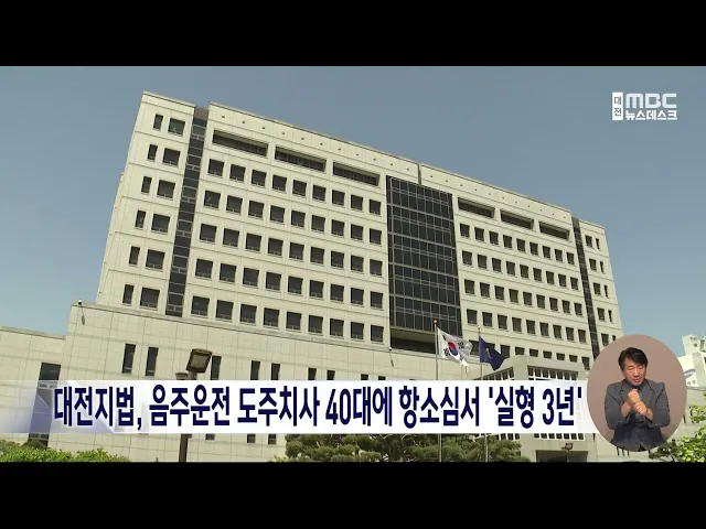 뉴스데스크 뉴스데스크뉴스투데이뉴스데스크 VOD(전체 다시보기)뉴스투데이 VOD(전체 다시보기)유튜브뉴스페이스북 뉴스카카오톡 뉴스인스타그램 뉴스 prev 2025.7.12 - 토요일 next 음주운전 도주치사 40대, 항소심서 실형 3년 선고 음주운전 중 불법 유턴으로 오토바이 운전자를 숨지게 하고 도주한 40대가, 항소심에서 징역 3년의 실형을 선고받았습니다. 대전지법은 특정범죄 가중처벌법 위반 등 혐의로 기소된 43살 A씨에게 1심의 집... 이교선 대전시, ‘길고양이 공공급식소’ 시범 설치 대전시가 시민 불편 해소와 동물권 보호의 양립을 위해, ‘길고양이 공공급식소 시범 설치’에 나섭니다. 시는 유성구 관평천과 유림공원 등 5곳에 급식소를 설치하고, 중성화 사업과 병행해 위생적이고 체... 이교선 익산-평택 고속도로 청양IC 인근 차량 전소로 운전자 숨져 오늘 낮 12시쯤 익산 평택 고속도로 부여방향 청양 나들목 인근에서, 1차선을 주행 중이던 SUV가 중앙분리대를 들이받고 불이 나, 신원이 확인되지 않은 운전자가 숨졌습니다. 경찰은 전기차 화재는 아니... 이교선 최민호 세종시장, 해수부 단식농성장 찾아 “졸속 이전 반대” 최민호 세종시장이, 서울 여의도 국회 앞 해양수산부 노동조합 단식 농성장을 찾아, 해수부의 부산 이전에 반대하는 입장을 밝혔습니다. 최 시장은 지난 9일부터 나흘째 단식중인 윤병철 해수부 노조위원... 이교선 민주당 당대표·최고위원 후보 충청권 '구애'..조국혁신당 '검찰개혁 콘서트' 더불어민주당 당대표 선거에 나선 정청래, 박찬대 후보가, 충청권에서 북 콘서트를 여는 등, 주말을 맞아 여야의 다양한 행사가 열렸습니다. 당대표 후보 기호 1번 정청래 의원은 오늘 충남에서는 핵심당... 이교선 '별들의 잔치'⋯대전서 13년 만의 올스타전/데스크 ◀ 앵 커 ▶ 지난 2012년 이후 13년 만에, 대전에서 'KBO 올스타전'이 열리고 있습니다. 33년 만에 1위로 전반기를 마친, 한화의 새 둥지에서 열리는 만큼, 전국 야구팬들의 열정은 역대급 폭염도 넘어서고 ... 김성국 폭염경보 지속, 아산 35.4도 등 주말 내내 찜통더위 대전·세종·충남에 폭염경보가 내려진 가운데, 찜통더위가 주말내내 이어지고 있습니다. 오늘 낮 최고기온은 아산 35.4도를 최고로 홍성 35.2도, 대전 34.1, 세종 33.1도 등을 기록했습니다. 기상청은 서해... 이교선