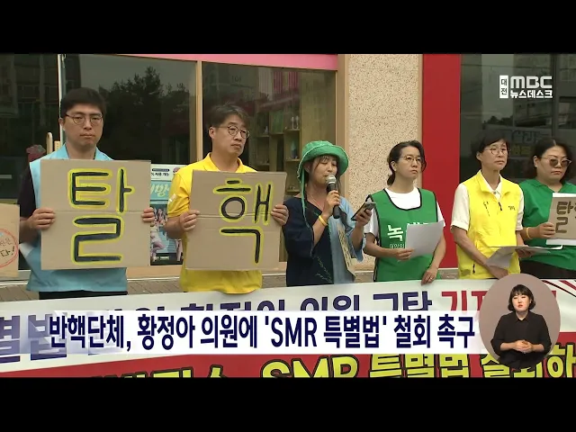 뉴스데스크 뉴스데스크뉴스투데이뉴스데스크 VOD(전체 다시보기)뉴스투데이 VOD(전체 다시보기)유튜브뉴스페이스북 뉴스카카오톡 뉴스인스타그램 뉴스 prev 2025.7.16 - 수요일 next 대전탈핵공동행동, 'SMR 특별법' 발의 철회 촉구 지난달 발의된 소형모듈원자로, SMR 특별법을 둘러싸고 원자력계와 환경단체의 찬반 공방이 이어지고 있습니다.대전탈핵공동행동은 법안을 대표발의한 대전 유성을 황정아 의원 사무실 앞에서 기자회견을 ... 박선진 대전MBC '사랑의 집 고치기' 48호점 논산서 착공 대한전문건설협회 세종시·충남도회와대전MBC가 함께 추진하는 사랑의 집 고치기 48호점 착공식이 오늘 논산시 채운면에서 열렸습니다.지난 2007년 시작된 사랑의 집 고치기를 통해47곳의 보금자리가 새 단... 김윤미 민주당 대전 국회의원, 해수부 이전 찬성 발언에 정치권 갈등 정부의 해양수산부의 부산 이전을 두고 민주당 대전 지역 국회의원들이 잇따라 찬성 의견을 내놓아 정치권에서 갈등을 빚고 있습니다.민주당 장철민 의원은 기자 간담회에서 "해양수산부 이전이 가져올 지... 이승섭 더불어민주당 대표·최고위원 충청권 선거 투표 시작 더불어민주당의 대표와 최고위원을 선출하는선거가 오늘부터 충청권을 시작으로 투표를 시작합니다.민주당은 오늘부터 나흘 동안 권리당원의 온라인과 ARS 투표가 진행되고, 오는 19일 대전컨벤션센터에서... 이승섭 대전 학교 급식 갈등 장기화..노사 교섭 난항 대전지역 학교 급식 갈등이 해결 기미를 보이지 않으면서 2학기에도 일부 파행이 우려됩니다.대전교육청과 전국학교비정규직노조 대전지부는 지난 5월 당직실무원 직종을 시작으로 직종교섭을 재개했지만 ... 문은선 대전 서구, '복지 사각지대' 2천2백여 명 생활환경 등 점검 대전MBC가 단독보도한 생활고 모자 사망 사건과관련해 대전 서구가 복지 사각지대 해소를 위한 점검에 나섭니다.이에 따라 다음 달 14일까지 복지 사각지대 발굴 관리 시스템에 등록된 대전 서구 주민2천2... 김지훈 '민생회복 소비쿠폰' 오는 21일부터 신청·지급 정부가 모든 국민에게 지급하는 '민생회복 소비쿠폰'이 오는 21일부터신청과 지급 절차에 들어갑니다.1차 신청은 오는 21일부터 9월 12일까지로인구 감소 지역인 공주와 부여, 청양 등충남 일부 시군 주민... 이승섭 장철민 "내년 대전시장 출마..'0시 축제' 전면 재검토" 대전 동구를 지역구로 둔 더불어민주당 장철민 의원이 내년 6월 지방선거에서 대전시장 선거에 출마하겠다고 밝혔습니다.장 의원은 지역 기자들과의 간담회에서 "대전에 새롭고 젊은 정치인이 필요하다"며... 이승섭 "통계 조작 지시 없었다" 증언...검찰은 공소장 수정/데스크 ◀ 앵 커 ▶문재인 정부 고위 인사들이 부동산 대책의 효과를 부풀리기 위해집값 등 통계를 조작했다는 의혹을 다투는2차 공판이 대전지법에서 열렸습니다.이 자리에서 직접적인 조작 지시가 없었다는증언이... 윤소영 면장 이어 부면장도 '성추행 혐의'.."군의원은 회유"/데스크 ◀ 앵 커 ▶금산의 한 면사무소 면장이 부하 직원을성추행한 혐의로 직위해제됐다가 한 달 만에복직한 사실을 단독으로 전해드렸는데요.그런데 면장에 이어 부면장까지 같은 직원을 상대로 성범죄를 저질러 ... 김성국 이진숙 "자녀 불법 유학 죄송..논문 표절 사실 아냐"/데스크 ◀ 앵 커 ▶장관 후보자 가운데 가장 많은자격 시비 논란을 빚고 있는이진숙 교육부 장관 후보자에 대한인사 청문회가 있었습니다.논문 표절 의혹과 자녀 불법 유학문제가집중적으로 거론됐는데 이 후보는 ... 문은선 전 지역 호우특보⋯내일까지 최대 200mm 예상/데스크 ◀ 앵 커 ▶전국적인 호우 상황 속에 충청권에도 많은 비가 내리고 있습니다.대전과 세종, 충남 전역에 호우특보가 내려진 가운데 내일까지 최대 200mm 넘는 집중호우가 예보됐는데요.특히, 밤사이 시간당 ... 이혜현
