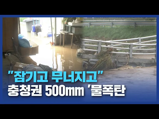 뉴스데스크 뉴스데스크뉴스투데이뉴스데스크 VOD(전체 다시보기)뉴스투데이 VOD(전체 다시보기)유튜브뉴스페이스북 뉴스카카오톡 뉴스인스타그램 뉴스 prev 2025.7.17 - 목요일 next 제빵 특허 출원 연평균 11% 증가..'튀김소보로' 등 특허 식문화 변화로 빵에 대한 수요가 늘면서최근 20년간 제빵 특허 출원이 3천500여 건으로 연평균 11% 증가한 것으로 나타났습니다.특허청은 슬로우 푸드에 대한 관심으로천연 발효종 등 반죽에 미생물이나 ... 문은선 태안화력 고 김충현 대책위 "정부, 협의체 가동해야" 태안화력 고 김충현 씨의 49재를 사흘 앞두고 대책위원회가 사태 해결을 위해 정부가 약속한 협의체를 조속히 가동하라고 촉구했습니다.이들은 용산 대통령실 앞에서 회견을 열고 "고 김충현 유가족은 정... 문은선 '졸속 이전 반대' 해수부 노조 단식 해제.."적극 소통할 것" 전재수 해양수산부 장관 후보자가국회 앞에서 단식농성 중인 국가공무원노조 해수부지부 위원장을 찾아해수부 부산 이전과 관련해 적극적인소통을 약속했고, 노조 측은 단식 9일 만에단식을 끝냈습니다.전... 문은선 무면허 운전 중 사고로 택시기사 숨지게 한 10대 징역 6년 구형 지난 5월 아산에서 무면허로 과속 운전하다 사고를 내 맞은편에서 주행하던 택시 기사를 숨지게 한 10대에게 검찰이 징역 6년을 구형했습니다.검찰은 대전지법 천안지원 형사4단독 심리로 열린 공판에서 "... 김지훈 대전 제지공장서 근로자 추락..하루 만에 숨진 채 발견 대전 대덕구에 있는 제지 공장에서가동 중인 기계 안에서 근로자가 숨진 채 발견돼 경찰이 조사를 벌이고 있습니다.경찰은 어제 자정쯤 남편이 귀가하지않는다는 아내의 신고를 받고 휴대전화 위치추적 등... 문은선 대전MBC 단독 '대전 모자 사망'..이 대통령, 적극 복지 행정 주문 대전MBC가 단독 보도한 '생활고 대전 모자 사망사건'과 관련해 이재명 대통령이 복지 사각지대와 관련해 적극 행정을 주문했습니다.이 대통령은 대통령실에서 주재한수석보좌관회의에서 "이런 비극이 반복... 문은선 "감당이 안 돼요"…시청자 제보로 본 극한 호우/데스크 ◀ 앵 커 ▶200년 만의 역대급 극한 호우에 주민들은 할 말을 잃었습니다.시청자들이 보내주신 제보 영상으로피해 현장을 생생하게 재구성했습니다.이교선 기자입니다.◀ 리포트 ▶오늘 새벽 4시, 서산시 온석... 이교선 '도로 마비·열차 중단'..사상 최악 교통대란/데스크 ◀ 앵 커 ▶시간당 100mm가 넘는 기록적인 폭우가 쏟아진 충남 홍성과 예산, 서산 등에서는도로가 물에 잠기고, 길이 끊기는 최악의 교통대란도 빚어졌습니다. 주변 시군으로 나가는 도로는 대부분 마비됐고... 최기웅 물바다된 충남..금강 '대홍수' 위기?/데스크 ◀ 앵 커 ▶200년에 한 번 있을 법한 극한 호우에 충남의 주요 하천들이 잇따라 범람하면서도시와 농촌을 집어삼켰습니다.지방 하천의 경우 제방 높이가 50년에서 80년 빈도에 맞춰 설계돼200년 빈도의 기... 이혜현 충청권 비 상황은? 이 시각 대전/데스크 ◀ 앵 커 ▶이처럼 어제부터 장대비가 내려 전국에서도 가장 큰 피해를 입은 충청권 현장을 연결해 보겠습니다.모레까지 다시 최대 300mm가 넘는 많은 비가 예보된 상태인데요.대전 갑천변에 나가 있는 취재... 김광연 "잠기고 무너지고"..충청권에 '500mm 물폭탄'/데스크 ◀ 앵 커 ▶충청권에는 밤사이 500mm, 말 그대로 물폭탄이 쏟아졌습니다.강수량으로 따지면 200년 만에 한 번 있을 정도의 극한호우였는데요.하천이 넘치고, 차량과 주택이 물에 잠기면서 3명이 목숨을 잃었... 윤소영