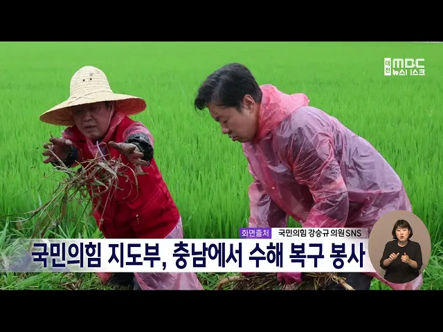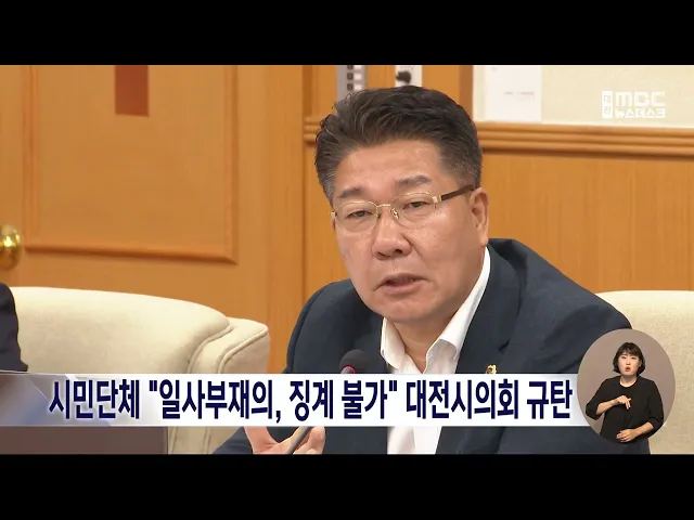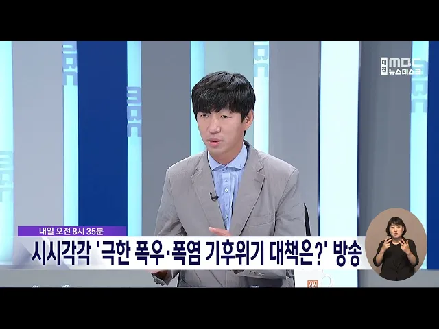 뉴스데스크 뉴스데스크뉴스투데이뉴스데스크 VOD(전체 다시보기)뉴스투데이 VOD(전체 다시보기)유튜브뉴스페이스북 뉴스카카오톡 뉴스인스타그램 뉴스 prev 2025.7.19 - 토요일 next 시민단체 "일사부재의, 징계 불가" 대전시의회 규탄 대전시 의회 윤리심사 자문위원회가여성 직원을 성추행한 혐의로 기소돼1심에서 유죄 판결을 받은 송활섭 대전시의원의 징계가타당하지 않다고 판단하자시민단체가 거세게 반발하고 있습니다.대전 지역 시... 이승섭 당진 공장에서 화학물질 누출..1명 중상 어젯밤 8시 50분쯤 당진시 석문면의한 하수 처리 약품 생산 공장에서화학물질이 새어 나와 30대 노동자가 중상을 입었습니다.경찰과 소방당국은 염산과 수산화알루미늄을배관으로 옮기는 과정에서 사고가 ... 이승섭 한화이글스, 리베라토와 정식 계약 체결 프로야구 한화이글스가 대체 외국인 선수로 영입한 외야수 루이스 리베라토와총액 20만 5천 달러에 정식 계약을 체결했습니다.리베라토는 지난달, 에스테반 플로리얼의부상으로 한화에 합류해 4할에 가까... 이승섭 고 채수근 상병 순직 2주기 추도식 열려 2년 전, 집중호우 당시 실종자를 수색하다가급류에 휩쓸려 숨진 고 채수근 상병의 순직 2주기 추도식이 오늘, 국립대전현충원에서열렸습니다.추도식을 주관한 해병대예비역연대는 특검 수사로 채 상병의 ... 이승섭 이진숙 방송통신위원장, 2주 만에 경찰 재소환 조사 대전MBC 사장 시절, 법인카드를 사적으로 사용했다는 의혹을 받는이진숙 방송통신위원장이 오늘,경찰에 다시 출석해 조사를 받았습니다.대전 유성경찰서는 오늘 오후, 이진숙 위원장을 피의자 신분으로 2... 이승섭 더불어민주당 충청권 경선에서 정청래 후보 승리 더불어민주당의 새로운 당 대표를 선출하기 위한 첫 번째 순회 경선이 열린 충청권에서정청래 후보가 승리했습니다.정청래 후보는 오늘까지 나흘 동안 진행된 충청권 권리당원 투표에서 62.77%를 득표해37... 이승섭 시시각각 '극한 폭우·폭염 기후위기 대책은?' 방송 내일(20) 오전 8시 35분 방송되는 대전MBC 시사 토론 프로그램 '시시각각'에서는최근 잦아진 극한 폭우와 폭염 등기후 변화의 원인과 대책을 짚어봅니다. 토론에서는 동아시아와 북미 유럽 등에 닥친 폭우... 고병권 밤사이 최대 80mm 비..내일 흐리고 무더위 대전과 세종, 충남 지역은호우특보가 모두 해제됐지만, 오늘 밤에도 비가 오는 곳이 있겠습니다.밤사이 충남 서해안 지역에는 20에서 80mm,그 밖에 대전과 세종을 비롯한 충남 내륙에는10에서 60mm의 비가... 이승섭 국민의힘 지도부, 충남에서 수해 복구 봉사 국민의힘 지도부가 충남 지역 수해 현장을 찾아피해 복구를 위한 봉사 활동을 펼쳤습니다.송언석 국민의힘 비상대책위원장 겸 원내대표를비롯한 국민의힘 지도부와 자원봉사자 등백여 명은 예산과 홍성 지... 이승섭 "겨우 복구 시작했는데"..수재민 '망연자실'/데스크 ◀ 앵 커 ▶수백mm의 물폭탄에 수해를 입은 충남 지역은 오늘도 내린 비에 복구에 차질을 빚었습니다.2년 연속 물난리를 겪은주민과 상인들은 망연자실한 상황입니다.윤소영 기자의 보도입니다. ◀ 리포트 ▶... 윤소영