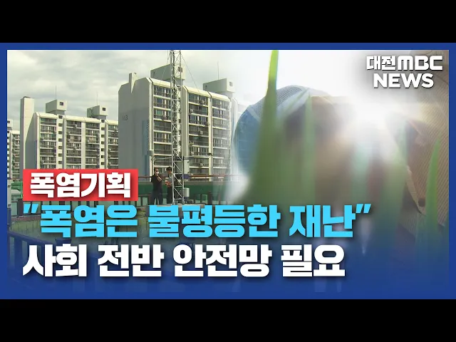 뉴스데스크 뉴스데스크뉴스투데이뉴스데스크 VOD(전체 다시보기)뉴스투데이 VOD(전체 다시보기)유튜브뉴스페이스북 뉴스카카오톡 뉴스인스타그램 뉴스 prev 2025.7.31 - 목요일 next 장동혁 "당 대표 되면 윤 전 대통령 면회"…김소연도 최고위원 출사표 국민의힘 당 대표 선거에 나선 장동혁 의원이 대전시청 기자실을 찾아 "대표가 되면 윤석열 전 대통령 면회를 하겠다"고말했습니다.장 의원은 앞서 전한길 씨 등 보수 성향 유튜버들의 토론회에 참석해"저... 이교선 대전교육연대 "졸속 추진 대전충남 행정통합 반대" 충남교육청에 이어 대전지역 교육단체들도대전시와 충남도가 추진 중인 행정통합에반대 입장을 냈습니다.대전교육연대는 공동 성명에서 "행정통합 특별법 내 다수의 특례 조항이 현행 교육 관련 법과 충돌... 문은선 민주당 "대전시장, 병원 파업·야구장 사고 책임 회피" 대전공공어린이재활병원 노사가 기본급 3% 인상에 합의하며 엿새만에 파업을 중단한 가운데 민주당 대전시당이 "병원 파업 사태와 새 야구장 안전 사고 대응과 관련해 이장우 대전시장의 책임 떠넘기기가... 이교선 대청호 문의수역 조류경보 '관심' 단계 발령 금강유역환경청이 오늘 오후 3시를 기해대청호 문의 수역에 조류경보 '관심' 단계를 발령했습니다.최근 집중호우에 댐으로 오염물질이 유입된 뒤폭염이 이어지면서 유해 남조류가 급증했기 때문이라고 금... 김지훈 일주일째 폭염경보..충남 온열질환 사망자 4명 집계 지역 전역에 일주일째 폭염 경보가 이어진 가운데 오늘도 36도 안팎의 불볕더위가기승을 부렸습니다.또 나흘 전 당진에서 온열질환으로 쓰러졌던40대가 숨져 최근 폭염으로 인한 충남의 온열질환 사망자... 윤소영 대전시, '생활고 모자 사망' 예방 위해 복지 체계 재정비 대전MBC가 단독 보도한 '대전 생활고 모자 사망 사건'과 관련해 대전시가 복지 위기 발굴 체계를 재정비합니다.이에 따라 일선 행정복지센터의 초기 상담을 강화해 고위험군을 빠르게 찾아내고, 공인중개... 김지훈 "시간이 약은 옛말"..PTSD 치료 물질 개발/데스크 ◀ 앵 커 ▶충격을 겪은 뒤 심각한 불안과 고통을 호소하는 외상후스트레스장애, PTSD는 그 경험이 잘 잊히지 않아 치료가 쉽지 않은데요.국내 연구진이 발병 이유를 밝힌 데 이어 치료 물질 개발에도 성공... 박선진 "폭염은 불평등한 재난"..사회 전반 안전망 필요/데스크 ◀ 앵 커 ▶기후 위기 속 '폭염 불평등' 실태를 짚어보는 기획 보도, 마지막 순서입니다.도심의 폭염 격차, 폭염에 무방비인 농어촌을 통해 이제 폭염이 자연재난을 넘어서 불평등한 사회 재난이 되고 있는 ... 김성국 미국 관세에 '조마조마'..충청권 "한숨 돌렸다"/데스크 ◀ 앵 커 ▶한미 관세협상이 타결되면서 제조업과 수출의 비중이 큰 충청권은일단 한숨 돌렸다는 반응입니다.특히 쌀과 소고기를 추가 개방하지 않기로 해 지역 농민들의 부담도 덜게 됐습니다.문은선 기자... 박선진 스토킹 접근금지 3천여 명 점검⋯"전자발찌 채운다"/데스크 ◀ 앵 커 ▶최근 교제 살인이 잇따르자 경찰청장 직무대행이 급히 대전을 찾아 관련 대책을 발표했습니다.스토킹 등으로 접근금지 조치된 대상자 3천여 명을 모두 점검해, 재범 위험이 높은 경우 전자발찌를... 김광연