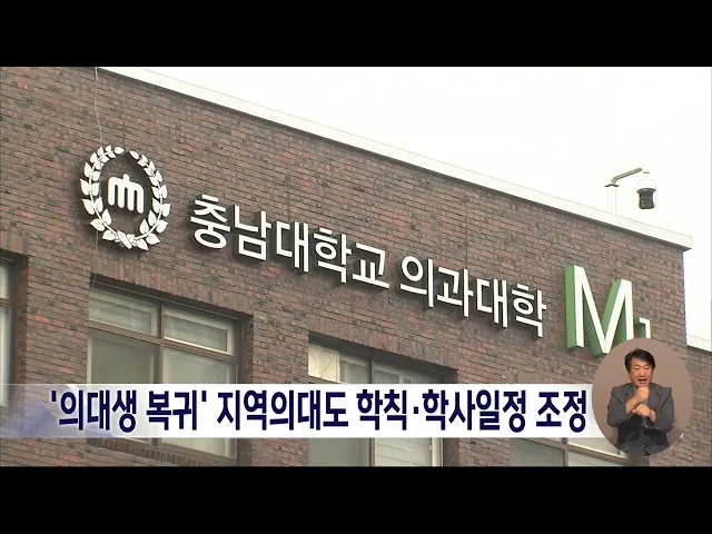 뉴스데스크 뉴스데스크뉴스투데이뉴스데스크 VOD(전체 다시보기)뉴스투데이 VOD(전체 다시보기)유튜브뉴스페이스북 뉴스카카오톡 뉴스인스타그램 뉴스 prev 2025.8.8 - 금요일 next '세종 조치원 민간임대아파트' 계약금 환불 거부 민원 잇따라 세종에서 민간임대아파트 회원모집 광고를 임차인 모집으로 오인해 금전적 피해를 입는 사례가 발생해 주의가 필요합니다. 세종시는 '가칭 조치원읍 죽림리 49층 민간임대아파트' 회원모집 광고와 관련해 ... 문은선 2027충청U대회 홍보대사에 김태균 위촉 2027 충청 유니버시아드대회 조직위원회가 김태균 전 야구선수를 대회 공식 홍보대사로 위촉했습니다. 김태균 홍보대사는 "충청에서 열리는 세계적인 스포츠 축제를 알릴 수 있어 영광"이라며 "국민적 관... 문은선 '의대생 복귀' 지역의대도 학칙·학사일정 조정 정부의 의대생 복귀 지침에 따라 지역 의대들도 학칙 개정 등 후속 대책 논의에 들어갔습니다. 대전권 의대들은 유급·제적 대상의 학점 이수를 보완하기 위해 학사일정을 연장하고 재시험을 치르거나 유급... 문은선 천안 쌍용동 아파트 지하주차장 화재⋯1명 병원 이송 오늘 오후 1시 10분쯤 천안시 쌍용동의 한 아파트 지하주차장에서 불이 나 1시간 10여 분 만에 꺼졌습니다. 이 불로 2명이 연기를 흡입해 이중 50대 여성이 병원으로 옮겨졌고 SUV 한 대가 전소됐습니다. ... 김광연 당진 화학약품 제조 공장서 황산 튀어⋯작업자 2명 화상 어제 오후 8시 50분쯤 당진시 송산면의 한 화학약품 제조 공장에서 작업 중 황산이 튀어 노동자 2명이 양팔 등에 2도 화상을 입어 인근 병원으로 옮겨졌습니다. 경찰은 운반용 탱크로리 차량에서 황산을 ... 이혜현 대전시의회, 오는 18일 임시회..송활섭 시의원 제명안 처리 대전시의회가 강제추행 혐의로 기소돼 1심에서 유죄를 선고받은 송활섭 시의원의 제명안을 처리하기 위해 오는 18일, 임시회를 개최합니다. 앞서 대전시의회 윤리특별위원회는 송 의원의 품위유지의무 위... 이승섭 4대강 사업 17년의 기록⋯영화 '추적' 시사회 대전서 열려 17년에 걸쳐 4대강 사업을 추적한 내용을 담은 다큐멘터리 영화 '추적' 시사회가 내일 오후 7시 CGV 대전터미널에서 열립니다. 영화 '추적'은 지난 2008년부터 최근까지 이어진 이명박 전 대통령의 4대강 ... 김광연 '대전 0시 축제' 오늘 개막..지역 정치권 공방 대전의 과거와 현재, 미래를 잇는 시간여행을 주제로 한 '대전 0시 축제'가 오늘 개막해 오는 16일까지 대전 중앙로 일대에서 열립니다. 개막 행사에서는 축제의 성공을 기원하는 대형 붓글씨 쓰기와 공군... 이승섭 '고수온 폐사 대비' 양식어류 긴급 방류 잇따라 최근 충남 천수만에도 고수온 주의보가 내려진 가운데 태안과 보령 일대에서 양식어류 긴급 방류 조치가 이뤄졌습니다. 태안군은 고남면 일대 가두리 양식장 10곳에서 조피볼락 67만 9천 마리를 바다에 방... 최기웅 대전 돌봄 센터서 '집단 식중독'⋯위생 비상/데스크 ◀ 앵 커 ▶ 최근 대전의 한 돌봄 센터에서 초등학생과 종사자 등 20명 가까이가 집단 식중독 증세를 보였습니다. 이들은 점심으로 배달 도시락을 먹고 탈이 난 건데, 폭염 속 식중독이 잇따르면서 식품 위... 김성국 천안시, 일본군 위안부 피해자 기림의 날 '온라인 추모관' 운영 천안시는 오는 14일 일본군 위안부 피해자 기림의 날을 앞두고 온라인 추모관을 운영합니다. 온라인 추모관은 광복절인 오는 15일까지 천안시청 누리집 추모 게시판을 통해 누구나 헌화와 추모 메시지를 ... 문은선 김형석 독립기념관장 사퇴 여론 재점화/데스크 ◀ 앵 커 ▶ 제80주년 광복절이 일주일 앞으로 다가오면서 지난해 취임한 김형석 독립기념관장의 사퇴 여론에 다시 불이 붙었습니다. 독립운동가 유족과 시민사회단체는 김 관장이 왜곡된 역사... 이승섭