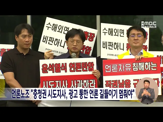 뉴스데스크 뉴스데스크뉴스투데이뉴스데스크 VOD(전체 다시보기)뉴스투데이 VOD(전체 다시보기)유튜브뉴스페이스북 뉴스카카오톡 뉴스인스타그램 뉴스 prev 2025.8.13 - 수요일 next 대전 상장기업 시총 사상 첫 74조 돌파 1988년 대전 지역 기업의 첫 증시 상장 이후 37년 만에 대전 상장기업 시가총액이 처음으로 70조 원을 돌파했습니다.대전테크노파크에 따르면 7월 말 기준 66개 대전 상장기업의 총 시가총액은 74조 천837... 김지훈 홈플러스, 15개 점포 폐점 확정...충청권 2곳 포함 기업회생 절차를 진행 중인 홈플러스가임대료 조정이 이뤄지지 않은 15개 점포를순차적으로 폐점하기로 했습니다.충청권에서는 천안 신방점과 대전 문화점 등2곳의 폐점이 확정됐고, 홈플러스는 다음 달부... 윤소영 장애인단체 "인권 침해 '한화' 관람 환경 개선하라" 한화생명볼파크의 장애인석 90석을 특별석으로 판매한 한화이글스에 대해장애인단체의 비판이 커지고 있습니다.대전 지역 44개 장애인단체는 성명을 통해"구단이 장애인석을 특별석으로 판매해 얻은 부당 ... 김성국 아산 폐기물 재활용 업체서 폭발..작업자 2명 화상 오늘 오후 2시쯤 아산시 둔포면의 한 폐기물 재활용 업체에서 폭발과 함께 화재가 발생해 작업 중이던 50대 남성이 온몸에 3도 화상을 입는 등 2명이 다쳐 병원으로 옮겨졌습니다.경찰과 소방 당국은 배관... 김광연 대전서 'AI 돌봄 로봇' 위기 신고로 70대 병원 치료 인공지능 돌봄 로봇이 우울증으로 위기 상황에 놓인 70대를 신고해 병원 치료를 받도록 도운 것으로 알려졌습니다.대전시에 따르면 지난 6일 대덕구에 사는 70대가 'AI 돌봄 로봇'과 대화 도중"목숨을 끊... 김지훈 호우 특보 속 태안·서산 등 충남 북부 중심 강한 비 태안과 서산, 당진에 호우경보가 내려진 가운데국지적으로 집중호우가 내리고 있습니다.특히 내일 새벽부터 아침 사이 이들 지역에 시간당 30mm 안팎의 강한 비가 예보돼 있어, 주민들의 각별한 주의가 필... 김광연 지역 경찰, 광복절 폭주족 특별단속..전원 사법처리 지역 경찰청이 15일 광복절을 앞두고 폭주족과 난폭운전에 대한 특별단속에 나섭니다.이에 따라 광복절 당일 폭주족이 자주 출몰하는 천안과 아산 등에 가용 경찰력과 장비를 집중 투입해 폭주 차량을 가... 이혜현 조달청, '축구장 980개 면적' 일본인 토지 699만㎡ 국유화 광복 80주년을 맞은 올해까지 조달청이 축구장 980개 면적에 달하는 일제 강점기 일본인이 소유했던 699만㎡의 부동산,공시지가로 천965억 원 상당을 국유화한 것으로 나타났습니다.조달청은 지난 2012년... 문은선 "충청권 시도지사, 광고 무기로 언론탄압 중단하라" 인터넷 언론사 디트뉴스24가 수해 복구 중 유럽 출장을 떠난 충청권 시·도지사에 대한 비판 보도 직후 정부 광고가 중단된 것과 관련해'언론 길들이기'라는 반발이 나오고 있습니다.전국언론노조와 디트뉴... 김성국 신임 교육부 장관 후보자에 최교진 세종교육감 지명 신임 교육부 장관 후보자로 최교진 세종교육감이 지명됐습니다.충남 보령 출신인 최 교육감은전직 교사 출신으로,세종교육감에 내리 3차례 당선됐으며앞서 낙마한 이진숙 전 후보자와 달리, 교육 현장 경... 김윤미 폭우 이은 폭염에...식수원 대청호 '녹조' 비상/데스크 ◀ 앵 커 ▶한 번 시작되면 수백 mm가 쏟아지는극한 호우부터, 30도를 훌쩍 넘는 폭염까지.올여름 역대급 날씨에 충청권 식수원인 대청호에는 예년보다 빠르게 녹조가 확산하고 있습니다.기후 위기 속에 갈... 김성국 '120년 만의 귀향' 문양목 지사 고국 품으로/데스크 ◀ 앵 커 ▶동학농민혁명에 참여한 뒤 미국으로 건너가 독립운동에 헌신한 태안 출신의 독립운동가문양목 지사가 120년 만에 고국 품으로 돌아왔습니다. '조국은 반드시 독립된다'며 평생을 일제에 항거했던... 최기웅 국힘 당권주자들 특검 향해 공세..'탄핵 찬반' 여전/데스크 ◀ 앵 커 ▶국민의힘 전당대회에 출마한 당 대표 후보들이 오늘 대전에서합동연설회를 가졌습니다.사상 처음 전직 대통령 부부가 구속된 초유의 상황에다 특검 수사팀이 당사 압수수색까지 벌인 것을 놓고특... 윤소영 행정수도 완성..대전 '과학수도', 충남 '국가첨단전략산업'/데스크 ◀ 앵 커 ▶대통령 직속 국정기획위원회가 앞으로 5년간 국정운영 방향을 담은 청사진을 발표하면서 국가균형성장에 공을 들였는데요.세종시 행정수도 완성을 비롯해대전은 과학기술 수도로,충남은 국가첨단... 문은선