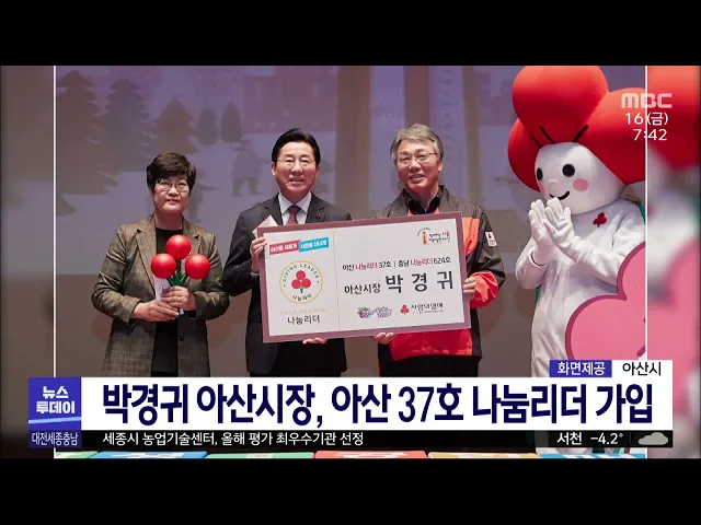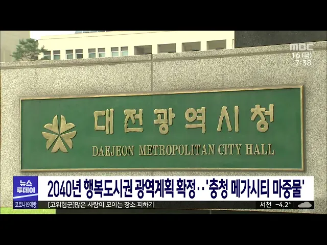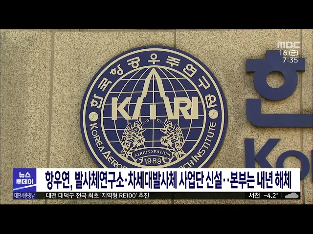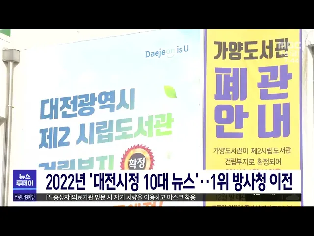 뉴스투데이 뉴스데스크뉴스투데이뉴스데스크 VOD(전체 다시보기)뉴스투데이 VOD(전체 다시보기)유튜브뉴스페이스북 뉴스카카오톡 뉴스인스타그램 뉴스 prev 2022.12.16 - 금요일 next 대전시, 전국 최초 교통약자 프리패스 개찰구/투데이 ◀앵커▶ 대전시가 교통약자를 위해 교통카드를 찍지 않고도 도시철도 개찰구를 통과할 수 있는 하이패스 시스템을 전국 최초로 도입했습니다. 3cm 크기의 목걸이형 프리패스 승차권을 착용한 뒤 개찰구 1.... 김태욱 대전시, 2027년까지 보문산 권역에 산림휴양단지 조성 대전시가 전국 일류 산림휴양도시 대전을 목표로 내년부터 오는 2027년까지 보문산 권역에 196만 평 규모의 대규모 산림 휴양단지를 조성합니다. 이장우 대전시장은 브리핑을 열고, 기존 치유의 숲과 보문... 김태욱 10.29 참사 대전 대책회의 시민분향소 설치 대전지역 47개 종교시민사회단체로 구성된 10.29 이태원 참사 대전대책회의가 대전 둔산동에 참사 희생자 대전시민분향소를 설치했습니다. 대전시민분향소에는 대전·충남 지역 희생자 6명의 영정사진과 위... 윤웅성 전국 최초 지자체 독자 추진 '지역형 RE100'/투데이 ◀앵커▶ 기업이 사용하는 전력 100%를 재생에너지로 충당하겠다는 RE100 캠페인은 탄소 중립 문제를 해결하기 위한 전 세계적인 과제로 떠올랐죠. 대전 대덕구에서 전국 최초로 지자체가 독자 추진하는 '... 박선진 다누리, 달 궤도 진입 시작..모레 새벽 첫 진입기동 우리나라 첫 달 궤도 탐사선 다누리가 내일 새벽부터 달 궤도 진입을 시도합니다. 다누리는 모레(투데이 내일) 새벽 2시 45분, 달 상공 108km 원궤도에서 달 중력에 포획되기 위한 첫 번째 감속, 즉 1차 ... 조형찬 항우연, 발사체연구소·차세대발사체 사업단 신설 지난 6월 한국형발사체 누리호를 성공적으로 쏘아올린 한국항공우주연구원이 차세대발사체사업단과 소형발사체연구부 등을 신설하는 조직 개편을 단행했습니다. 항우연은 한국형 발사체 개발 사업이 내년... 조형찬 육아 소외 지역에 어린이 체험 센터/투데이 ◀앵커▶ 충남 남부 지역은 대표적인 인구 감소 지역인 탓에 아이 키우는 환경도 열악한데요. 서천의 한 시골 마을에 어린이를 위한 체험 시설이 마련돼 큰 호응을 얻고 있습니다. 이승섭 기자입니다. ◀리... 이승섭 묻지마 카타르 최규 의원 내일 출석정지 20일 확정 대전 서구의회 윤리특별위원회가 월드컵 관람을 위해 카타르로 떠나 물의를 빚은 최규 의원에게 출석정지 20일 징계를 결정한 가운데, 오늘 열릴 서구의회 본회의에서 징계가 확정될 전망입니다. 이는 윤... 김태욱 2040년 행복도시권 광역계획 확정…"충청 메가시티 마 국가균형발전의 새로운 거점 구축과 충청권 장기발전 방향을 제시할 `2040년 행정중심복합도시 광역도시계획`이 국토교통부 승인을 받아 확정됐습니다. 행복청과 대전시·세종시·충북도·충남도 등 충청권 4... 최기웅 청년이 충남을 떠나는 이유 1위는 직업 청년들이 충남을 떠나는 가장 큰 이유는 직업 문제로 나타났습니다. 충남도 통계에 따르면 지난해 충남지역 만 19살에서 39살 사이 인구는 57만여 명으로 3년 연속 감소했는데, 전출 이유로는 직업이 35.9... 이승섭 소비자연맹 "이·미용업소 가격정보 제대로 표기해야" 대전충남소비자연맹이 지난 7개월간 대전지역 이·미용업소 110곳을 조사한 결과 옥외 가격을 게시하지 않은 업소가 7%, 가격 확인이 어려운 업소는 34%에 달하는 것으로 나타났습니다. 이는 이·미용업소에... 뉴스팀 대전 홍보 유튜브 영상 50여 일 만에 1억 뷰 돌파 전 세계를 대상으로 대전의 멋을 알리기 위해 한국관광공사가 제작하고 BTS가 참여해 화제를 모은 필 더 리듬 오브 코리아 '대전 로큰롤' 유튜브 영상이 업로드 50여 일 만에 누적 조회수 1억 뷰를 돌파했... 김태욱 천안 서북구청사, 지역 중심 미래형 복합청사로 건립 지은 지 40년이 지나 신축 청사 건립이 추진되고 있는 천안시 서북구청사가 지역 공동체 중심 기능을 수행하는 미래형 복합청사로 거듭날 예정입니다. 천안시는 서북구청 신청사 건립 기본구상 용역 최종... 김광연 박경귀 아산시장, 아산 37호 나눔리더 가입 박경귀 아산시장이 충남사회복지공동모금회 나눔리더에 아산 37호로 이름을 올렸습니다. 나눔리더는 한 해 백만 원 이상을 일시에 내거나 약정 기부하는 사회복지공동모금회 기부자 모임으로, 박 시장은 ... 김광연 38억 원 규모..로컬푸드 발전 위한 토론회 개최 지난해 당진시 로컬푸드 직매장 18곳에서 38억 원의 매출을 기록하는 등 로컬푸드 시장이 성장하고 있는 가운데 당진시가 로컬푸드 발전 방안 토론회를 열었습니다. 토론회에는 관련 부서 관계자와 농업인... 김광연 여성 암 환자, 오후 항암치료가 효과 더 좋아 여성 암 환자들의 경우 항암치료를 오후에 받는 게 효과가 더 좋다는 연구결과가 나왔습니다. 기초과학연구원과 서울대 공동연구팀이 210명의 암 환자를 연구한 결과, 남성은 시간에 따른 치료 효율 차이... 조형찬 2022년 '대전시정 10대 뉴스'..1위 방사청 이전 올해 대전의 10대 뉴스 1위에 방위사업청 대전 이전이 선정됐습니다. 대전시는 시민 투표 결과 방사청 이전이 10.