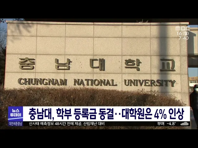 뉴스투데이 뉴스데스크뉴스투데이뉴스데스크 VOD(전체 다시보기)뉴스투데이 VOD(전체 다시보기)유튜브뉴스페이스북 뉴스카카오톡 뉴스인스타그램 뉴스 prev 2023.1.16 - 월요일 next '늘봄학교'..기대 반, 우려 반/투데이 ◀앵커▶ 초등학교에서 아이들을 저녁 8시까지 책임지는 '늘봄학교' 시범 사업에 대전과 충남교육청이 참여하기로 하면서 당장 새 학기부터 맞벌이 부부의 부담을 덜 수 있다는 기대가 나오고 있는데요. 하... 윤웅성 '고령사회' 대전 지난해 노인 인구 16.1% 대전시 인구가 꾸준히 주는 가운데 노인 인구는 매년 증가하는 것으로 나타났습니다. 행정안전부가 집계한 지난해 12월 말 기준 대전지역 65살 이상 인구는 23만 2천6백여 명으로 전체 인구의 16.1%에 해... 문은선 지역 코로나 확진자 수 한 달째 완만 감소세 지역 코로나19 확진자 수가 지난해 12월 중순 정점을 찍은 이후, 감소 추세가 한 달째 이어지고 있습니다. 대전에서는 어제(14) 하루 지난주 평균보다 27.9%와 전날 보다 123명 떨어진 915명이 신규 확진... 뉴스팀 세대 융합 과학자들의 일류 협업 /투데이 ◀앵커▶ 은퇴를 앞둔 고경력 과학자들과 후배 과학자들이 함께 협업연구로 시너지 효과를 내는 연구실들이 있습니다. 은퇴 후 안타깝게 사장되는 교수들의 노하우를 살려, 혁신적인 융합연구와 미래 먹거... 조형찬 세종 은하수공원 설 연휴 정상..세종수목원 '무료' 세종시설공단은 이번 설 연휴 기간 은하수공원을 정상 운영합니다. 다만, 코로나19 확산 방지를 위해 봉안당 제례실은 임시 폐쇄하고 실내 음식물 반입과 마스크 미착용 출입 등은 제한합니다. 직접 방문... 문은선 충남도, 설 명절 앞 임금체불 집중 대응 충남도가 임금체불 신고센터를 운영하는 등 설 명절을 앞두고 적극적인 임금 관리에 나섭니다. 도는 오는 20일까지를 설 연휴 임금체불 집중지도 기간으로 정해, 명절 전 관급공사 등의 임금 체불 예방과 ... 조형찬 충남도, 농업생산기반 정비 올해 1,251억 투입 충남도가 안정적인 영농 환경 조성을 위해, 농식품부로부터 확보한 국비 1,251억 원을 투입해 올해 농업생산기반시설 정비사업을 추진합니다. 정비는 농촌용수 개발과 관리, 배수 개설, 방조제 개보수 등 ... 조형찬 대전시 통합돌봄 강화..10년간 천52억 원 투입 대전시가 오는 2032년까지 10년간 1,052억 원을 투입해 추진할 대전형 지역사회통합 돌봄 중장기 발전 계획을 오는 3월부터 추진한다고 밝혔습니다. 시는 노인·장애인·아동 등 돌봄이 필요한 모든 시민에... 뉴스팀 허술한 총기 관리 속 사망.."재발 방지책 시급" 지난해 11월 서산시 부석면의 한 갈대밭에서 70대 엽사가 멧돼지 포획 중 60대 엽사를 잘못 쏴 숨지게 한 사고와 관련해 유족들은 재발 방지책이 시급하다고 호소했습니다. 서산 경찰서에 따르면, 유족들... 뉴스팀 충남대, 학부 등록금 동결..대학원은 4% 인상 신입생 모집난과 정부 장학금 지원 제한 등으로 지역대의 등록금 동결 기조가 이어지는 가운데 충남대도 학부 등록금을 동결하고 대학원은 4% 인상하기로 결정했습니다. 이로써 충남대는 지난 2009학년도... 문은선 과수화상병 확산 방지 '궤양 신속 제거해야' 충남도 농업기술원이 과수화상병 확산 방지를 위해 겨울철 궤양 집중 제거 등 사전 방제를 당부했습니다. 도는 지난해 초 궤양 제거와 예찰 조사로 과수화상병으로 확진된 22개 과원, 6.9ha를 제거한데 이... 조형찬 대전시, 시립예술단 외부활동 금지..단원 반발 대전시가 시립예술단의 겸직과 외부활동을 금지하면서 단원들이 반발하고 있습니다. 시는 민간 예술단체와의 상생을 위해 올해부터 시립예술단원의 지역 내 예술활동을 전면 금지하고, 강연이나 대전 이외... 문은선 세종시, 정치용 현수막 게시대 다음달 1일부터 운영 세종시가 교통량과 유동인구가 많은 어진동과 조치원읍 교차로에 각각 1곳씩 정치 현수막 우선 지정게시대를 설치해 다음달부터 시범 운영합니다. 게시대는 국회의원과 시의원 등 정당·정치인이 정책 홍보... 조형찬 충남안전체험관 방문객 234% 증가 코로나19 거리두기 해제 등으로 충남안전체험관 방문객이 지난해 5만 6천여 명으로 2020년보다 234% 급증했습니다. 충남소방본부에 따르면, 방문객은 초,중,고 학생이 44.1%를 차지했고, 체험관별로는 자... 조형찬 대전 복합문화센터 3곳 650억 투입..내년 완공 대전 복합문화체육센터 3곳 건립에 650억 원이 투입되고, 올해 동시착공해 내년 완공됩니다. 대전시는 중구 문화동 한밭도서관, 유성구 원신흥동 작은내수변공원, 대덕구 비래동 길치문화공원 등 3곳에 센... 조형찬 산사태 예측정보 48시간 전에 제공, 산림재난 대비 재난에 미리 대비할 수 있게 다음 달부터 산사태 예측정보가 현재 24시간 전에서 48시간 전으로 하루 앞당겨 제공됩니다. 산림청은 또, 대형화하는 산림재난에 대한 체계적인 대응을 위해 지역주민 강제 ... 조형찬 대전 서구, 업무용 택시 시범 도입 대전 서구가 충청권에서는 처음으로 업무용 택시를 도입합니다. 업무용 택시는 운전면허가 없거나 운전미숙, 임신부 직원 등이 출장을 가는 경우 활용하게 됩니다. 최근 서구와 업무협약을 맺은 하나은행... 문