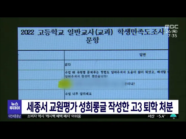 뉴스투데이 뉴스데스크뉴스투데이뉴스데스크 VOD(전체 다시보기)뉴스투데이 VOD(전체 다시보기)유튜브뉴스페이스북 뉴스카카오톡 뉴스인스타그램 뉴스 prev 2023.1.26 - 목요일 next 온통대전 없는 첫 명절.. 전통시장 울상/투데이 ◀앵커▶ 실내 마스크 해제까지 앞둔 이번 설은 모처럼 코로나19 이후 가족들이 편하게 모이면서 전통시장 상인 등도 명절 대목에 대한 기대가 컸는데요, 정작 대전지역 상인들은 명절 대목이 온통대전 캐... 김태욱 충청권 광역철도 1호선, 호남선 고속화 사업 '속도' 충청권 광역철도 사업이 새해 속도를 낼 전망입니다. 충남 계룡에서 대전 신탄진까지 35.4km 구간의 충청권 광역철도 1단계 사업은 기획재정부의 수요예측 재조사를 거쳐 연내 착공할 예정입니다. 논산에... 문은선 충남도, 서남부 지역 응급의료체계 강화 충남도가 의료 취약 지역인 서남부권 응급의료체계를 강화합니다. 도는 보령아산병원을 치료 중심의 센터급으로 높이기 위해 40억 원을 들여 시설과 장비를 보강하고, 건양대부여병원과 청양군보건의료원... 이승섭 대산공단 고질적 물 부족..해법은?/투데이 ◀앵커▶ 서산 대산산업단지는 우리나라 3대 석유화학단지로 굴지의 대기업이 모여있는데요. 하지만, 해마다 고질적인 물 부족 현상을 겪고 있어 기업과 지방자치단체가 대책 마련에 고심하고 있습니다. 이... 이승섭 세종서 교원평가 성희롱글 작성한 고3 퇴학 처분 세종의 한 고등학교에서 실시한 교원능력개발평가에서 여교사들에게 성희롱성 내용을 작성한 학생에게 퇴학 처분이 내려졌습니다. 세종시교육청은 최근 해당 고등학교가 교권보호위원회를 열어 글을 작성... 윤웅성 불상 소유권 2심 선고 앞두고 부석사 "항소이유 해소 절도범에 의해 일본에서 국내로 들어온 고려시대 금동관음보살좌상 소유권에 대한 2심 선고를 앞두고 서산 부석사 측이 불상을 부석사에 돌려달라고 거듭 요청했습니다. 서산 부석사 불상 제자리 봉안위원... 최기웅 '뉴 스타일' 이응노가 표현한 격동의 시기/투데이 ◀앵커▶ 홍성이 낳은 세계적인 거장 고암 이응노는 가는 데마다 새로운 것을 주장해 화백들 사이에서 '뉴 스타일'이라는 별명으로 불렸다고 하는데요, 주변 환경과 작품 철학에 가장 큰 변화를 겪었던 196... 뉴스팀 세종시의회 오는 30일 임시회 개최.. 불신임안 다루나 세종시의회가 오는 30일부터 다음 달(2) 10일까지 임시회를 여는 가운데 동료 의원 성추행 의혹을 받는 상병헌 의장의 불신임안이 다뤄질지 주목됩니다. 김광운 세종시의회 윤리특별위원장은 최근 경찰이 ... 김태욱 명예훼손 혐의 채계순 전 대전시의원 2심서 '무죄' 대전지법 형사항소 5부는 동료 시의원에게 부적절한 발언을 해 명예훼손 혐의로 기소된 채계순 전 대전시의원 항소심에서 벌금형을 선고한 원심을 깨고 무죄를 선고했습니다. 재판부는 검사가 제출한 증거... 뉴스팀 충남지역 설 연휴 교통사고, 작년보다 49% 줄어 올해 설 연휴 기간 충남에서 발생한 교통사고가 지난해보다 절반 가까이 줄었습니다. 충남경찰청은 설 연휴 닷새간 55건의 교통사고가 발생해, 지난해 설 연휴에 비해 49.1%가 감소했고, 음주 교통사고도 ... 뉴스팀 코레일 "설 특별수송 닷새간 212만 명 열차 이용" 설 특별수송 기간이던 지난 20일부터 닷새간 모두 212만 명이 열차를 이용한 것으로 나타났습니다. 한국철도공사는 이 기간 KTX는 131만 명, 일반 열차는 81만 명이 이용했으며 특히 연휴 시작 전날인 20... 뉴스팀 대전교통공사, 용인경량전철 운영 우선협상대상 선정 대전교통공사가 무인운전방식으로 운행되는 경기 용인 경량전철 운영과 유지보수 사업 우선협상대상자로 선정됐습니다. 대전교통공사가 들어간 컨소시엄은 앞으로 10년 동안 용인경량전철의 안전관리체계 ... 김태욱 대전의 아들 황인범 선수, 대전시에 5백만 원 기부 대전 출신의 대한민국 축구 국가대표 황인범 선수가 고향인 대전시에 고향사랑기부금 5백만 원을 기부했습니다. 5백만 원은 연간 기부할 수 있는 최대 기부액으로 황 선수는 대전시 1호 최고액 고향사랑 ... 김태욱 대전 인구 줄고, 세종·충남 늘고 지난해 전국적으로 인구 감소세가 지속된 가운데 대전은 인구가 소폭 준 반면 세종과 충남은 증가한 것으로 나타났습니다. 지난해 말 기준 주민등록 인구통계에 따르면 전국 인구는 0.39% 줄면서 3년 연속... 문은선 대전 대덕연구개발특구 동쪽 진입로 입찰 공고 대전시가 대덕연구개발특구 동쪽 진입로 개설공사를 입찰 공고했습니다. 대덕특구 동쪽 진입로는 유성구 문지동과 대덕구 신대동을 잇는 1.3km 길이의 왕복 4차로 도로로, 총사업비 천 43억 원을 들여 내... 고병권 충남선관위, 금품 제공하도록 한 입후보예정자 고발 충남도선거관리위원회가 오는 3월, 전국동시조합장선거를 앞두고 조합원에게 금품을 제공하도록 한 혐의로 입후보예정자를 경찰에 고발했습니다. 이 입후보예정자는 지난해 11월, 자신을 위해 다른 사람 2... 이승섭 뇌물받고 수사 무마·정보 유출 경찰관 징역형 선고 대전지법 서산지원 형사1부가 대기업과 사건 관계자에게 뇌물을 받고, 수사 정보를 알려주거나 수사를 