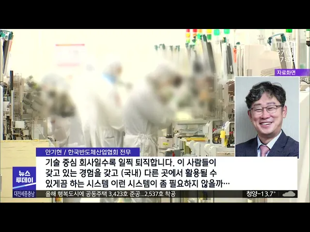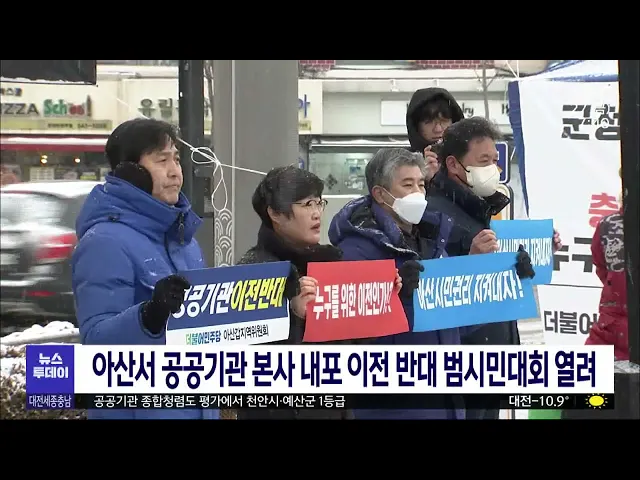 뉴스투데이 뉴스데스크뉴스투데이뉴스데스크 VOD(전체 다시보기)뉴스투데이 VOD(전체 다시보기)유튜브뉴스페이스북 뉴스카카오톡 뉴스인스타그램 뉴스 prev 2023.1.27 - 금요일 next 기록적 한파지만 한파쉼터 '부실'/투데이 ◀앵커▶ 더위를 피하는 무더위 쉼터처럼, 난방 취약 계층들이 겨울 한파를 피할 수 있는 한파쉼터라는 게 있습니다. 하지만 어디에 있는지 알 수도 없고, 운영도 제각각이어서 이용하는 사람이 극히 드물다... 문은선 지난해 대전 공공기관 지역인재 채용률 37% 지난해 대전지역 공공기관의 지역인재 채용률은 37%를 기록했지만 세종은 단 한 명도 없었던 것으로 나타났습니다. 국토교통부가 발표한 2022년 이전 공공기관 지역인재 채용 현황을 보면 혁신도시법에 따... 문은선 서산 대산항-중국-동남아 신규 컨테이너 항로 개설 서산 대산항을 출발해 홍콩과 베트남, 중국을 오가는 컨테이너 정기 항로가 오는 31일, 시범 운항을 시작으로 개설됩니다. 서산시는 이번 항로 개설로 대산항 수출 화주들이 중국과 동남아시아 직항로와 ... 이승섭 '살인죄'무기수 항소심서 '사형'/투데이 ◀앵커▶ 교도소 안에서 동료 재소자를 때려 숨지게 한 혐의를 받는 20대 무기수에게 2심에서 법정 최고형인 사형이 선고됐습니다. 강도살인죄로 복역 중 2년 만에 또 살인을, 그것도 뚜렷한 이유도 없이 ... 윤웅성 '대전 오피스텔 전세사기' 공인중개사 2명 구속 대전 오피스텔 전세 사기 사건에 가담한 혐의로 공인중개업자 등 2명이 추가로 구속됐습니다. 경찰은 이들이 부동산 투자자들에게 전세 계약이 체결된 오피스텔을 월세 물건으로 속여 판매한 것으로 보고 ... 윤웅성 대전시립정신병원 신축 이전..명칭은 '온마음병원' 대전시가 개원한 지 30년 된 유성구 학하동 시립정신병원의 신축 이전을 추진합니다. 시는 병원 명칭을 온마음병원으로 바꾸기로 한데 이어 대전교도소가 이전하는 유성구 방동을 중심으로 이전 부지를 물... 문은선 연봉 3배 제안에 중국에 국가핵심 반도체/투데이 ◀앵커▶ 반도체 관련 국가핵심기술을 중국에 유출한 혐의로 반도체 대기업과 중견기업 전·현직 직원 6명이 재판에 넘겨졌습니다. 이번 기술 유출로 피해를 입은 기업 3곳 가운데 규모가 가장 작은 곳의 피... 문은선 종합청렴도 평가에서 천안시·예산군 1등급 공공기관의 청렴도를 가늠하는 국민권익위원회 종합청렴도 평가에서 천안시와 예산군이 1등급을 받았습니다. 광역자치단체 가운데는 세종시와 충남도가 3등급, 대전시가 4등급으로 비교적 저조한 평가를 ... 이승섭 대전 바이오벤처 창업지원공간 개소…실험실·장비 공 바이오벤처창업을 지원할 대전바이오벤처 오픈랩이 대덕연구개발특구 내 대전바이오벤처타운에 문을 열고 입주기업을 모집합니다. 입주기업 사무실과 회의실, 공용실험실 등을 갖춘 오픈랩에선 창업 초기 ... 문은선 모래에서 고속 질주 로봇/투데이 ◀앵커▶ 발이 푹푹 빠지는 모래사장에서도 빠르게 달릴 수 있는 로봇이 개발됐습니다. 스스로 판단하는 강화학습을 통해 딱딱한 바닥이나 에어 매트리스에서도 빠르게 균형을 잡고 걸을 수 있는데요. 다양... 조형찬 아산서 공공기관 본사 이전 반대 범시민대회 열려 충남도가 공공기관 통·폐합과 함께 기관 본사의 내포 이전을 추진하는 것과 관련해 아산지역 정치권에 이어 시민 사회로 반대 여론이 확산되고 있습니다. 지역 이장단과 청년, 소상공인 등은 온양온천역 ... 김광연 대전 만 70살 이상 시민 버스 무료화 추진 대전지역 만 70살 이상 시민을 대상으로 오는 7월부터 시내버스 무료화가 추진됩니다. 대전시는 만 70살 이상 시민의 버스 무임교통 지원을 위해 조례 제정에 착수했고 다음 달 대전시의회 임시회에 상정... 문은선 한화이글스 2023 연봉계약 완료 프로야구 한화이글스가 2023 선수단 연봉계약을 마쳤습니다. 계약 대상자 49명 가운데 최고연봉은 투수 김민우로, 지난 시즌보다 20% 가까이 오른 2억 2800만 원에 도장을 찍었고, 내야수 정은원도 지난 ... 박선진 금산군, 졸음운전 사고 피해 어린이 치료 삼성서울병 금산군은 인도로 돌진한 차량에 다친 어린이들을 무료로 치료해 준 삼성서울병원에 감사패를 전달했습니다. 삼성서울병원 측은 운전자가 책임보험에만 가입해 어린이들이 수술비 등 치료비 마련에 어려움... 문은선 대전교육청, 늘봄학교 시범사업 선정 오는 3월 새 학기부터 대전에서도 오후 8시까지 초등학교 돌봄 등을 확대하는 교육부 늘봄학교가 시범 운영됩니다. 교육부가 공모한 늘봄학교 시범사업에 대전을 포함해 전국 5개 시·도교육청이 선정됨에 ... 윤웅성 행복도시 공동주택 3,423호 준공, 2,537호 착공 올해 세종시 신도심에 공동주택 3천423 가구가 준공되고 2천537 가구가 착공합니다. 행정중심복합도시건설청은 올해 고운동과 산울동, 해밀동에 분양주택 천782 가구, 반곡동과 해밀동에 임대주택 천641 ... 고병권 천안시, 소규모 사업장 대기오염 방지시설 설치 지원 천안시는 대기오염물질 저감 등을 위해 올해도 소규모 사업장에 대기오염 방지시설 설치비를 지원합니다. 대상은 대기배출시설을 운영 중인 중소기업으로 
