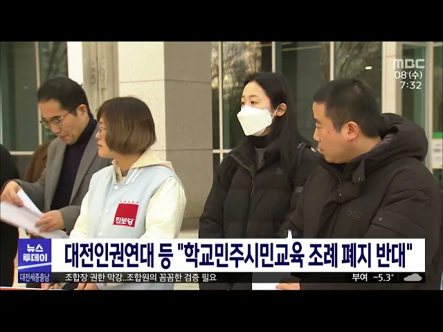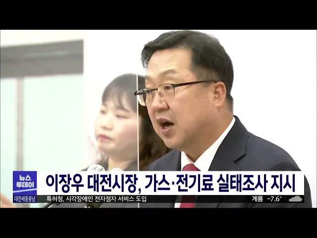 뉴스투데이 뉴스데스크뉴스투데이뉴스데스크 VOD(전체 다시보기)뉴스투데이 VOD(전체 다시보기)유튜브뉴스페이스북 뉴스카카오톡 뉴스인스타그램 뉴스 prev 2023.2.8 - 수요일 next 대전시, 하반기부터 70대 어르신 버스 무료화/투데이 ◀앵커▶ 대전에서도 올 하반기부터는 70살 이상 어르신들이 무료로 버스를 이용할 수 있게 됩니다. 최근 노인들의 지하철 무임승차 연령 상향 조정에 대한 논의가 진행되는 중에 나와 더 관심인데요, 시는... 김태욱 시민단체, '학교민주시민교육 조례' 폐지 반대 대전충남인권연대 등 70개 시민단체로 이뤄진 대전학생인권조례제정운동본부는 시의회 앞에서 기자회견을 열고 학교민주시민교육 활성화 조례 폐지 조례안 추진을 즉각 중단하라고 촉구했습니다. 이들은 ... 윤웅성 '성희롱 발언 의혹' 천안시 출연기관장 직위해제 천안시는 직원들에게 폭언과 성희롱 발언을 했다는 의혹이 제기된 출연기관장을 직위해제 조치했습니다. 업무 공백 최소화를 위해 직위해제를 검토한 천안시는 어제(6) 긴급 이사회를 열고 해당 원장을 직... 김광연 이장우 대전시장, 가스·전기료 실태조사 지시 이장우 대전시장이 가스와 전기요금 인상에 따른 자영업자와 중소기업 어려움에 대한 실태조사를 지시했습니다. 이 시장은 확대간부회의에서 "가스를 많이 쓰는 자영업자와 전기 사용이 많은 중소기업의 ... 조형찬 대전 상·하수도 요금 5월부터 9~11.5%씩 인상 대전 상·하수도 요금이 오는 5월부터 3년 간 해마다 10% 안팎씩 인상됩니다. 대전시의회 복지환경위원회는 오는 2025년까지 상수도 요금은 매년 9%씩, 하수도 요금은 11.5%씩 각각 인상하는 내용의 집행부... 조형찬 尹 "지역 첨단 기업 세계화, 힘껏 지원"/투데이 ◀앵커▶ 윤석열 대통령이 어제대전을 찾아 혁신 기업인들과 만났습니다. 지역 혁신기업의 세계무대 진출을 적극 돕겠다고 말했는데요. 대전형 유니콘 기업의 탄생이나 대전투자청 설립 등이 탄력을 받을지... 조형찬 학생이 학생 때리게 한 초등교사 집행유예 수업 중 떠들었다는 이유로 같은 반 학생에게 때리게 한 60대 초등 교사가 항소심에서 집행유예를 선고받았습니다. 대전지법 형사항소 2부는 수업 시간에 떠든 학생을 교실 바닥에 엎드리게 한 뒤 급우 15... 뉴스팀 대전경찰, '모텔 유사' 룸카페 3곳 적발 대전경찰은 대전시 등과 합동으로 룸 카페에 대한 단속을 벌여 3곳을 적발했습니다. 단속된 업소들은 매트리스가 설치돼 있고, 유리창은 밖에서 안을 볼 수 없게 가려져 있는 등 청소년들의 음주와 흡연 ... 윤웅성 행복청, 해빙기 건설현장 37곳 안전점검 실시 행정중심복합도시건설청이 해빙기를 맞아 행복도시 예정지역 건설현장 37곳을 안전점검합니다. 행복청은 토목·건축·토질 등 분야별 민간 전문가와 LH, 안전 보건 공단 등으로 구성된 민관 합동 점검단을 ... 고병권 대전교육청, 방역 관리·e학습터 유지 실내 마스크 의무가 해제된 가운데 대전시교육청이 새학기에는 정상 등교를 비롯해 교과와 비교과 활동 모두 정상적으로 진행하되 등교할 때 발열 검사, 자가 진단 앱 사용 등으로 방역 관리를 하기로 했... 뉴스팀 천안시, 대규모 축제 안전계획 대면 심의로 변경 지난 10.29 참사를 계기로 천안시가 서면 위주였던 대규모 축제나 행사의 안전관리계획 심의를 경찰과 소방 등 유관기관 실무자 등이 참여하는 대면 심의로 바꿔 진행합니다. 시는 오는 28일 열리는 천안 ... 김광연 조합장 선거 한 달 앞으로..벌써 혼탁/투데이 ◀앵커▶ 농협과 수협, 산림조합의 조합장을 뽑는 제3회 전국동시조합장선거가 한 달 앞으로 다가왔습니다. 지역에선 조합장을 막강한 권력으로 인식하는 데 반해 선거는 깜깜이로 진행하다 보니 불법 선거... 이승섭 충남도,내년 정부 예산 10조 원 목표..본격 활동 올해 정부 예산 9조 원을 마련한 충남도가 내년에는 10조 원을 확보하기 위해 본격적인 활동에 돌입했습니다. 도는 정부 정책에 맞는 핵심 과제를 발굴하고, 주요 도정 사업을 실행에 옮기는 등의 기본 방... 이승섭 공주에 귀농청년 거주 공공임대주택 짓는다 공주시 이인면에 귀농·귀촌 청년들을 위한 공공임대주택이 지어집니다. 농림축산식품부의 '청년 농촌 보금자리 조성 사업'에 선정된 공주시는, 오는 2025년까지 국비 40억 원 등 94억 원을 들여 폐교한 이... 뉴스팀 태안군, 야생동물 피해 농가에 보상금 지급 태안군이 멧돼지 등 야생동물에 의한 농작물 피해 농가에 가구당 연간 5만 원에서 최대 300만 원까지 1년에 한 차례 보상금을 지급합니다. 군은 피해면적과 작물 별 단위 면적당 소득액 등을 따져 보상금... 뉴스팀 특허청, 시각장애인 전자점자 서비스 도입 특허청이 시각장애인을 위한 전자점자 서비스를 시작합니다. 이용 희망자는 특허청 홈페이지에서 '전자점자 보기' 아이콘을 누르면 전자점자로 변환된 해당 정보가 시각장애인 개인 컴퓨터에 저장돼 시각... 조형찬 대전시, '청년 단원' 대전시민교향악단 창단 추진 대전시가 지역 청년 음악가들에게 공연 기회를 제공하기 위해 올해, 청년 오케스트라인 대전 시민교향악단을 창단합니다. 시는 올해 39살 이하 청년 단원들