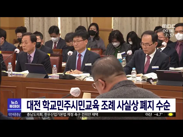 뉴스투데이 뉴스데스크뉴스투데이뉴스데스크 VOD(전체 다시보기)뉴스투데이 VOD(전체 다시보기)유튜브뉴스페이스북 뉴스카카오톡 뉴스인스타그램 뉴스 prev 2023.2.9 - 목요일 next 노후 계획도시 특례에 대전도 '들썩'/투데이 ◀앵커▶ 오래된 계획도시의 아파트는 지은 지 20년만 지나면 부수고 새로 짓게 해 주겠다며 정부가 파격적인 부동산규제 완화책을 내놨습니다. 그동안 용적률 상한에 묶여 있던 대전 둔산지구도 재건축이 ... 김지혜 충남도 공공기관 통폐합 정치권 공방 가열 충남도가 추진하는 공공기관 통폐합과 관련해 정치권 공방이 이어지고 있습니다. 예산과 홍성 지역 지방의원들은 도청에서 기자회견을 열고 수도권 공공기관의 유치를 위한 솔선수범이 필요한데, 이를 반... 이승섭 '공직선거법 위반' 박상돈 천안시장 "고의 아냐" 대전지법 천안지원 제1형사부 심리로 열린 공직선거법 위반 혐의로 기소된 박상돈 천안시장에 대한 2차 공판에서 박 시장 측은 검찰의 공소 사실은 인정하면서도 범죄 인식과 고의가 없었다며 무죄를 주장... 문은선 태안서 2026 국제원예치유박람회 개최/투데이 ◀앵커▶ 과거 두 차례 꽃 박람회를 개최해 수백만 명이 찾았던 태안 안면도에서 오는 2026년 국제원예치유박람회가 열립니다. 충남도는 꽃 위주였던 지난 축제들과 달리 원예산업과 치유농업 등을 포함한 ... 김광연 충남도의회 임시회 개회..교섭단체 대표 연설 연기 충남도의회 임시회가 개회해 2주간의 의정 활동에 돌입했습니다. 도의회는 올해 첫 임시회에서 충남도와 충남교육청, 산하 기관으로부터 업무 보고를 받고, 충남교통연수원장 후보자의 인사청문회를 열며,... 이승섭 충남도의회, 한우산업기본법 제정 촉구 건의안 채택 충남도의회가 한우 산업 경쟁력을 강화하기 위한 한우산업기본법 제정을 촉구하는 건의안을 채택했습니다. 건의안을 대표 발의한 이종화 충남도의원은 사료 가격 폭등과 한우 가격 하락 등으로 한우 산업... 이승섭 대형 물류센터서 화물차 기사 숨져/투데이 ◀앵커▶ 천안의 한 대형 물류센터에서 운송을 온 화물차 기사가 적재함에서 떨어져 숨지는 사고가 났습니다. 유족들은 장시간 운전으로 인한 과로사를 주장하고 있습니다. 윤웅성 기자입니다. ◀리포트▶천... 윤웅성 대전 학교민주시민교육 조례 사실상 폐지 대전지역 시민사회 단체의 반발을 산 대전시교육청 학교민주시민교육 활성화 조례 폐지안이 시의회 교육위원회를 통과해, 조례 제정 1년여 만에 사실상 폐지 수순을 밟게 됐습니다. 대전시의회 교육위는 ... 문은선 김태흠 지사,'발탁 승진 30% 약속 미이행'직원에 사과 김태흠 충남지사가 지난달에 단행한 5급 인사에서 30% 안팎은 연공 서열 대신 능력 위주의 발탁 승진을 하겠다던 약속을 지키지 못했다며 전 직원에 사과했습니다. 김태흠 지사는 지난 3일, 모든 직원에게... 이승섭 알아서 이상상황 감지 '똑똑한 CCTV'/투데이 ◀앵커▶ 이상상황을 신속하게 알아채 알려주는 똑똑한 CCTV 기술이 개발됐습니다. 침입이나 싸움은 물론 쓰레기 투기, 방화까지 90% 이상의 정확도로 감지해 내는데요. 부족한 관제 인력의 한계를 극복해 ... 조형찬 KAIST서 매년 100명씩 중도탈락…"의학계열 진학 추정 종로학원이 대학알리미 공시를 분석한 자료에 따르면 KAIST, 포항공과대학교 등 총 5개 과학기술 특성화대학에서 대학에서 최근 5년간 천105명의 중도탈락자가 발생한 것으로 집계됐습니다. 중도탈락은 자... 문은선 대전교육청, 대입지원단 운영…교사 54명이 맞춤형 전 대전시교육청이 학교생활기록부 주요 기재항목 축소 등 급변하는 대입제도에 대처하기 위해 고교 교사 54명으로 구성된 대입지원단을 운영합니다. 대입지도를 지원할 교사들은 대입자료개발팀, 대입결과 ... 문은선 서산시, 서산공항 등 '발전 10대 핵심과제' 선정 서산시가 올해 지역의 도약과 시민의 삶의 질 향상을 위한 '서산시 발전 10대 핵심과제'를 선정했습니다. 핵심과제에는 서산공항 건설과 가로림만 해양정원 조성, 새로운 시청사 건립과 미래 성장 산업단... 이승섭 무농약 곡류에 무항생제 돼지고기…대전 학교급식 질 올해 대전지역 학교급식의 친환경 비율이 확대됩니다. 대전시는 보리 등 그동안 일반제품으로 공급하던 8가지 잡곡까지 모두 무농약 인증 제품으로 공급하고 돼지와 닭, 오리는 1등급 이상 무항생제 인증 ... 문은선 '청년 창업' 예산시장 한 달 만에 10만 명 찾아 백종원 더본코리아 대표의 손을 거쳐 청년들이 가게를 연 예산시장에 관광객들의 발길이 이어지고 있습니다. 예산군은 지난달 9일, 예산시장에 백종원 대표로부터 창업 교육을 받은 음식점 5곳이 문을 연 ... 이승섭 올해 들어 대천해수욕장에 백만 명 다녀가 충남 서해안의 대표 해수욕장인 대천해수욕장에 올해 들어 백만 명 넘게 다녀간 것으로 집계됐습니다. 보령시는 겨울 한파에도 평일에는 평균 2만 4천여 명, 주말에는 3만 6천여 명이 찾아 한 달 남짓 만... 이승섭 대전 유성구, 착한 가격업소에 30만 원씩 난방비 지원 대전 유성구가 최근 난방비 급등으로 어려움을 겪는 착한 가격업소 50곳에 난방비 30만 원을 특별 지원
